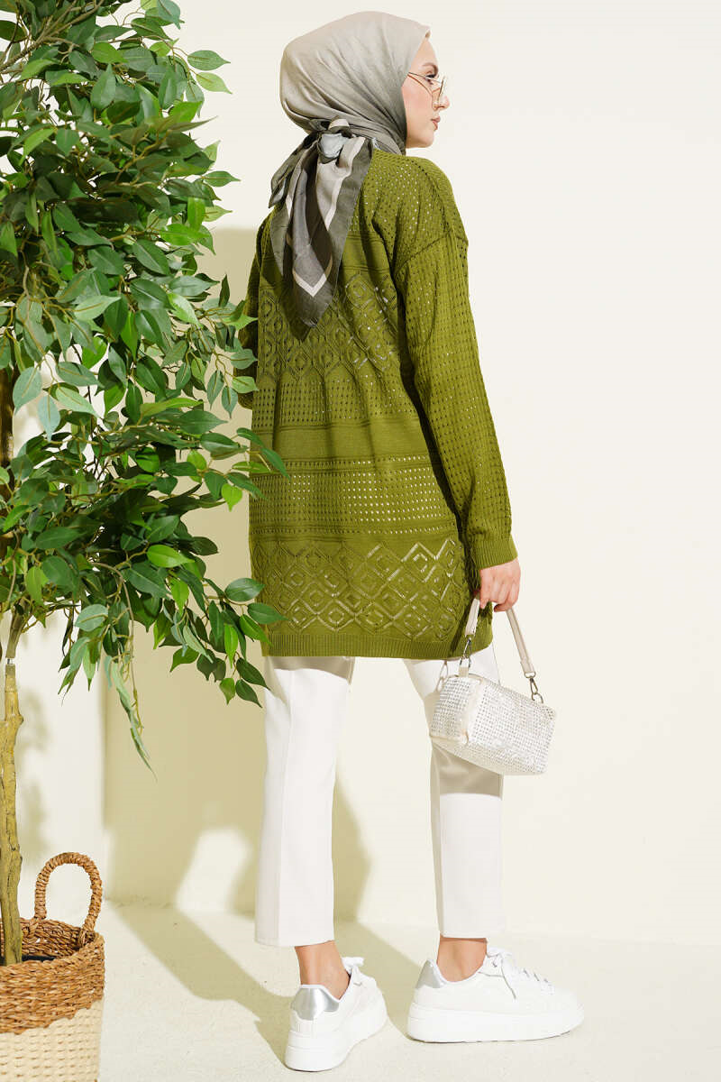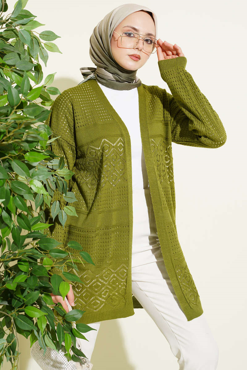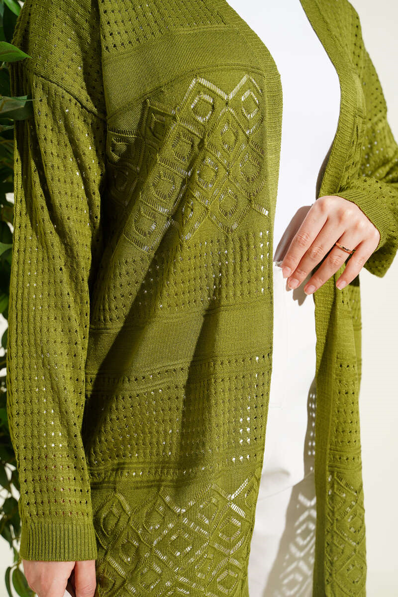 Patterned Openwork Basic Knit Cardigan Green (8374-9824-734696)