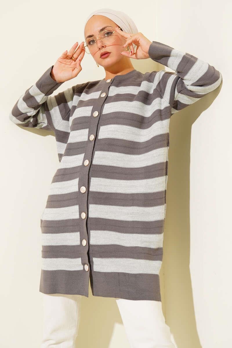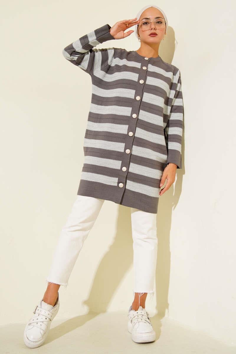 Patterned Button Detailed Knitwear Cardigan Smoke (6999-3210 -676730)