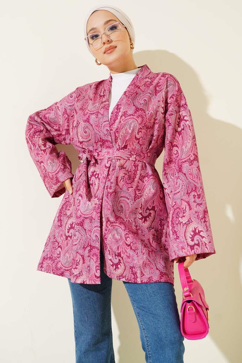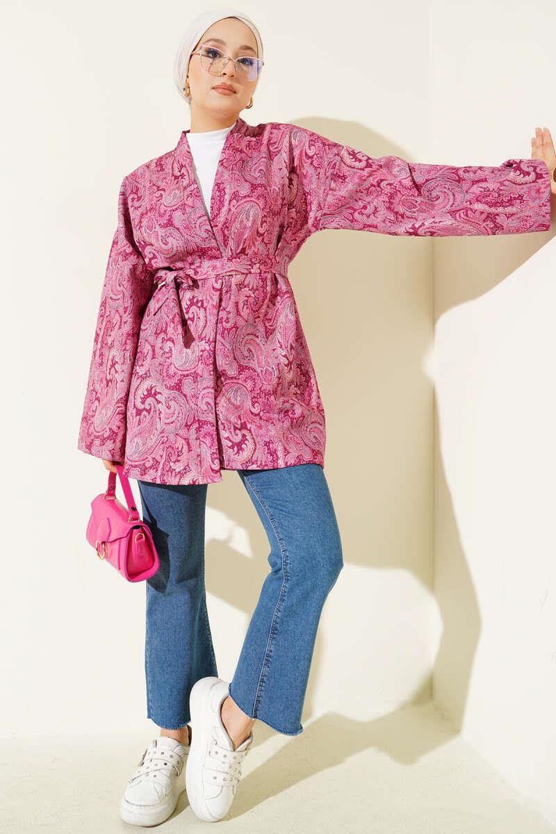Patterned Rope Tied Kimono Fuchsia (0319-2455-677948)