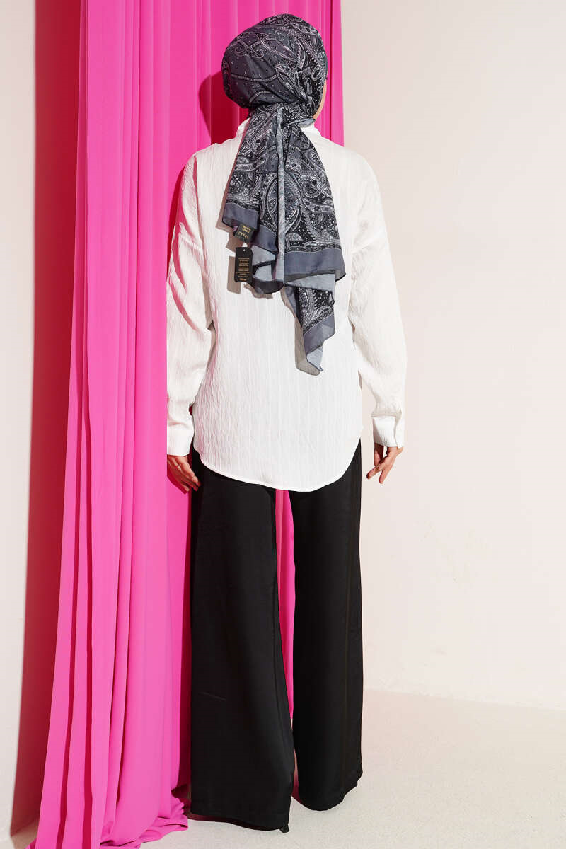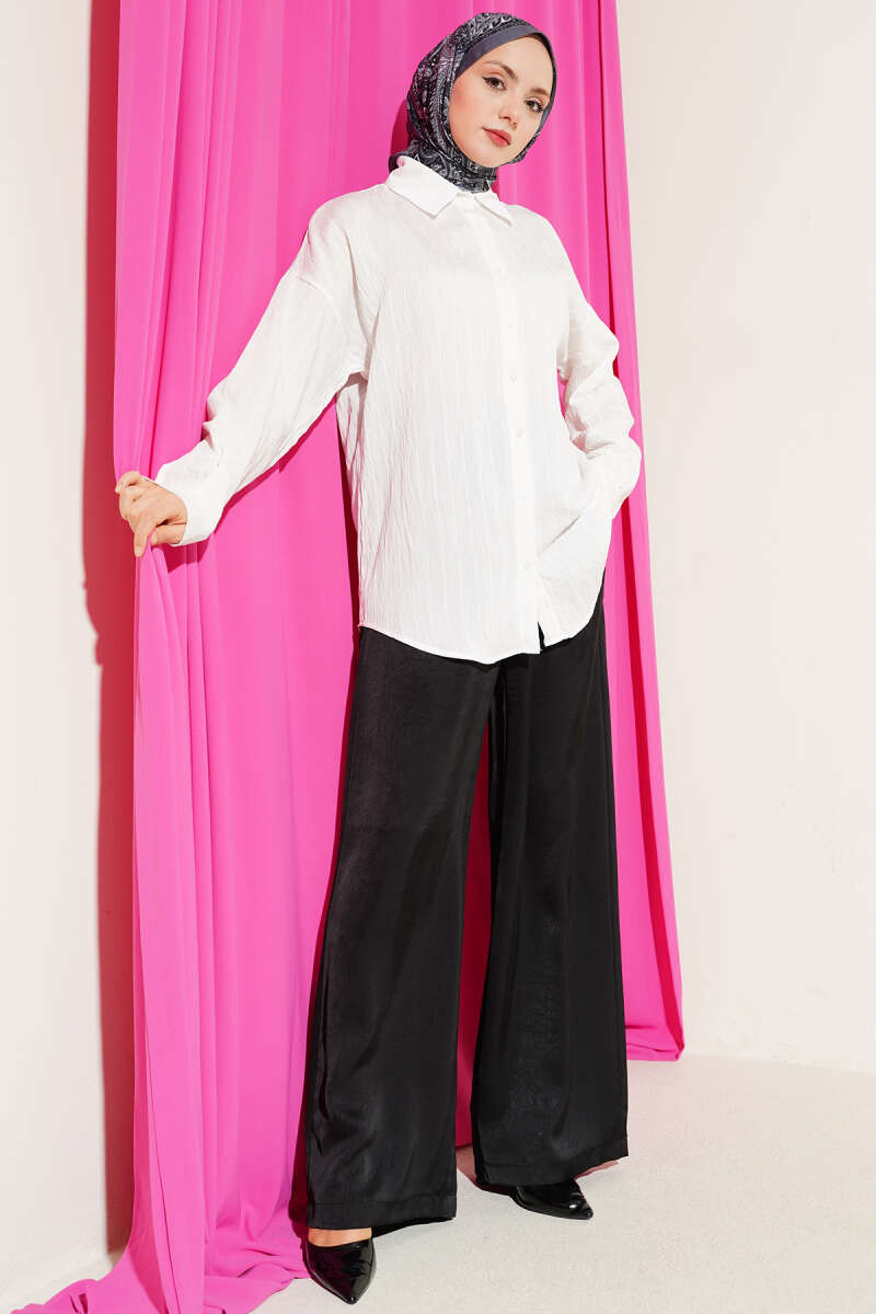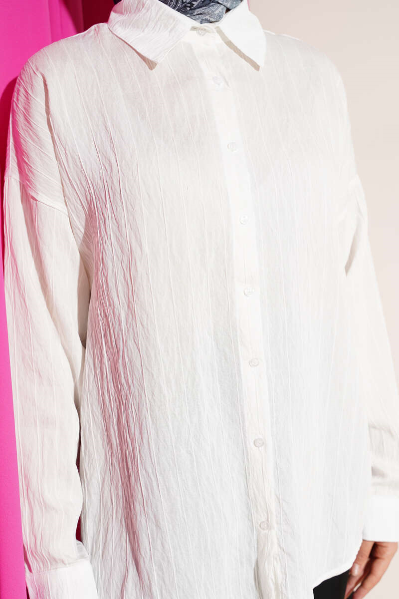 Basic Shirt with Vertical Embossed Stripes, Ecru (0820-20260-727209)