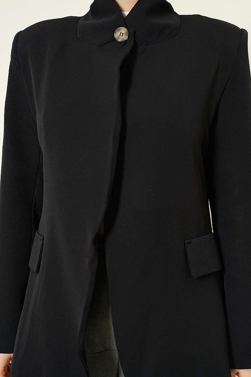 Stand-Up Collar Button-Down Blazer Jacket, Black (0820-0749-751969)