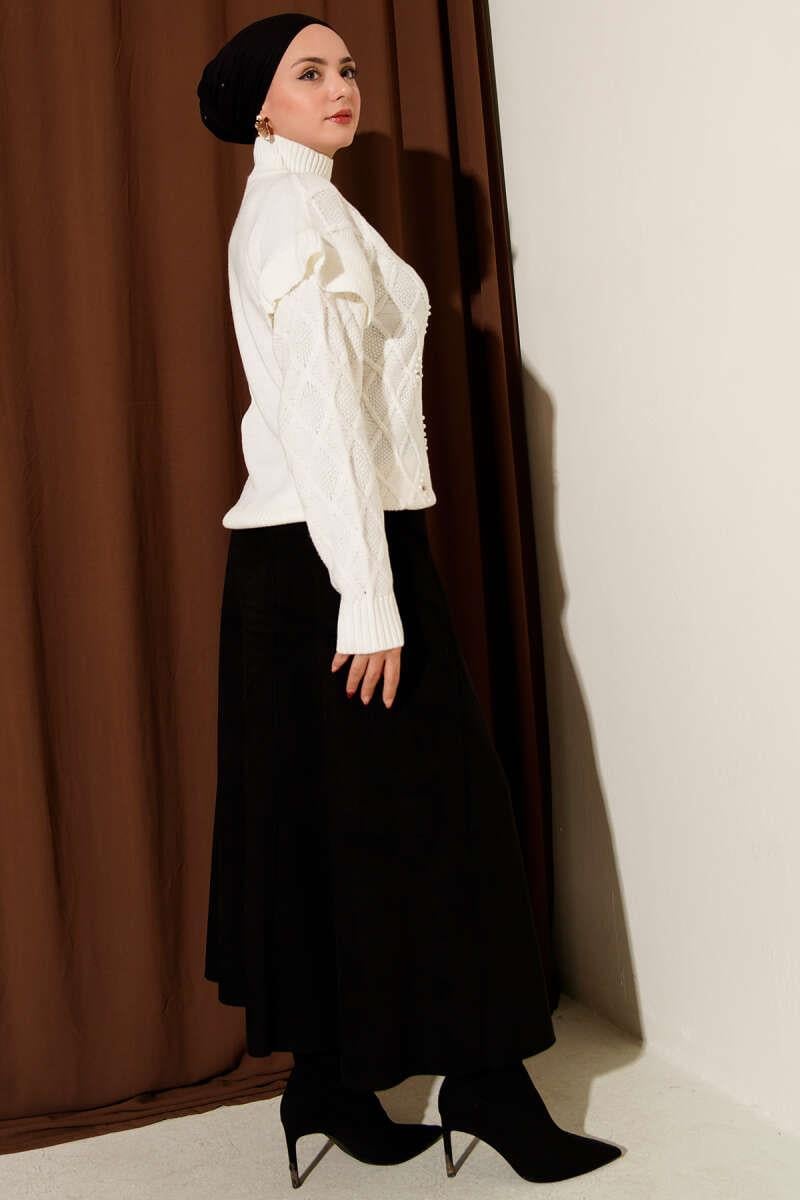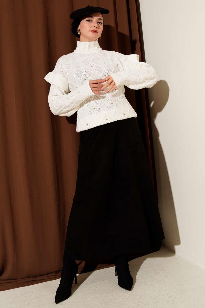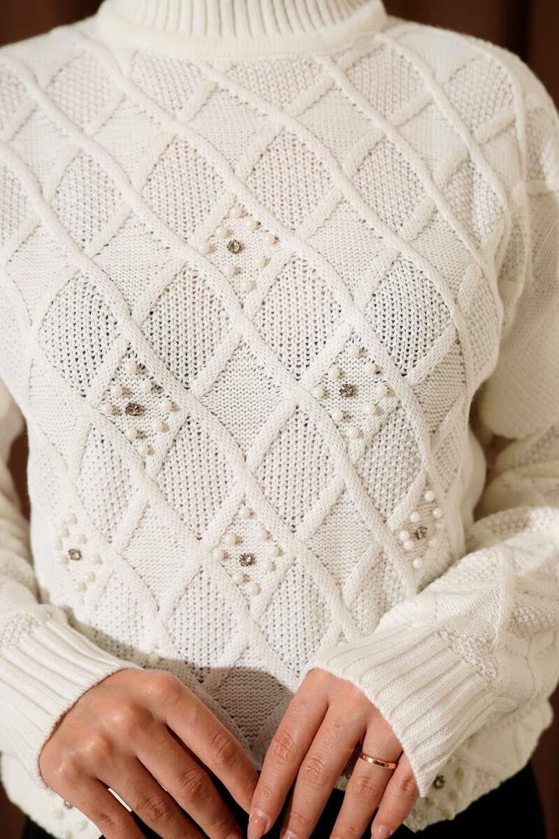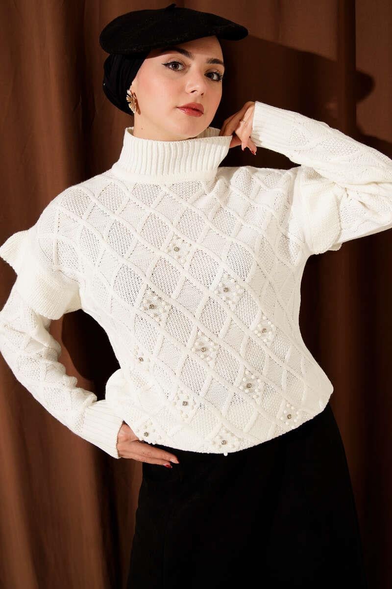 Stand Collar Stone Knitted Sweater Ecru (0592-7027-24-682556)