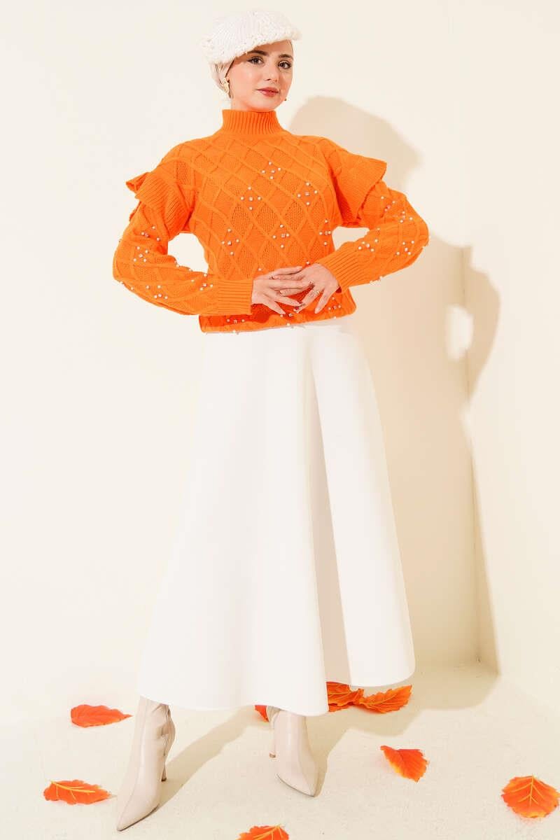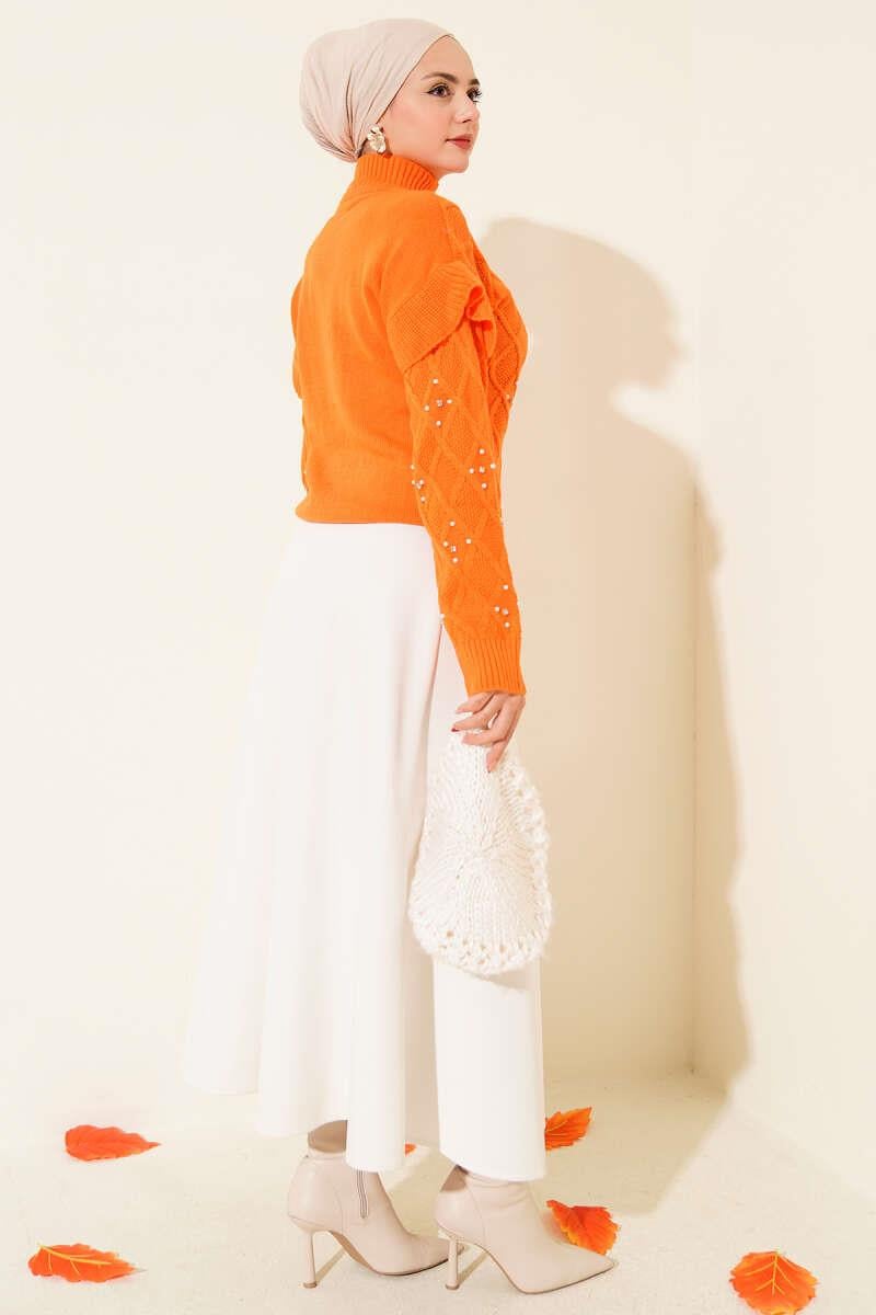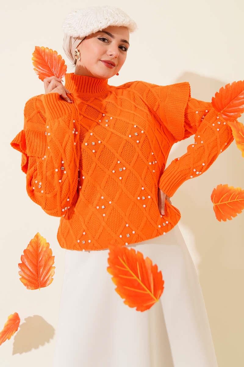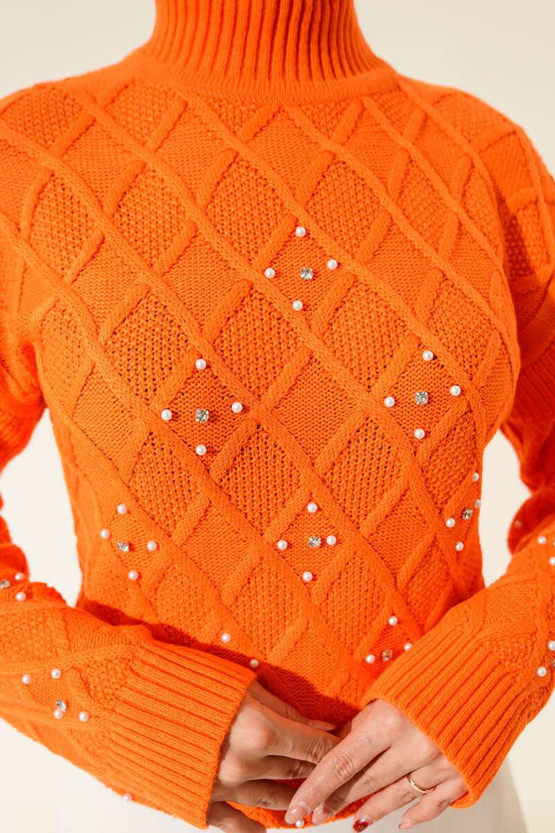 Stand Collar Stone Knitted Sweater Orange (0592-7027-24-682560)