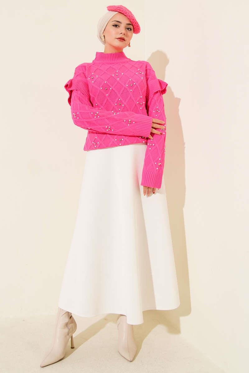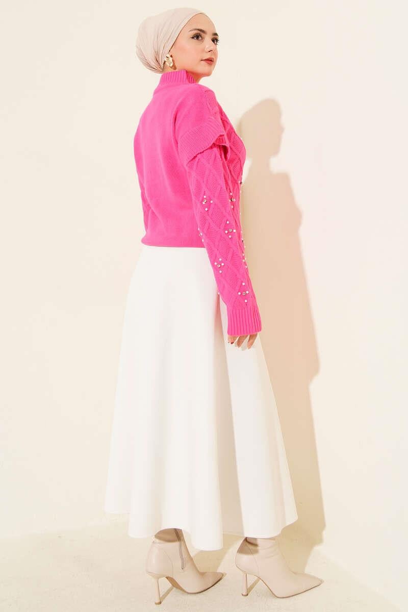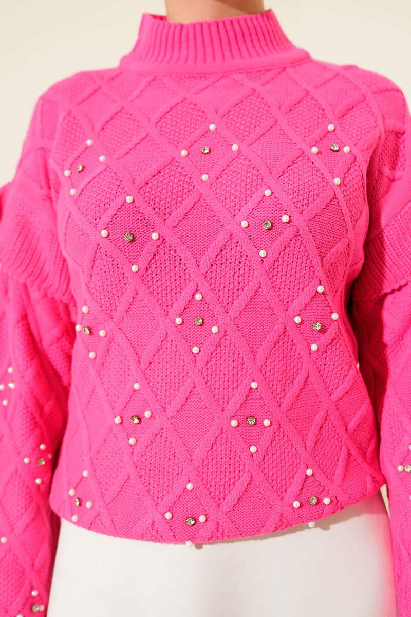 Stand Collar Stoned Knit Sweater Pink (0592-7027-24-682561)