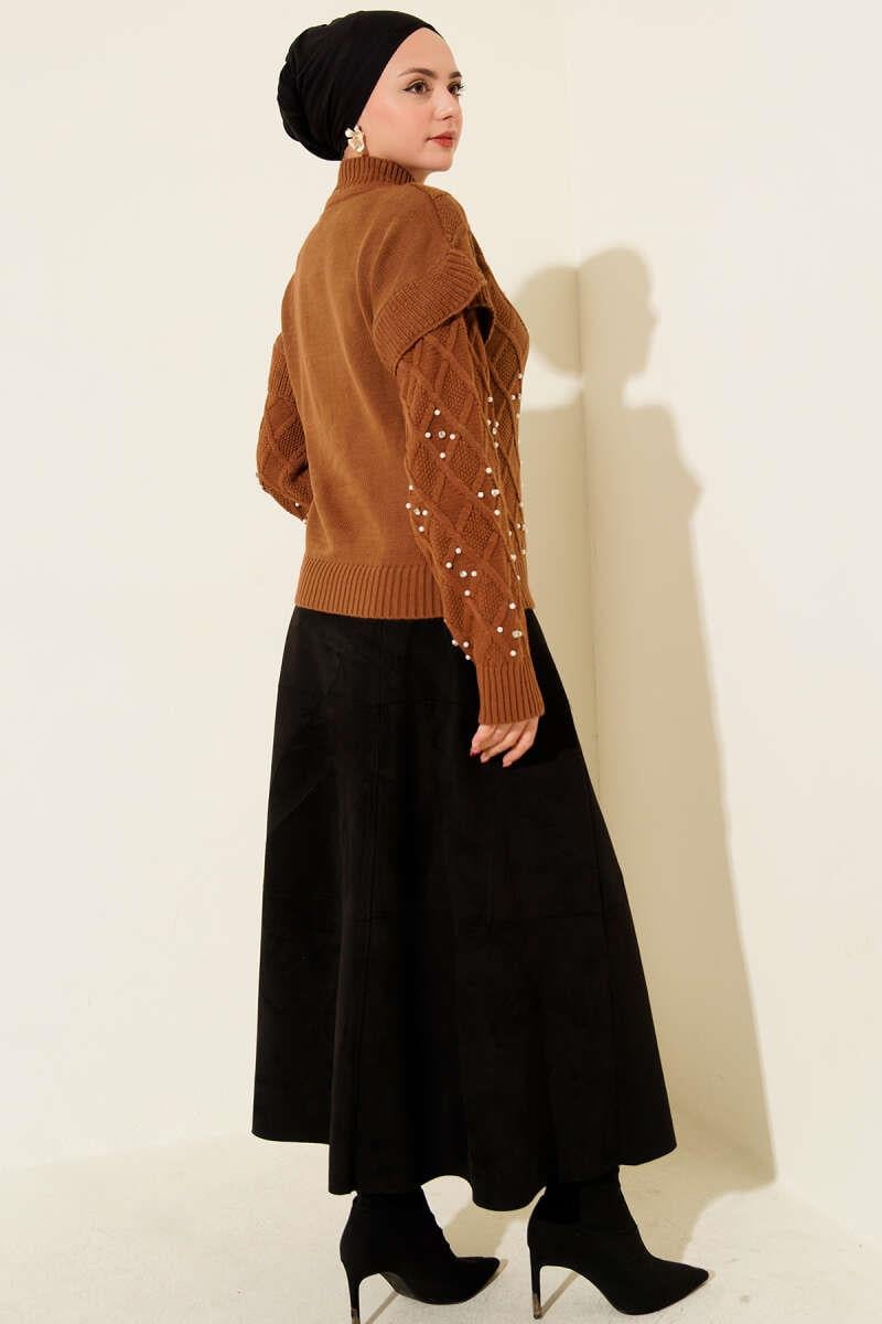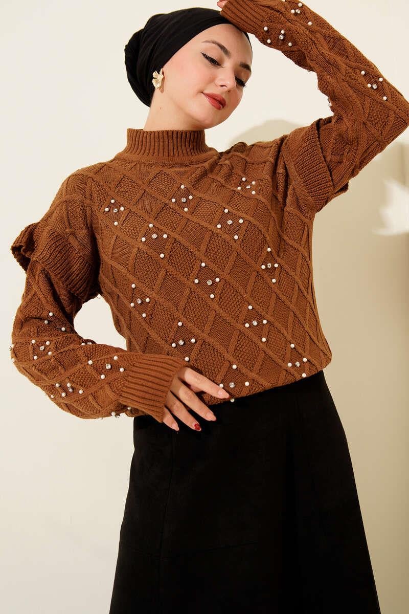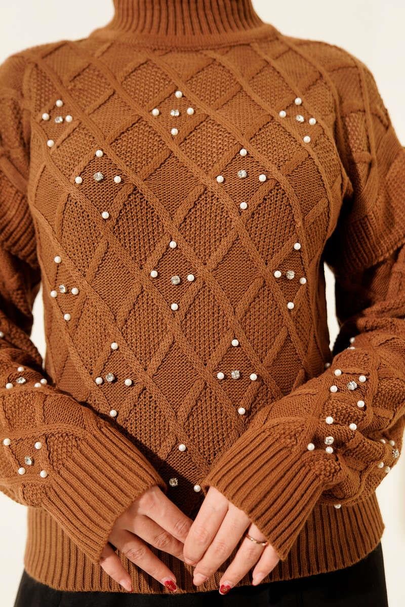 Stand Collar Stone Knit Sweater Tan (0592-7027-24-682565)