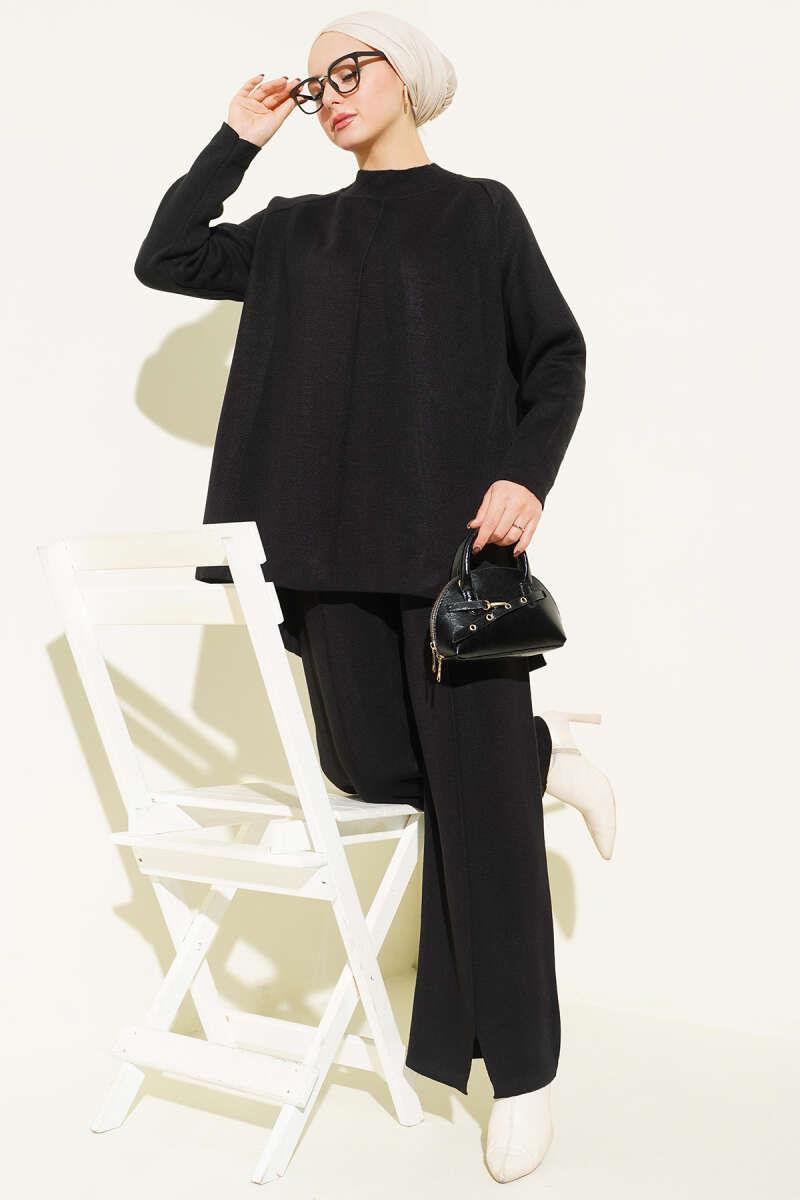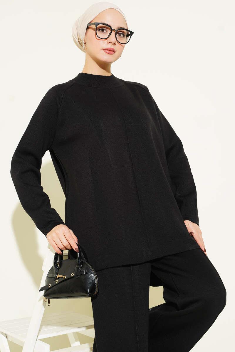 Basic 2 Piece Set with Stitching Detail, Black