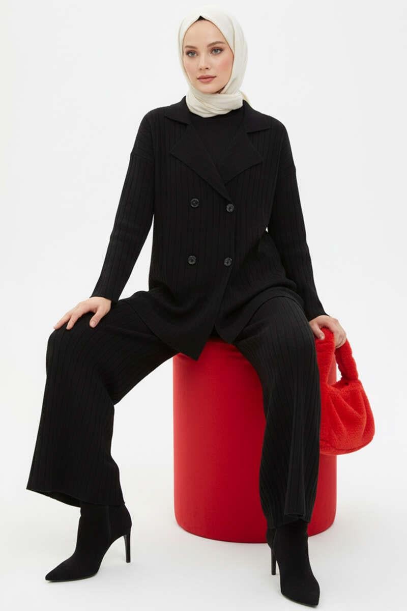 Four-Button Detailed Knitwear 2 Piece Set Black (0537-6840-671620)