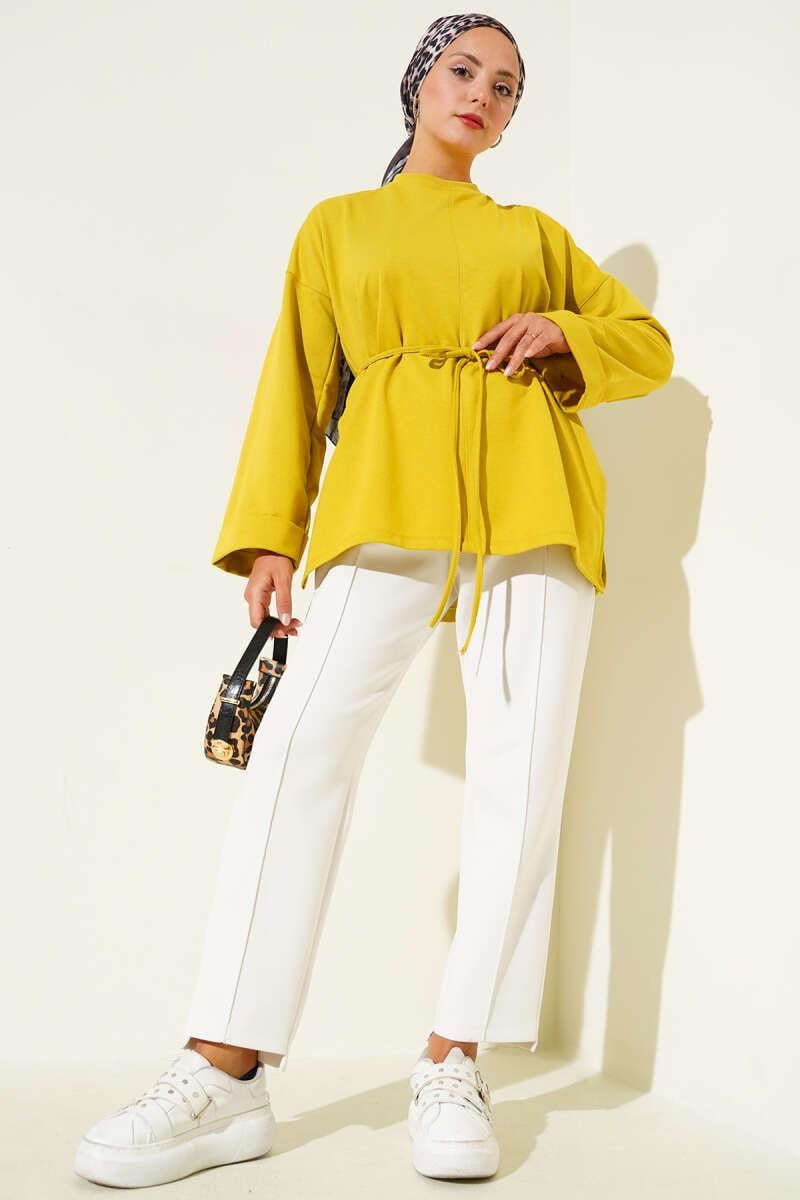 Double Sleeve Rope Tied Tunic Oil Green (0997-1157-672777)