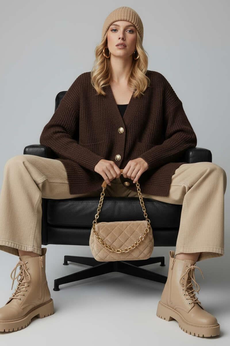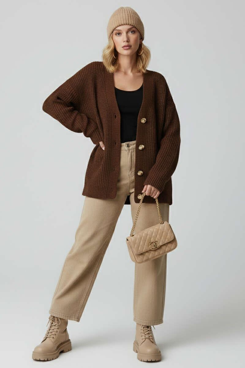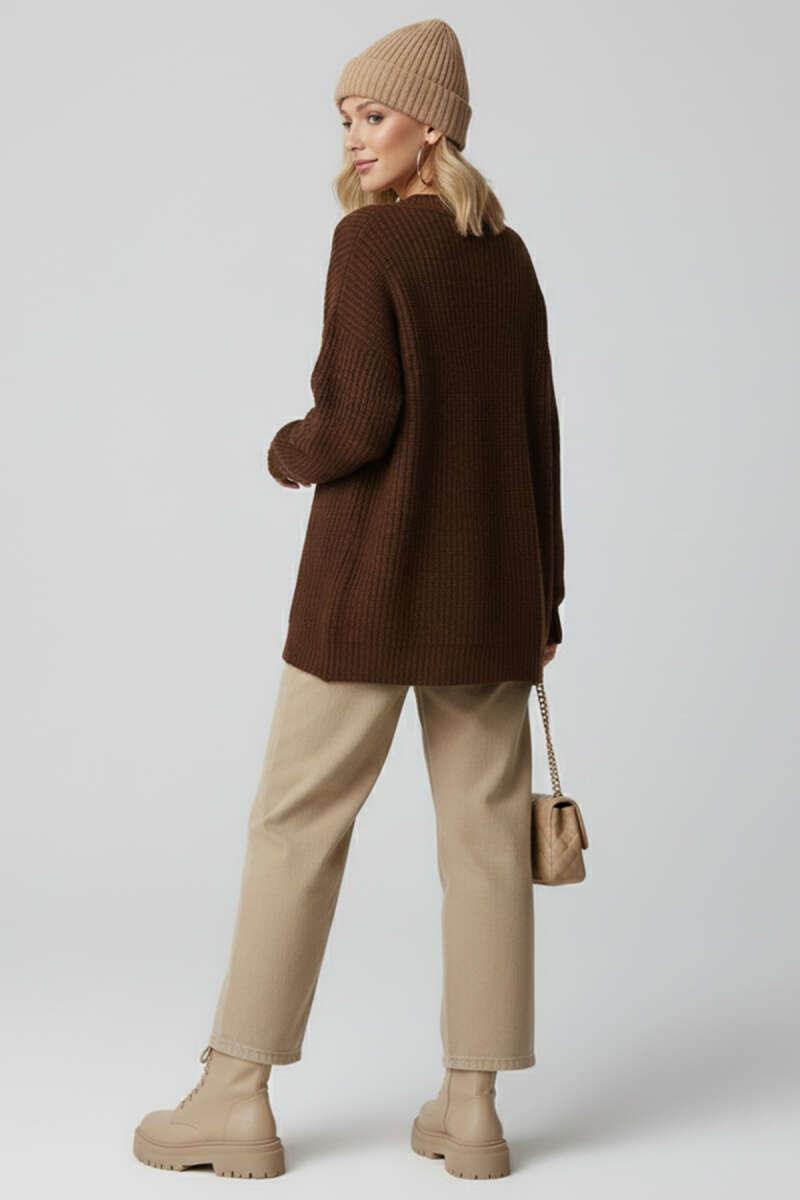 Button Detailed Pocket Knitwear Cardigan Brown (0532-7360-671019)