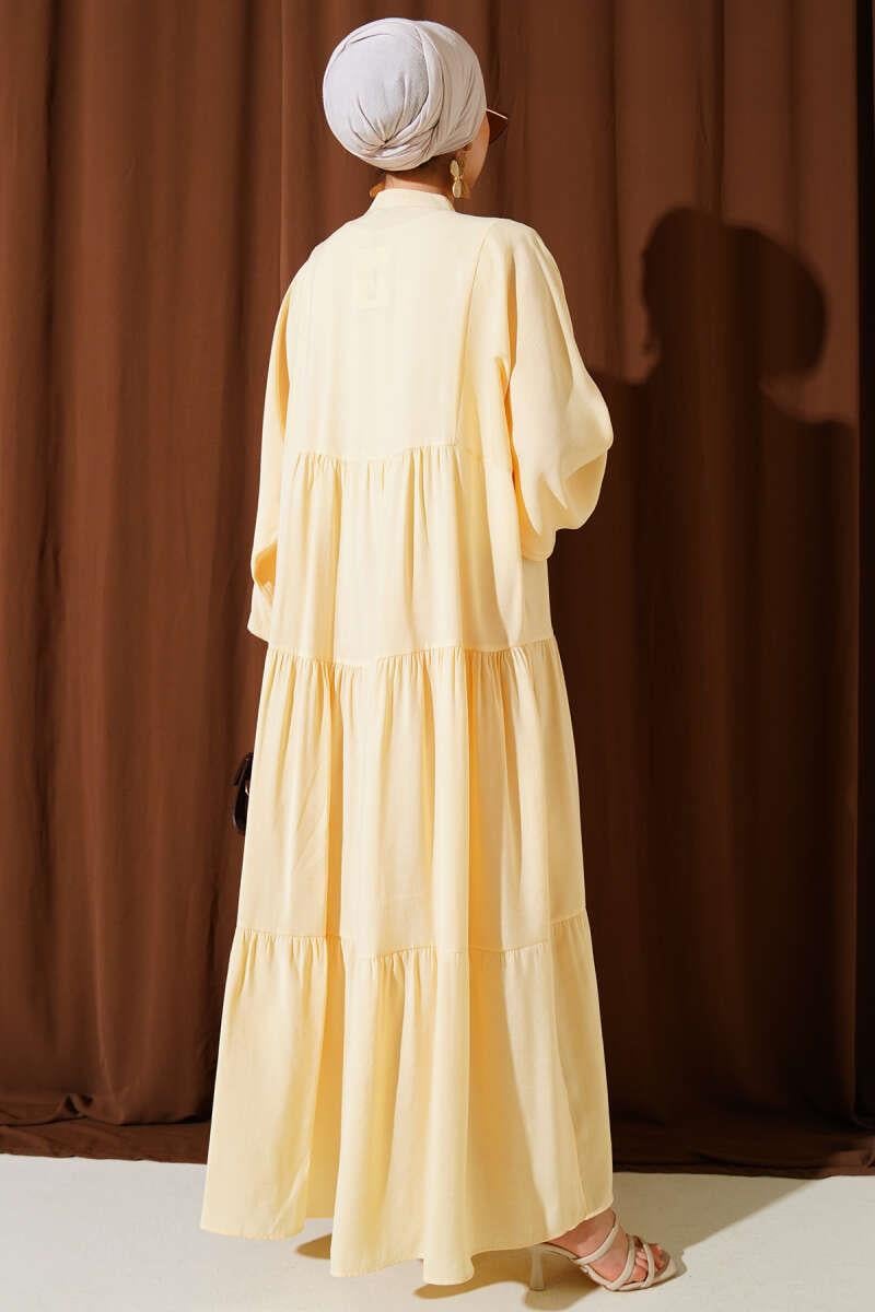 Buttoned Elastic Ankle Dress Yellow (8900-25101-662866)