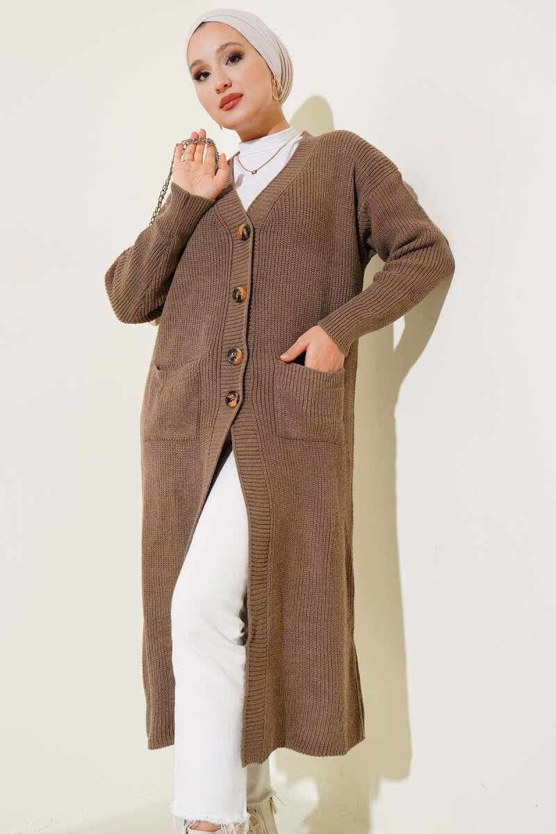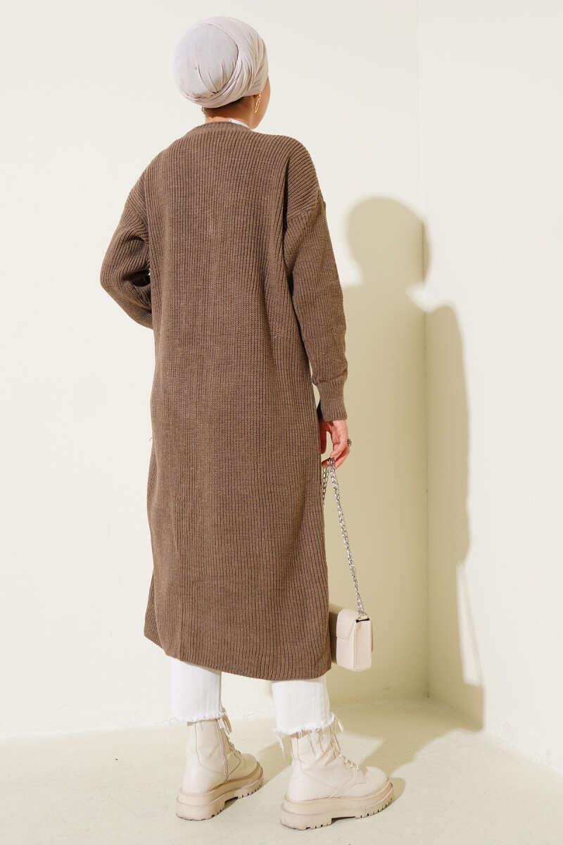 Buttoned Pocket Long Knit Cardigan Latte (0875-2892-669759)