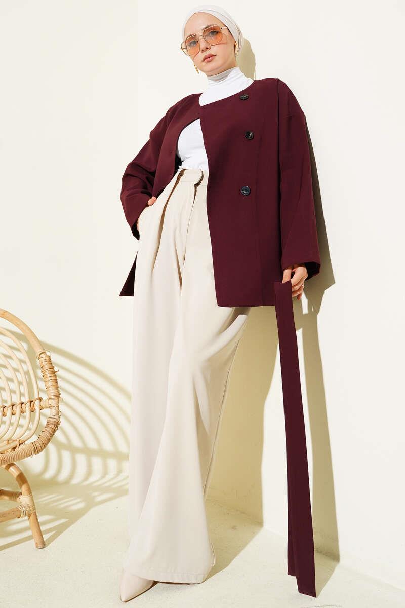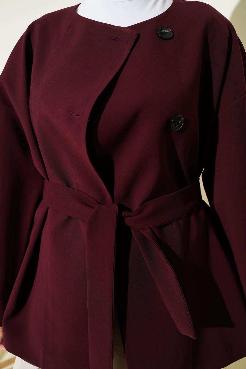 Buttoned Belted Basic Jacket, Plum (8356-7672-716583)