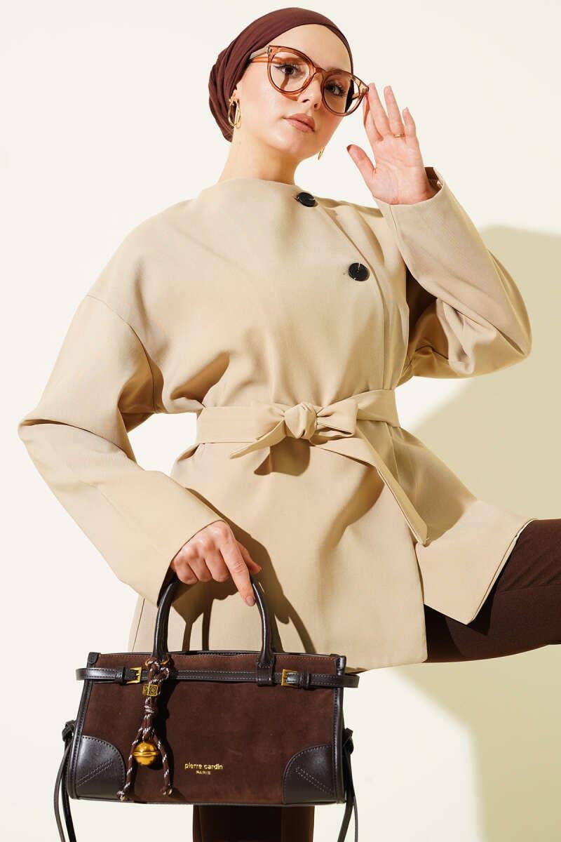 Buttoned Belted Basic Jacket in Stone (8356-7672-716585)