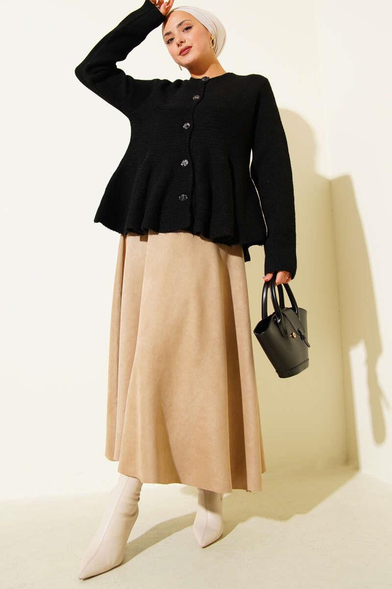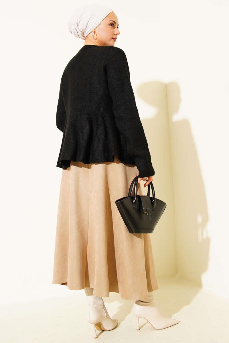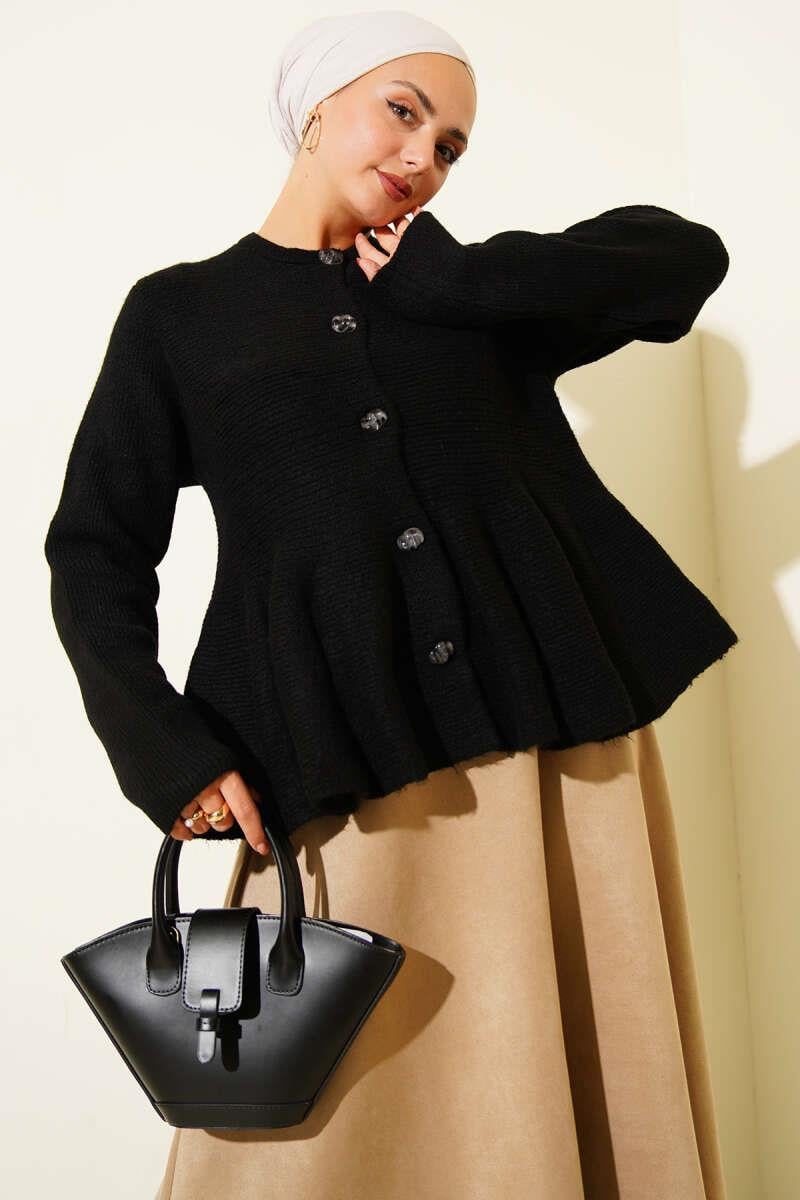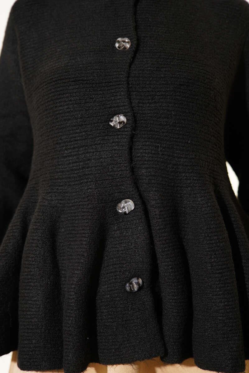 Buttoned Pleated Detailed Knit Cardigan Black (8376-2481-676121)