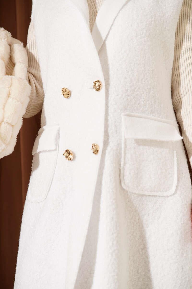 Buttoned Long Boucle Vest White