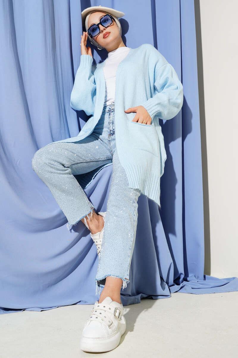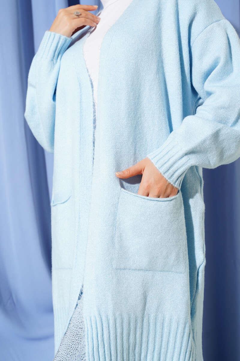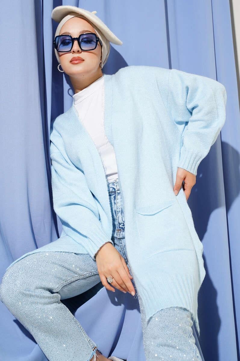 Off-Shoulder Pocket Knitwear Cardigan Baby Blue (8374-0083-669614)