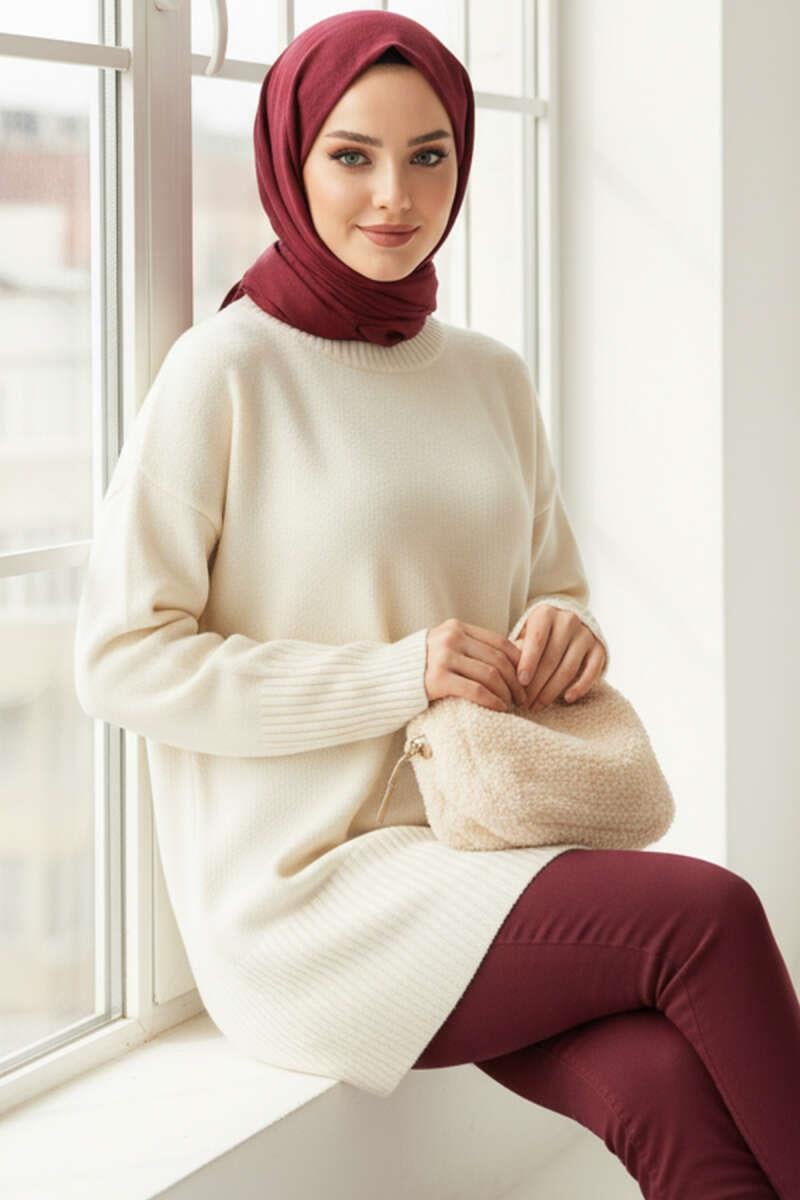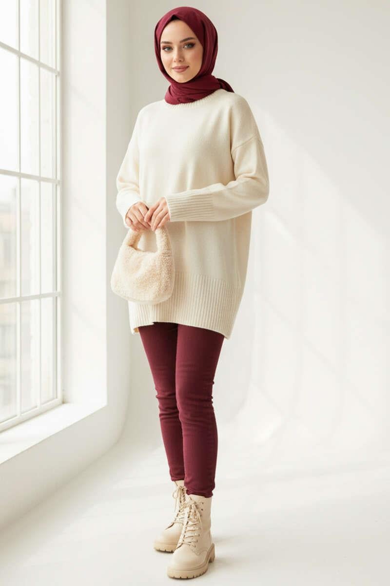 Off-Shoulder Detailed Knit Tunic Ecru (8387-25702-679141)