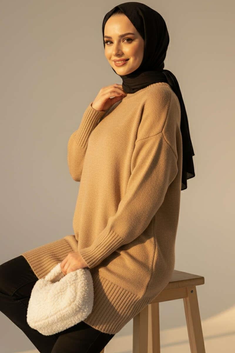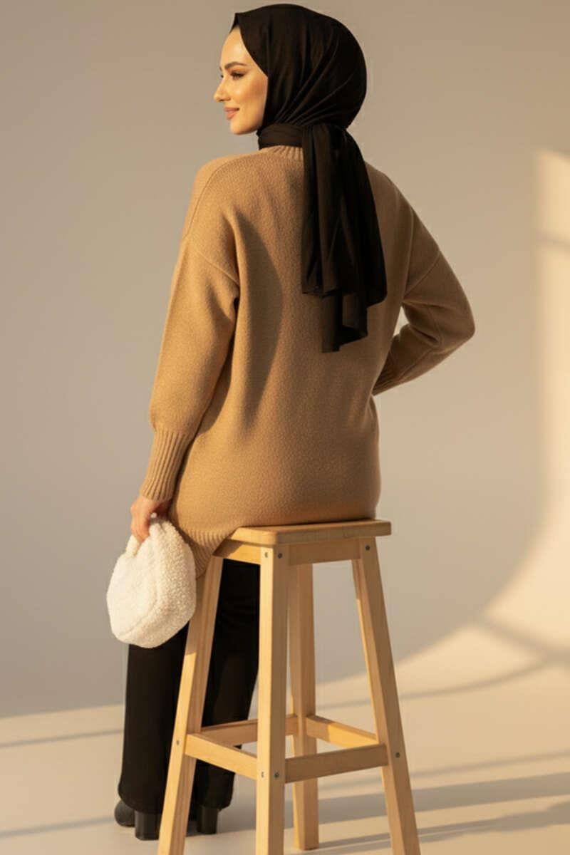 Off-Shoulder Detailed Knit Tunic Latte (8387-25702-679144)