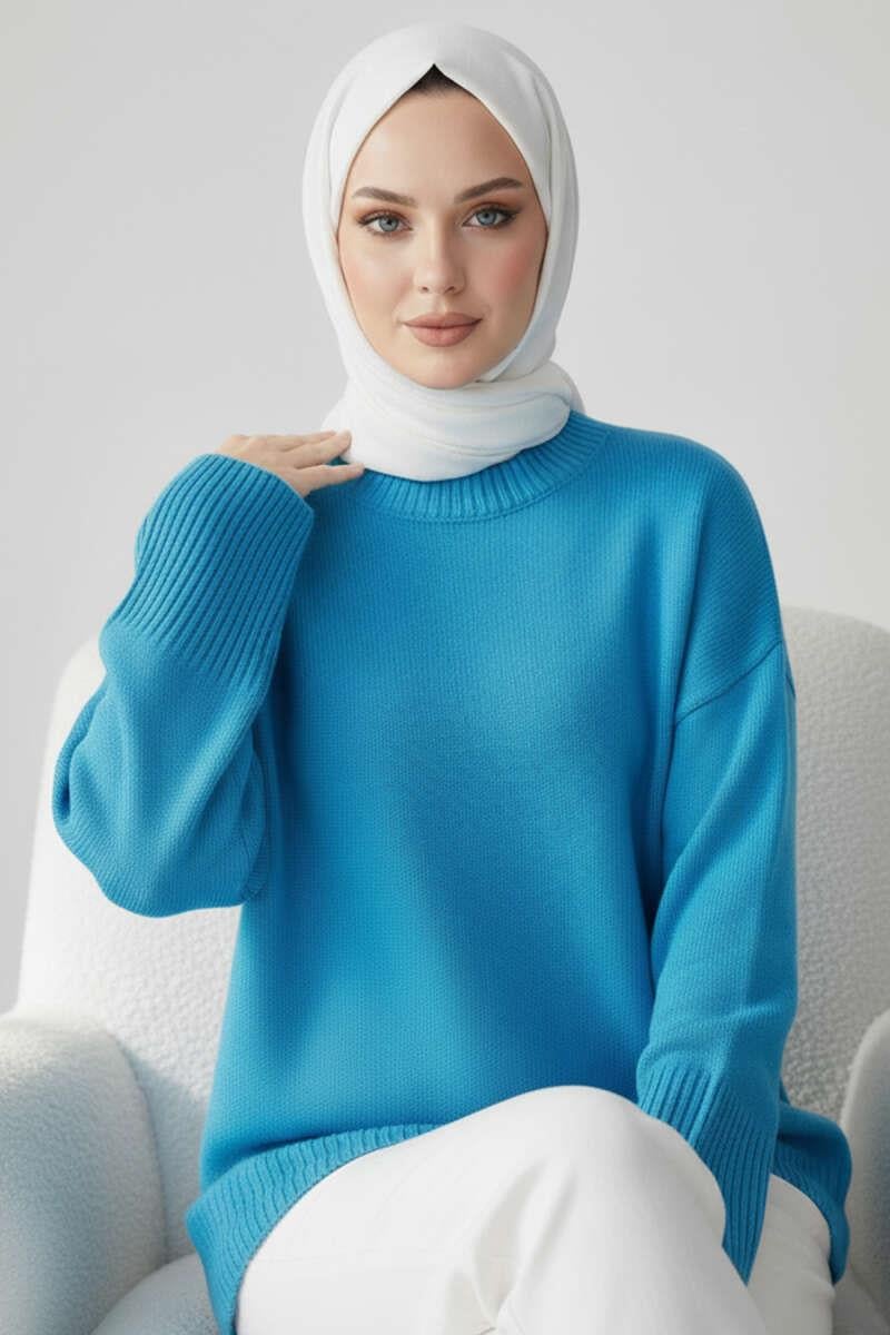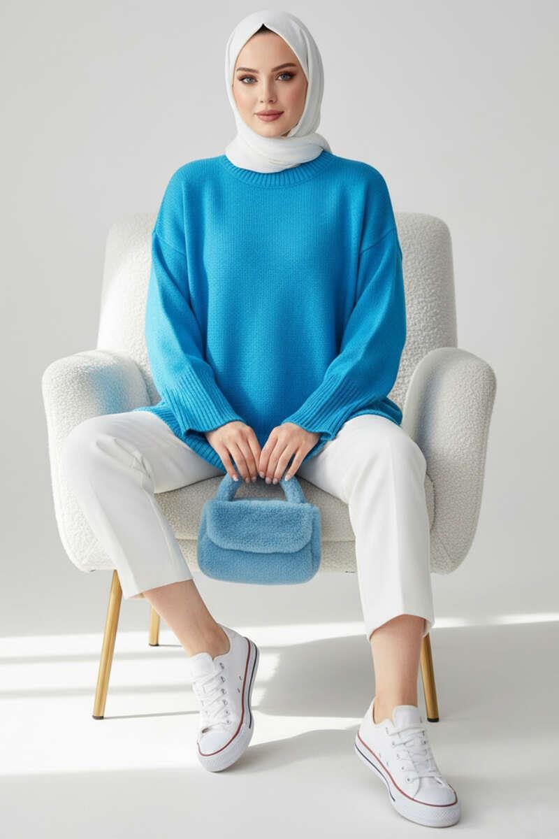 Off-Shoulder Detailed Knit Tunic Blue (8387-25702-679146)
