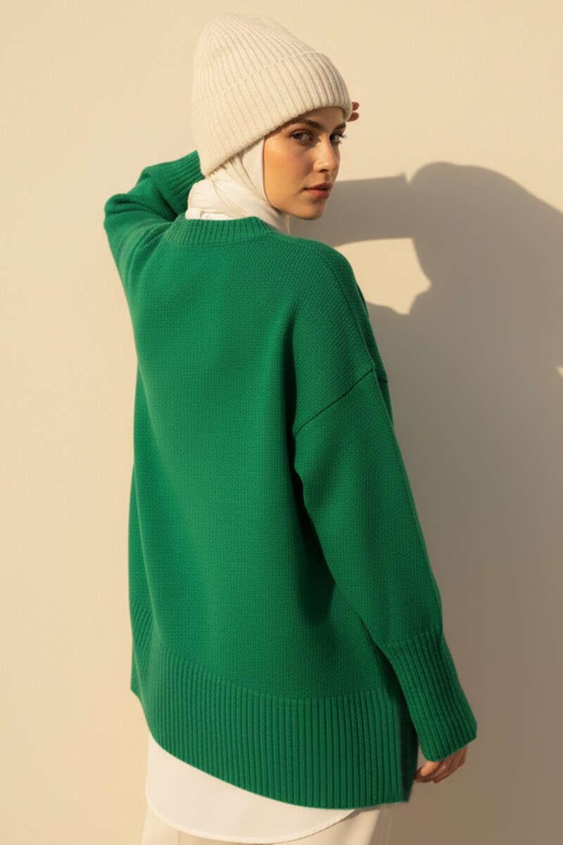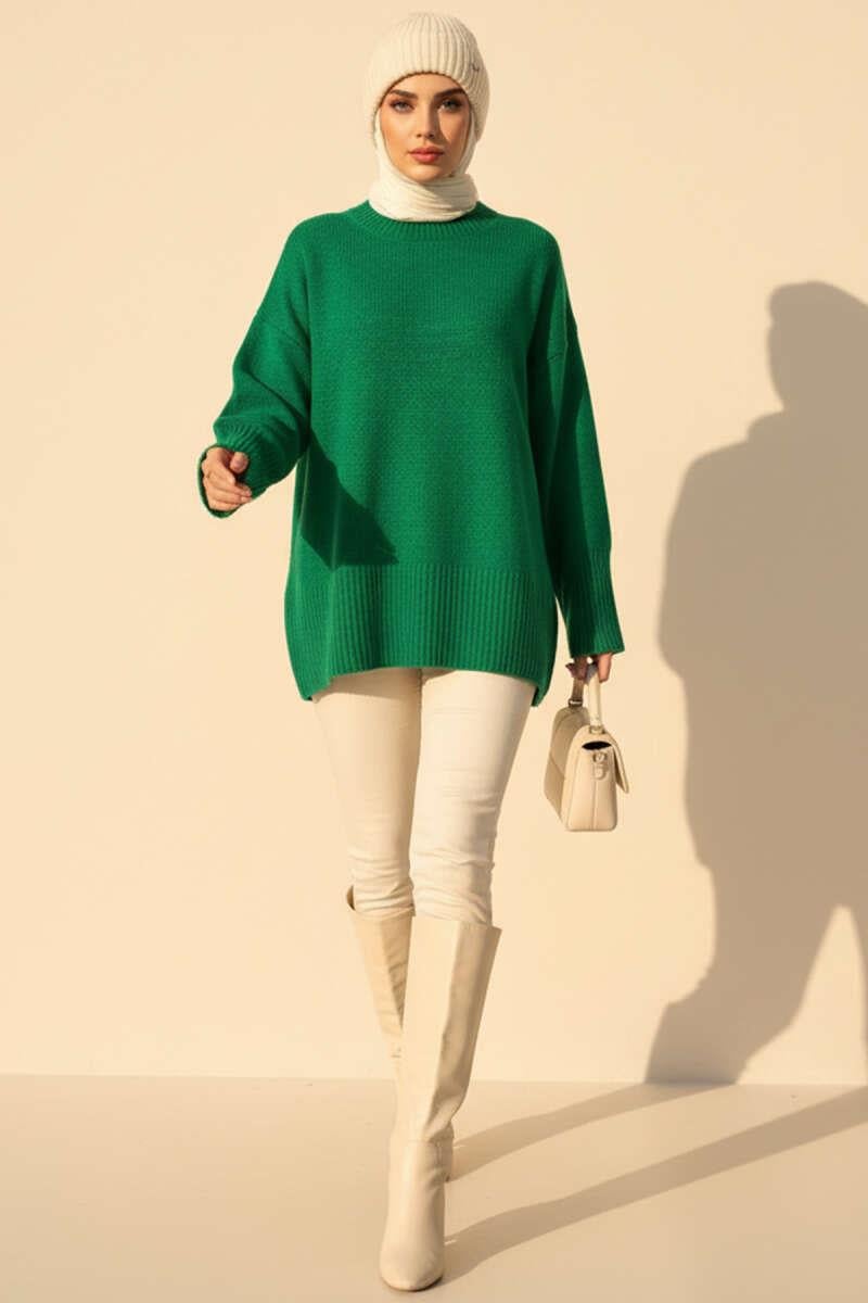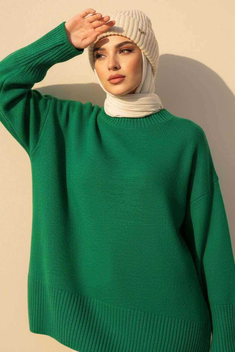 Off-Shoulder Detailed Knit Tunic Green (8387-25702-679150)