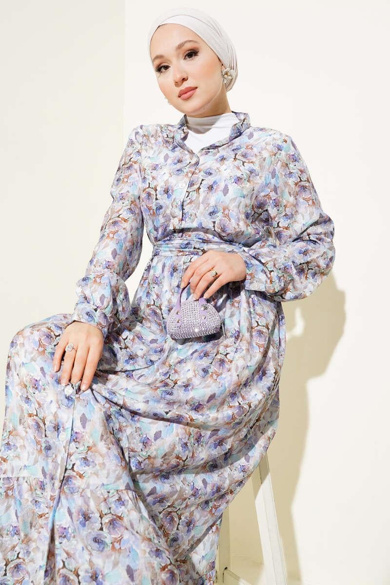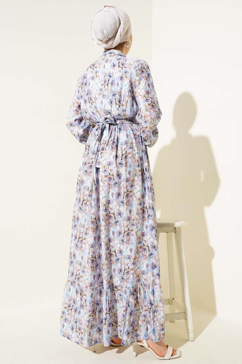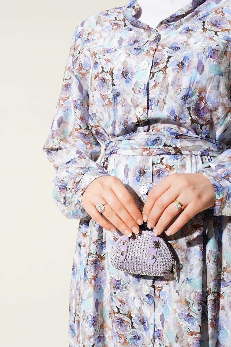 Marbled Floral Pattern Buttoned Dress Lilac (0829-4886-634353)