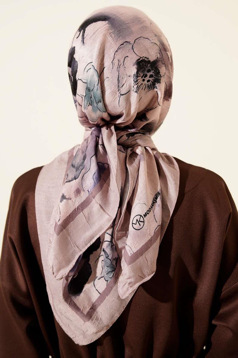 Marbled Floral Bamboo Knit Scarf Beige (8093-3565-690459)