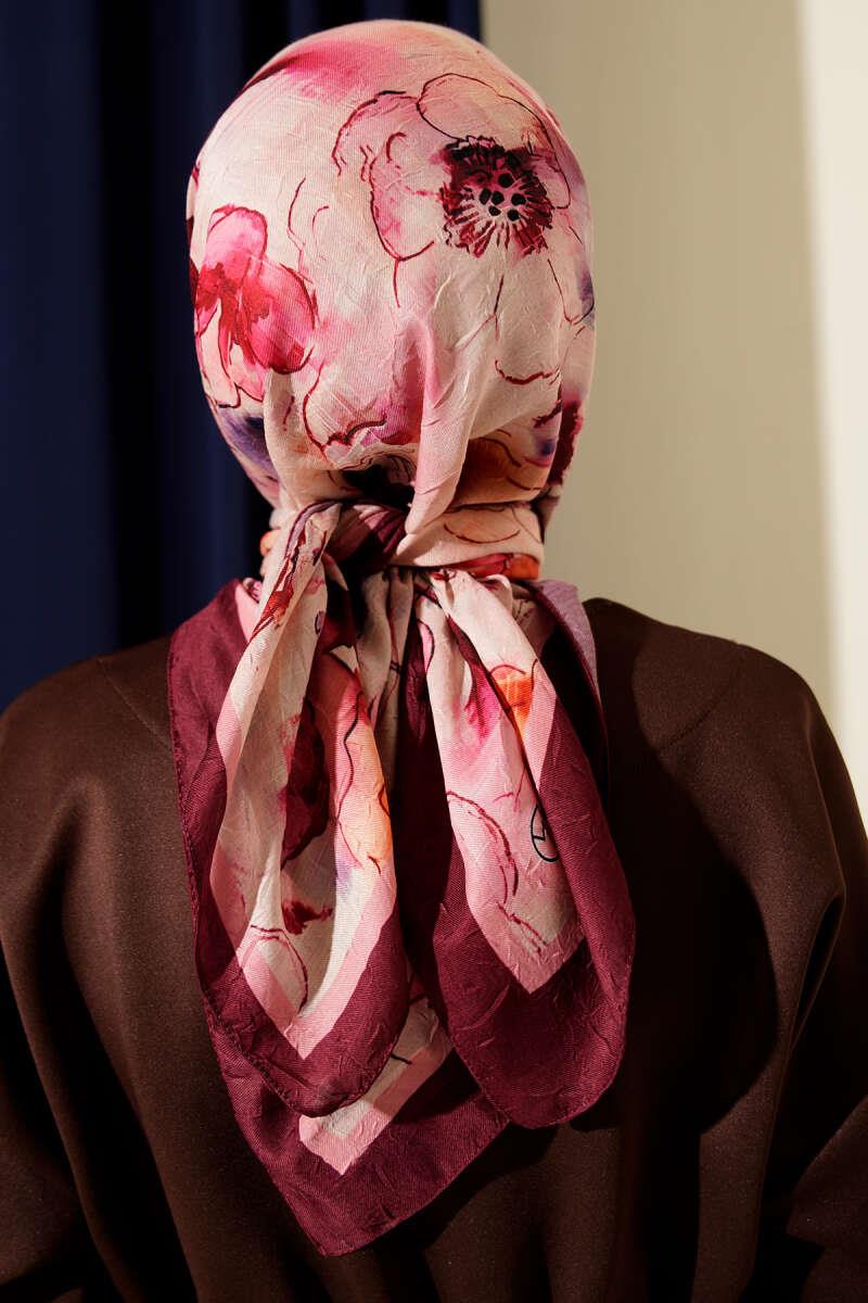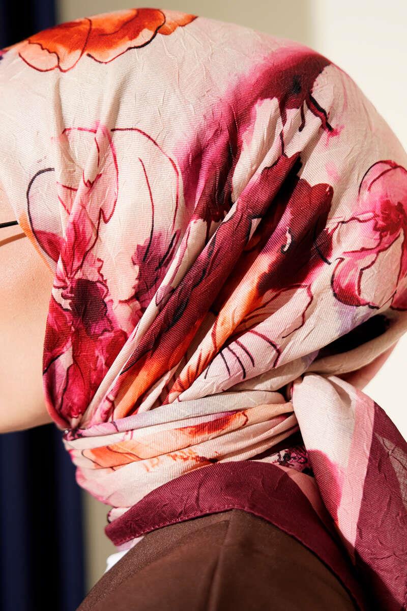 Marbled Floral Bamboo Knit Scarf Burgundy (8093-3565-690460)