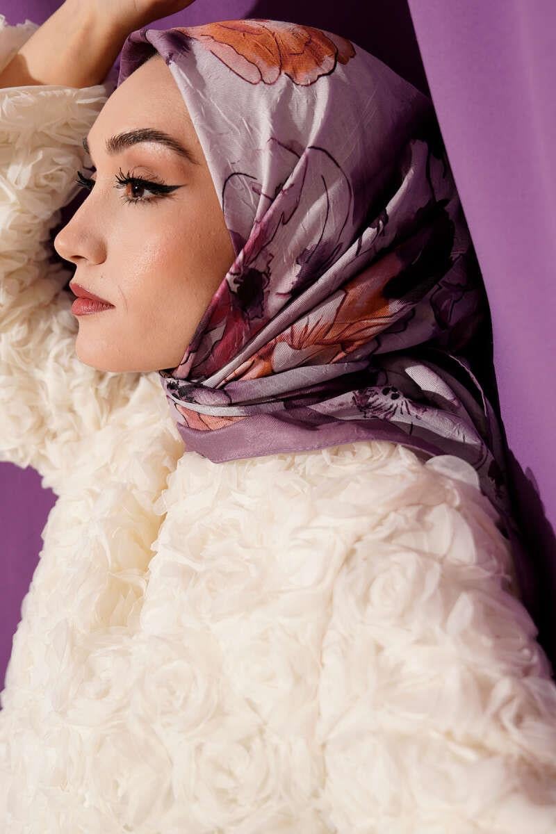 Marbled Floral Bamboo Knit Scarf Lilac (8093-3565-690466)