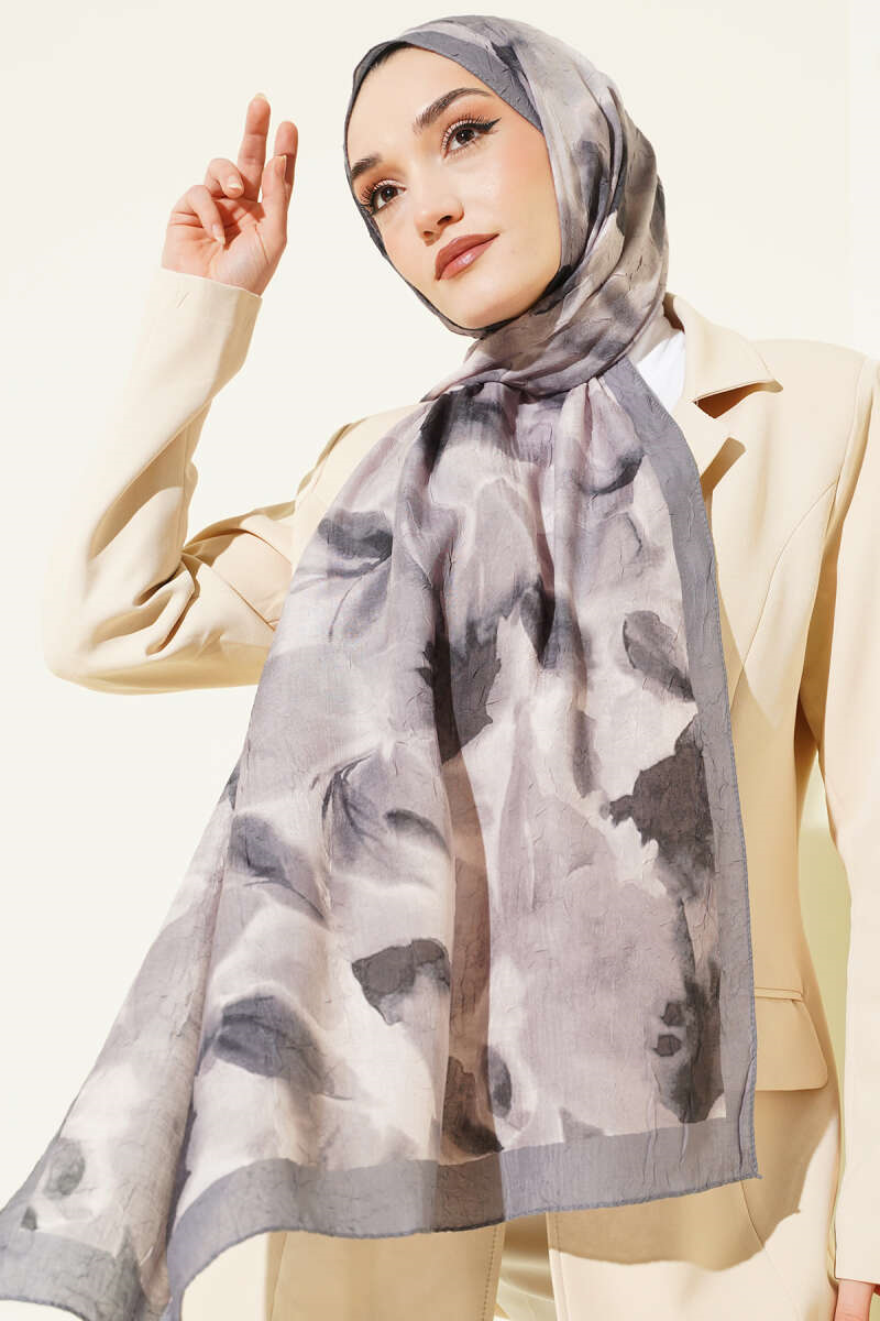 Marbled Patterned Bamboo Kash Shawl Grey (0948-6142-704586)