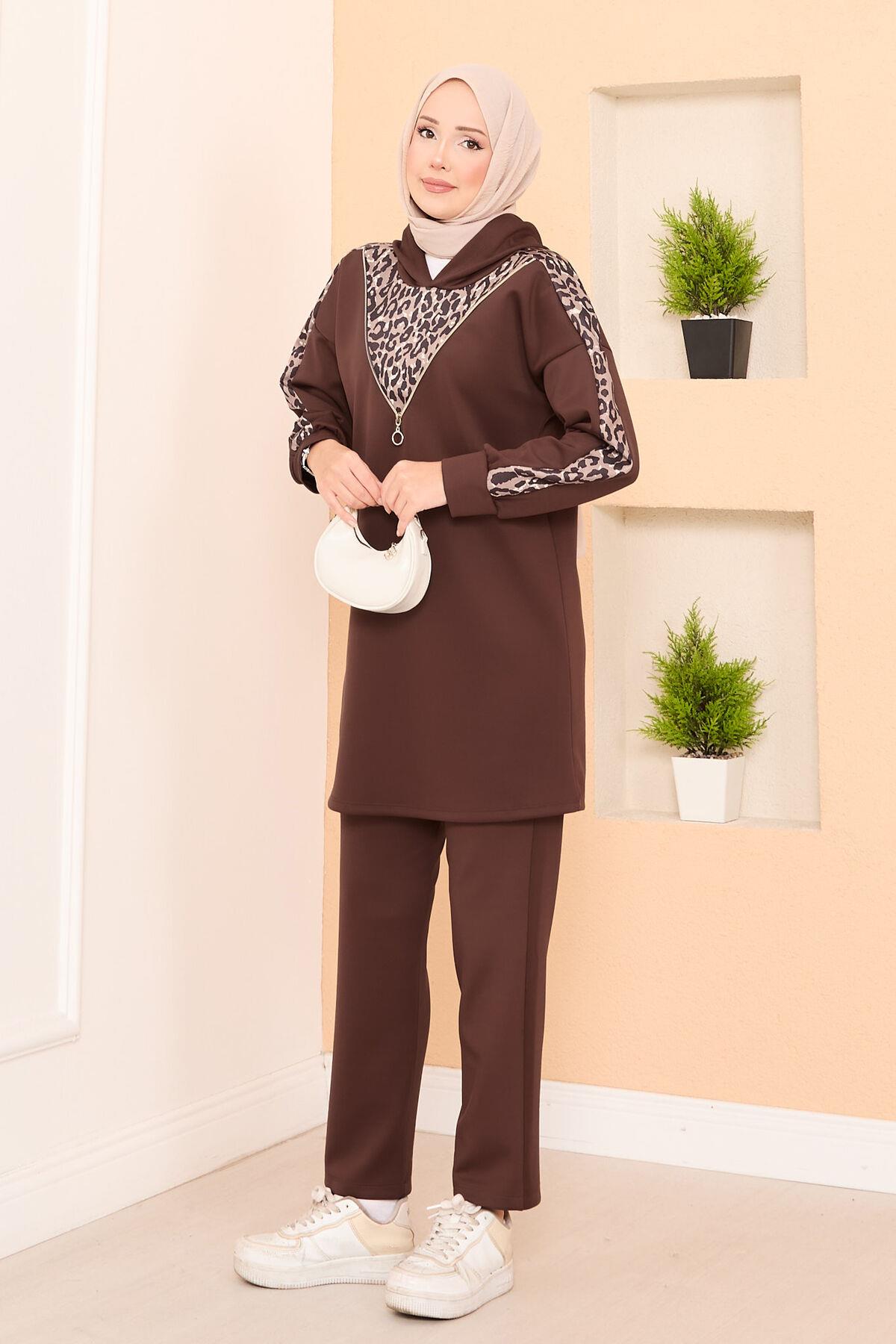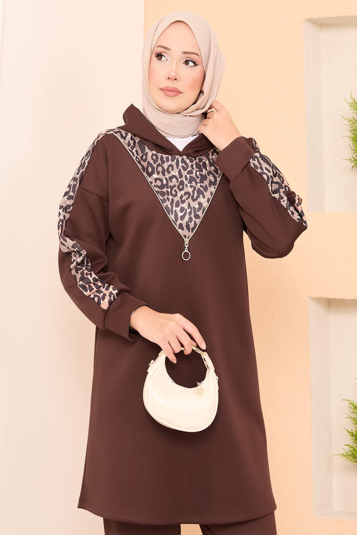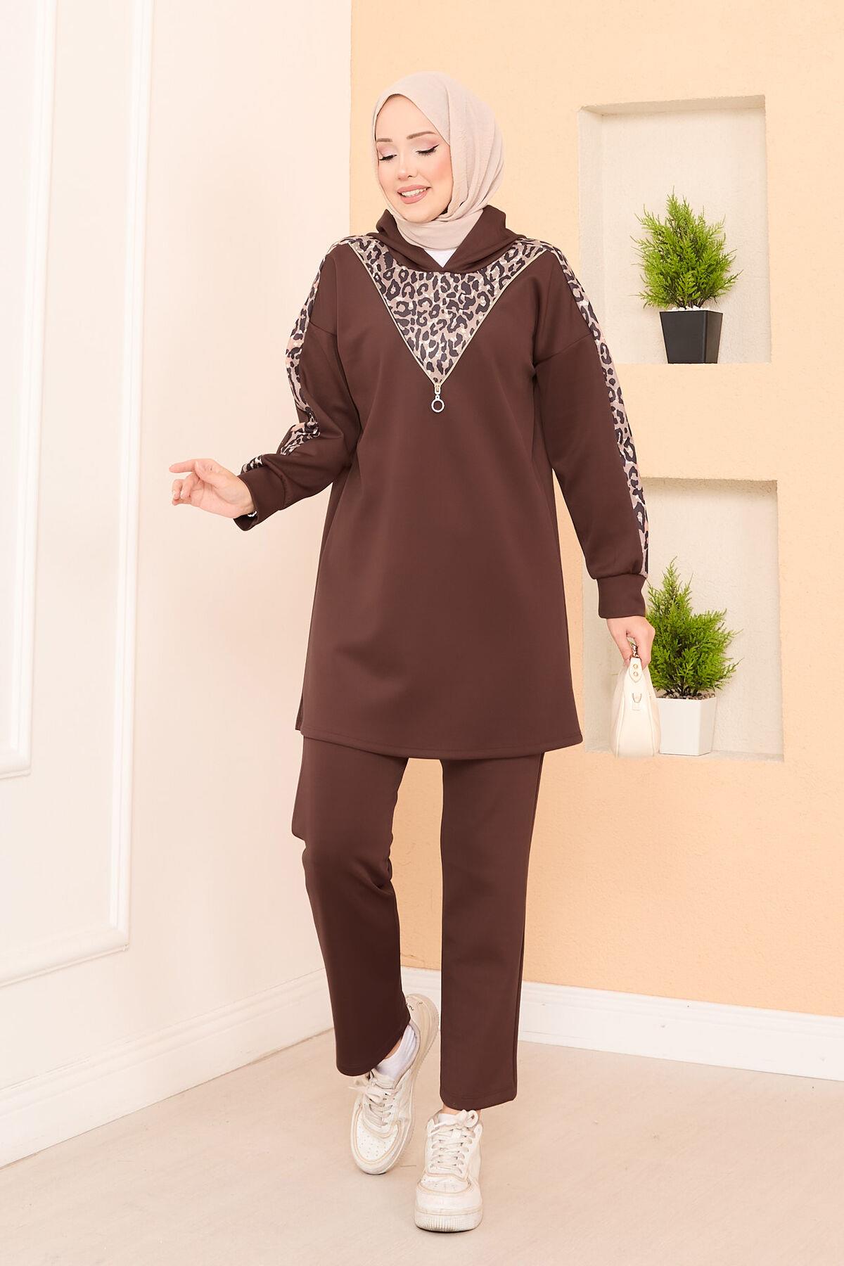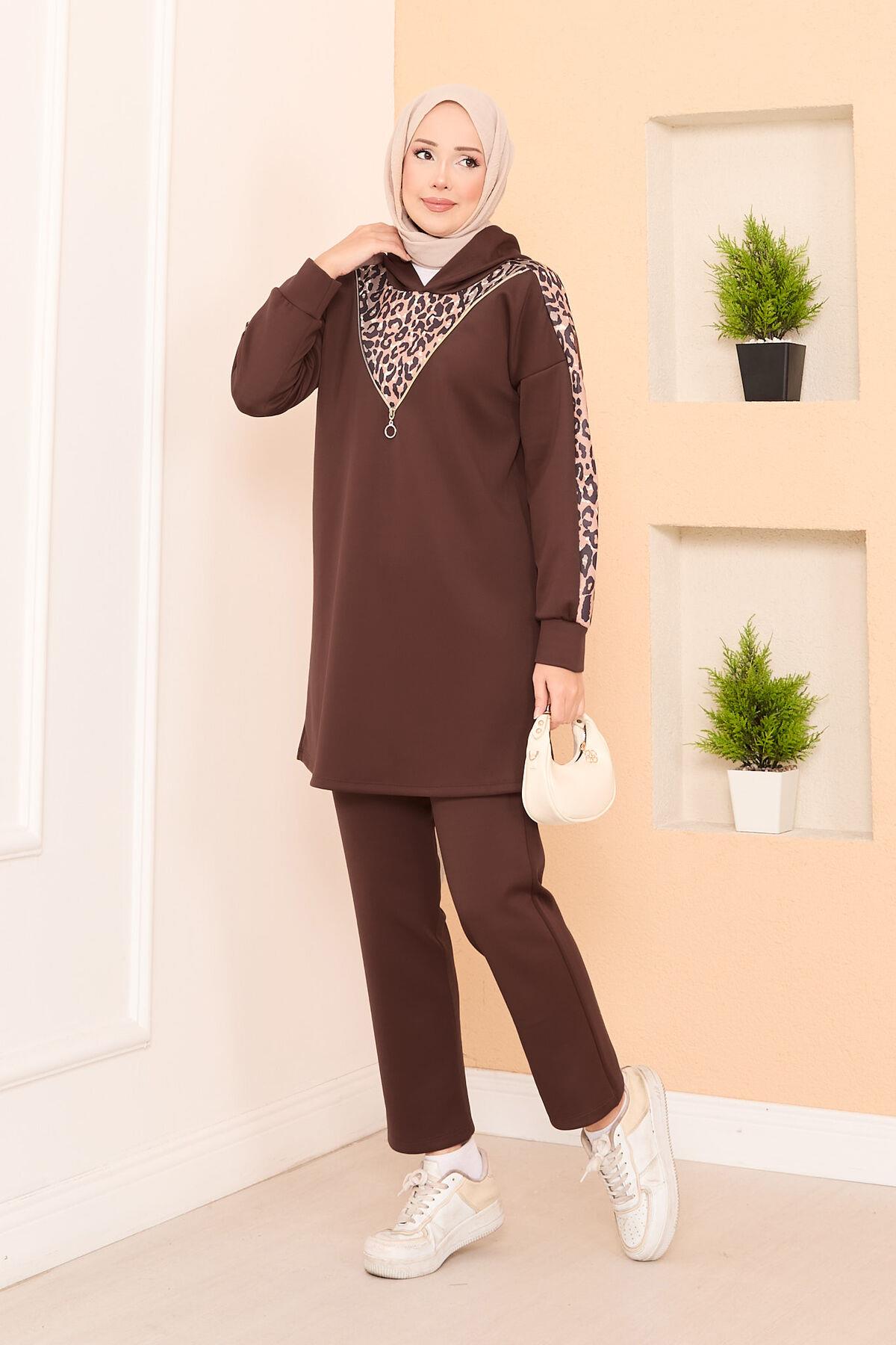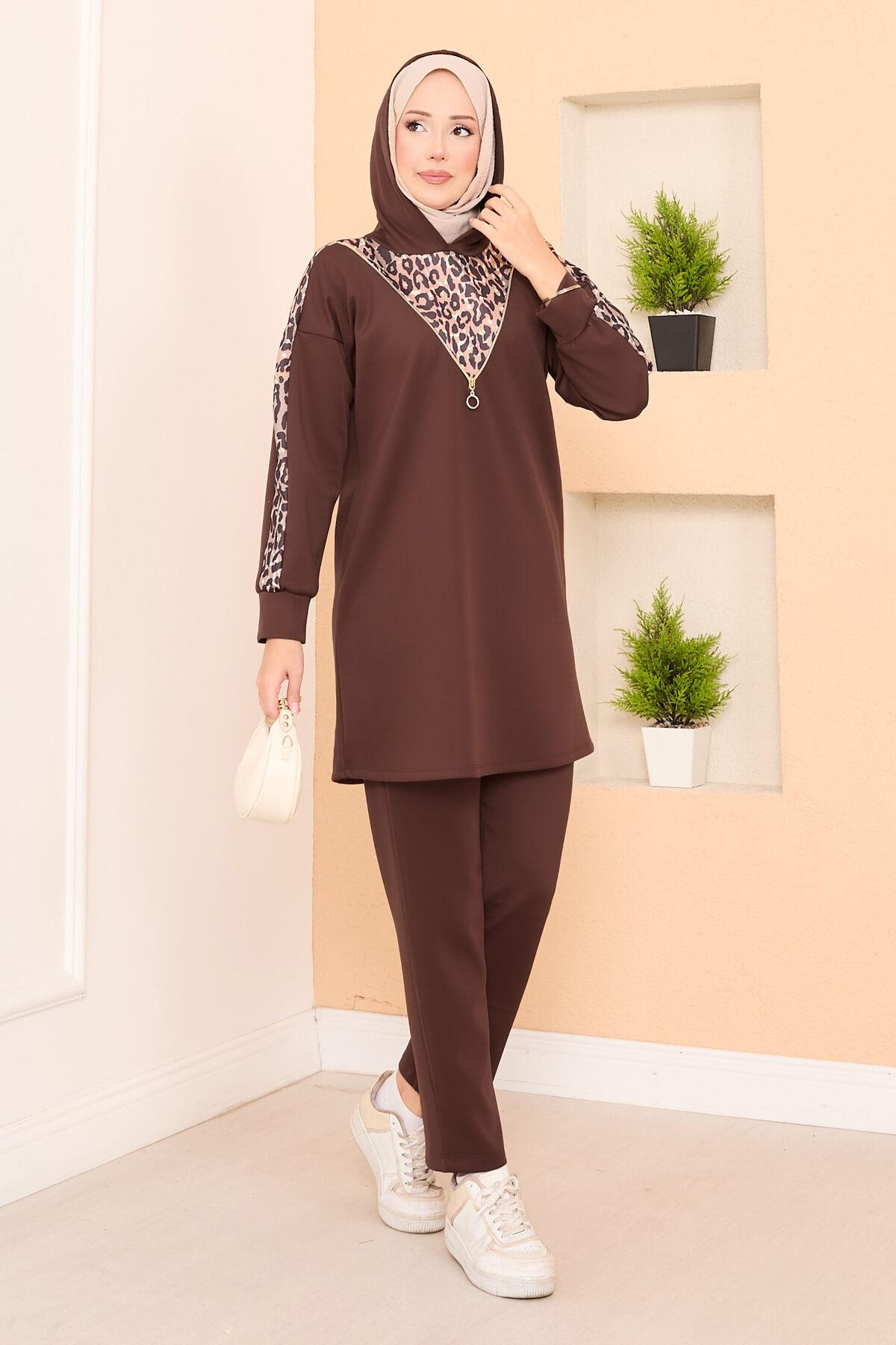 Zipper Detailed Leopard 2 Piece Set Brown (125M00614788R25L)