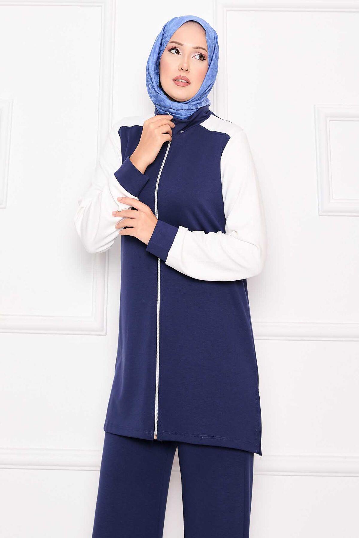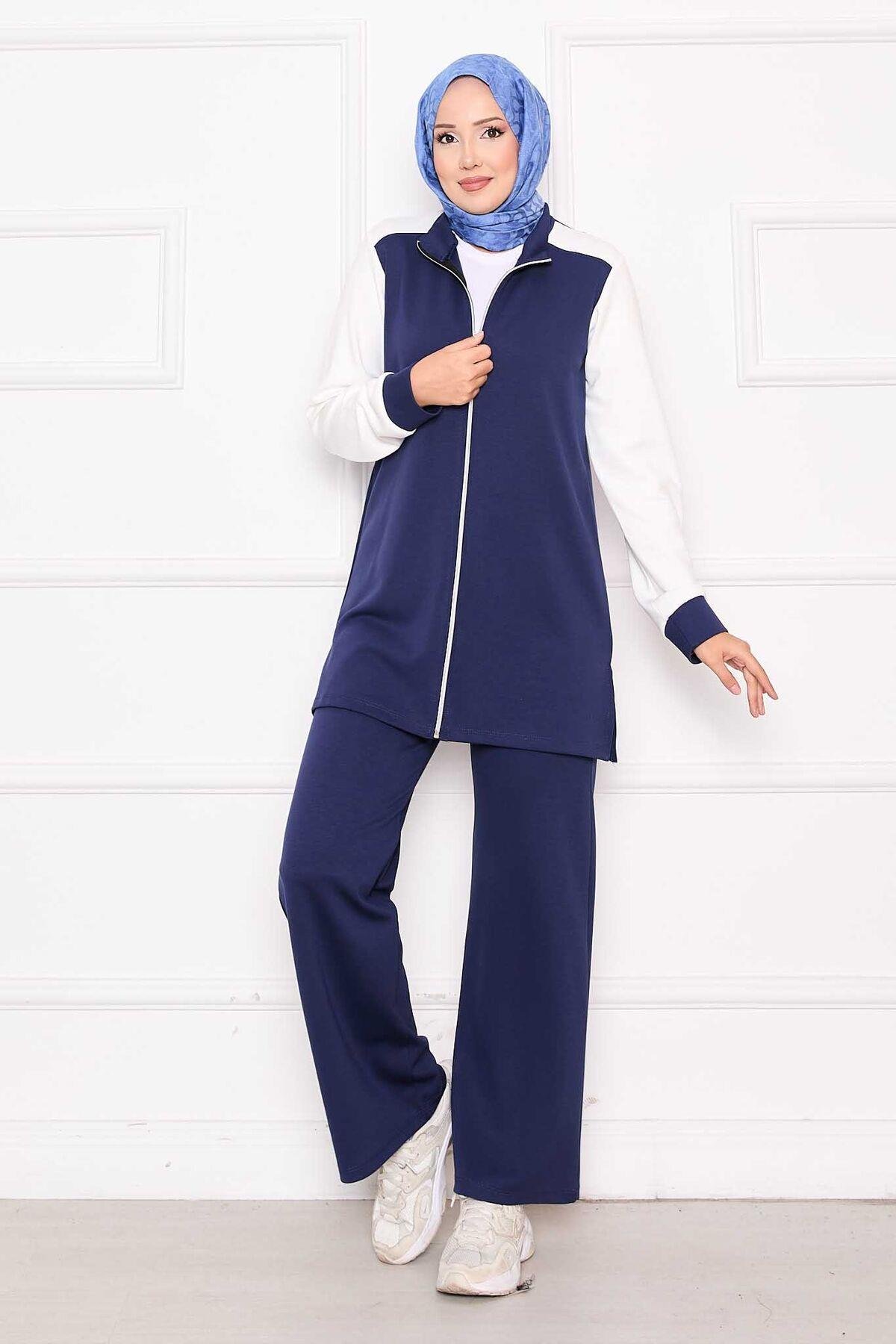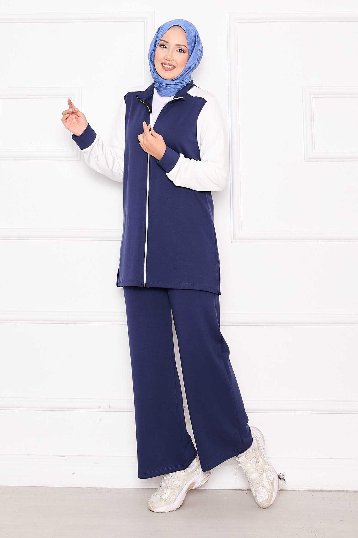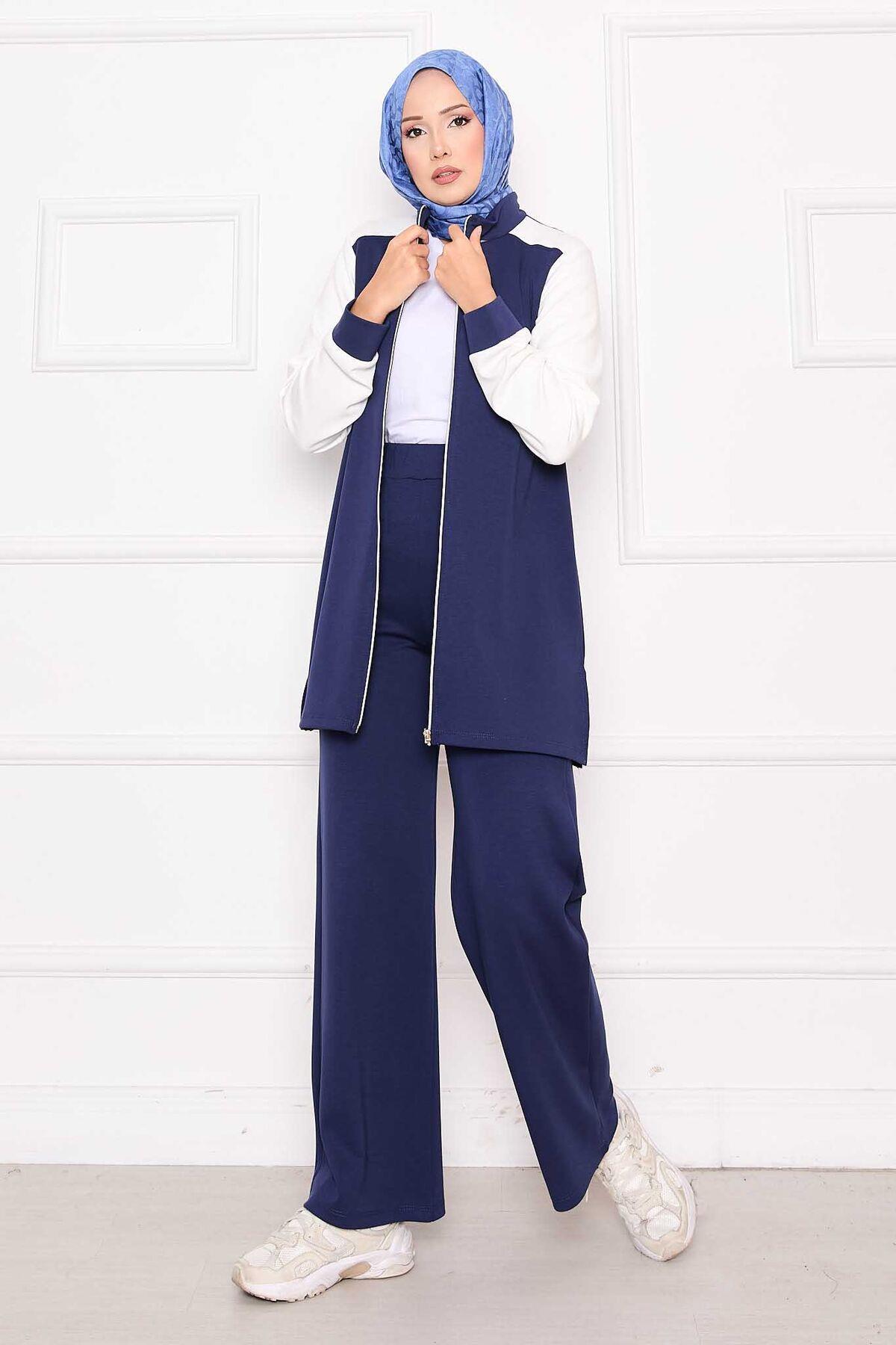 Zippered & Garnished Sports 2 Piece Set Indigo (125M00618565R24L)