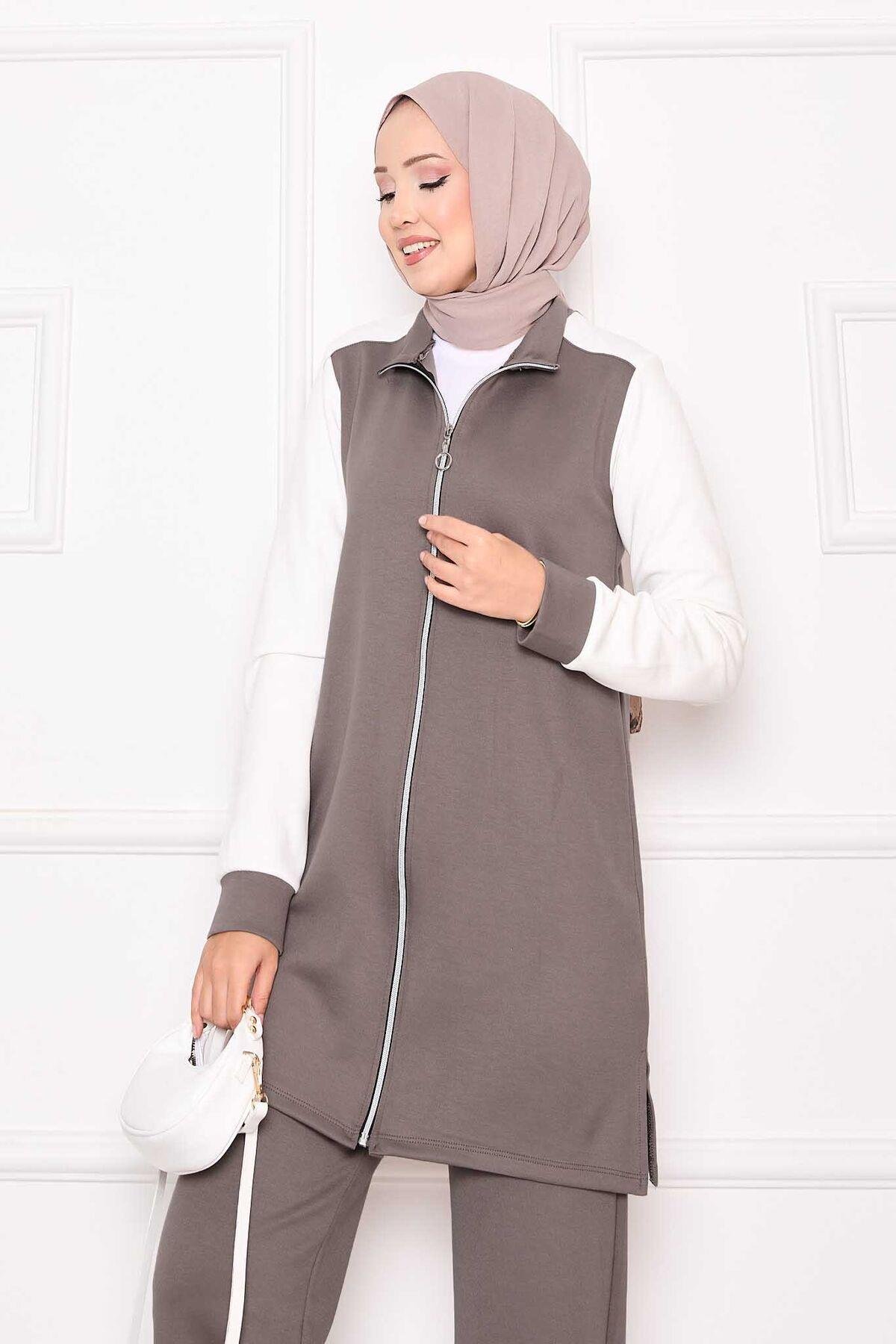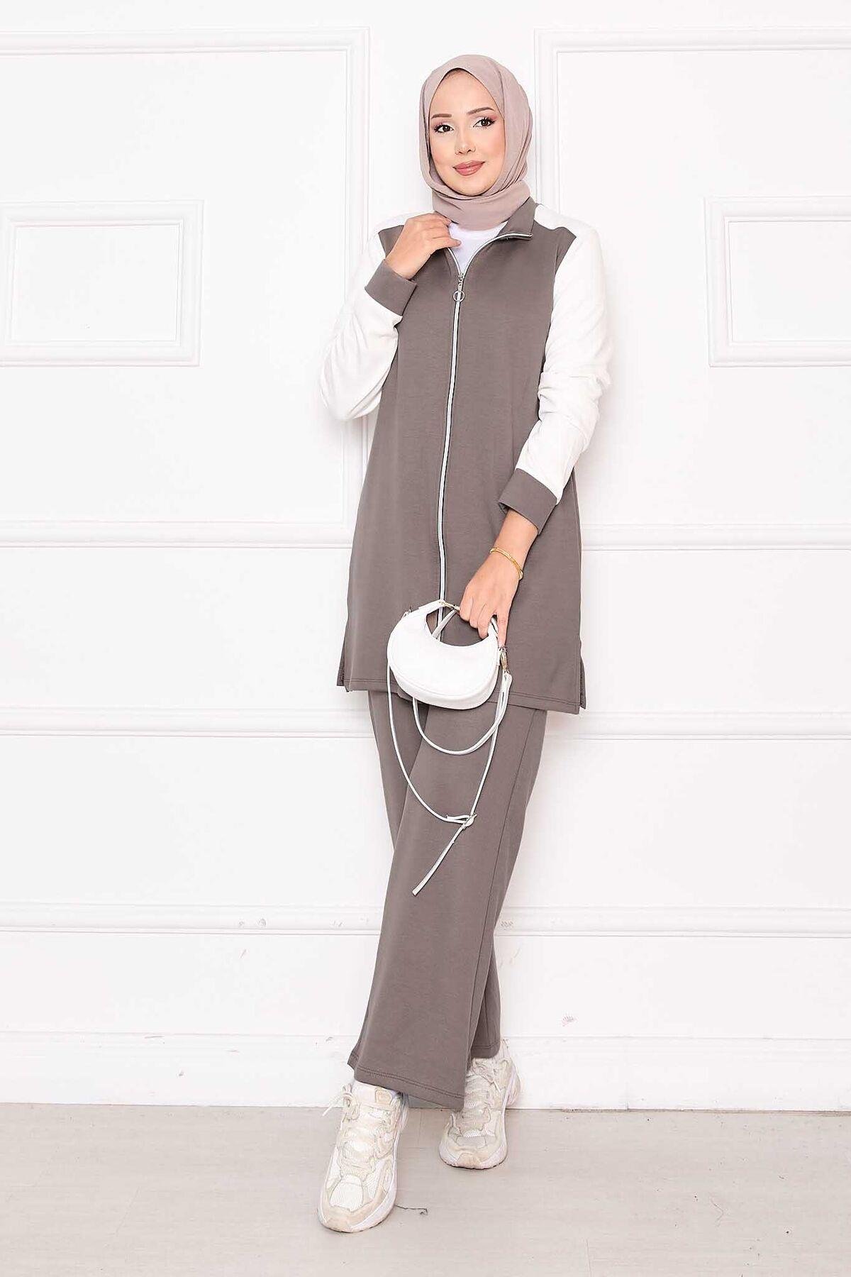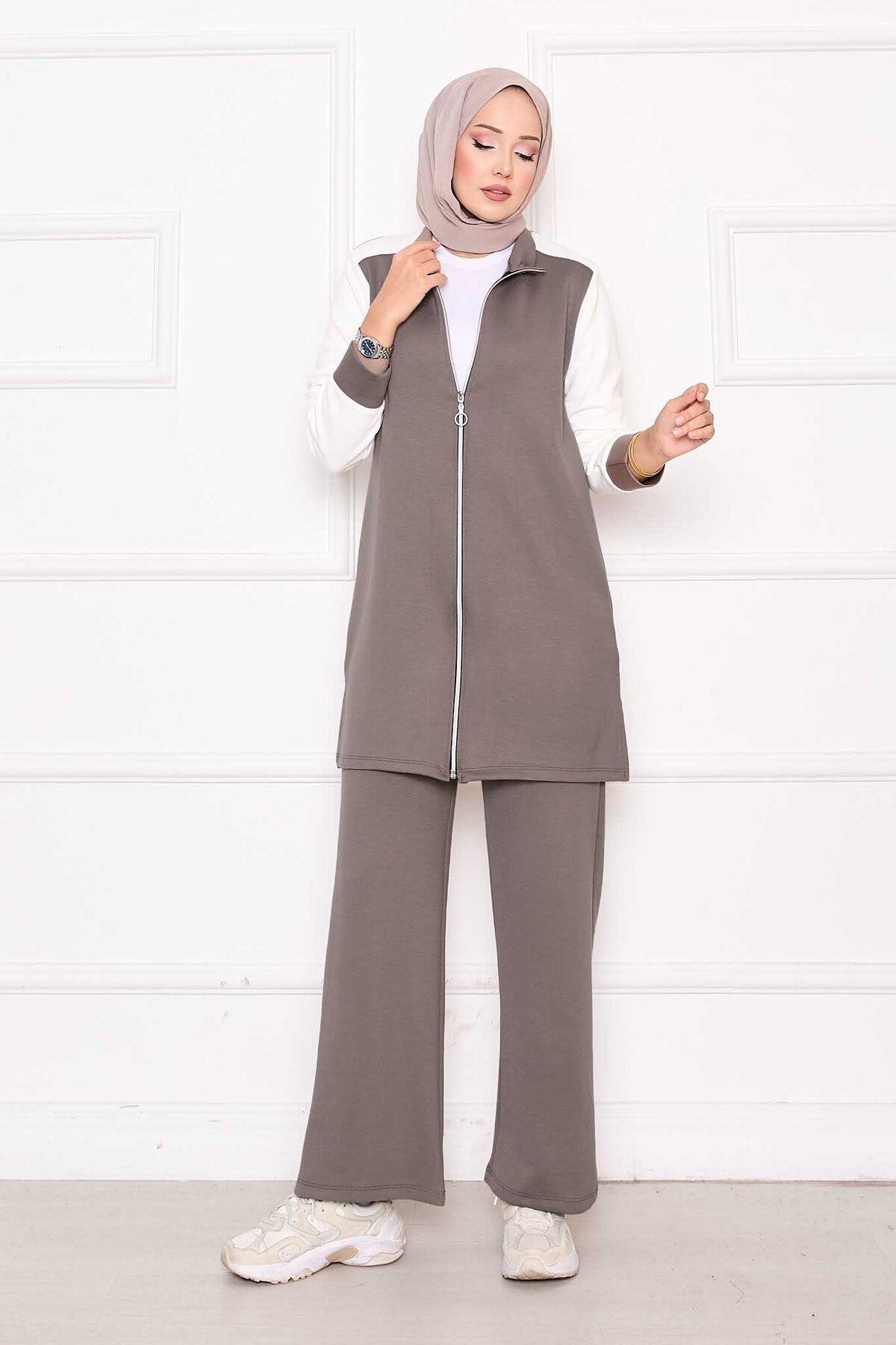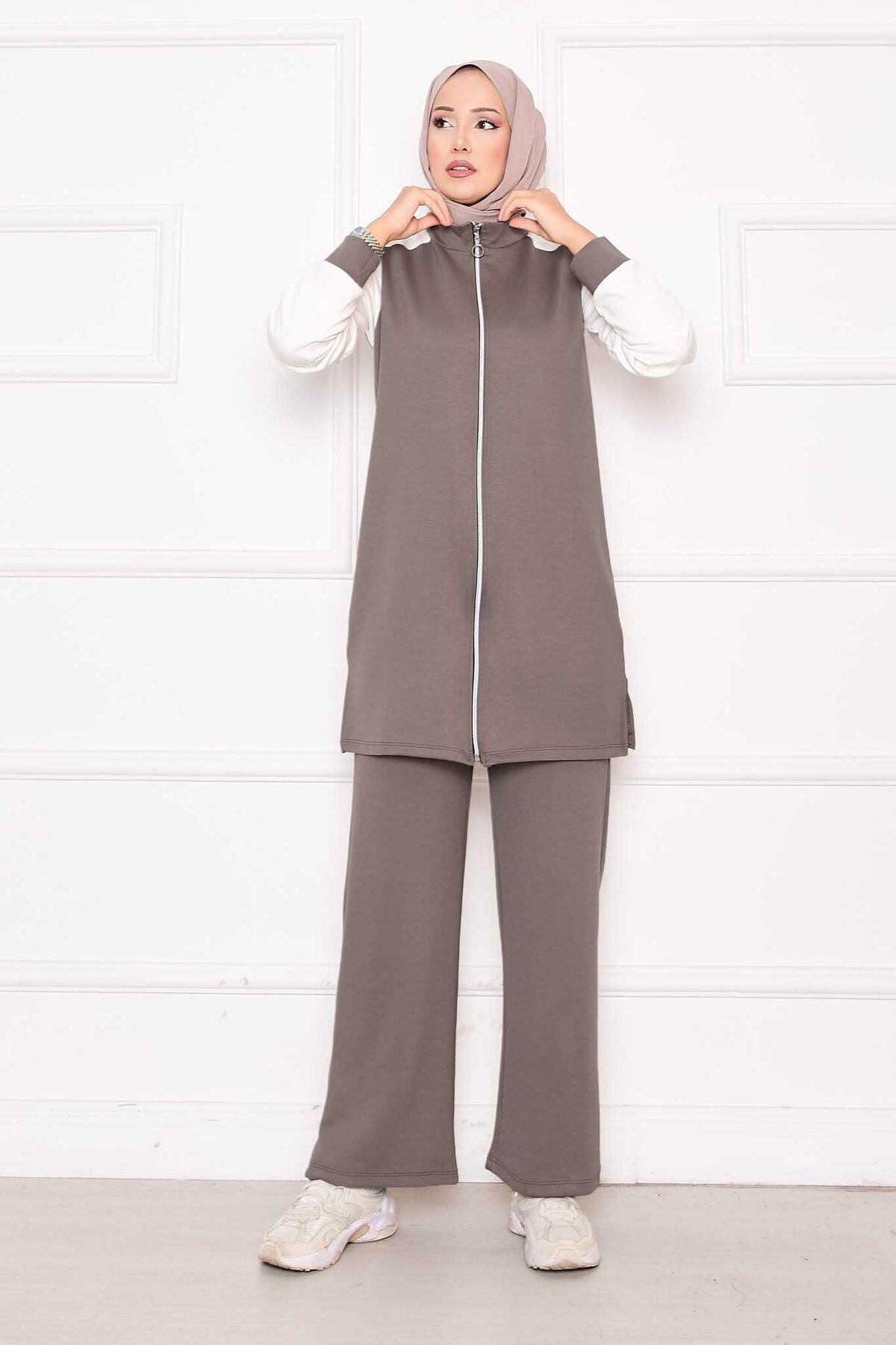 Zippered & Garnished Sports 2 Piece Set Dark Mink (125M00618565RK7L)