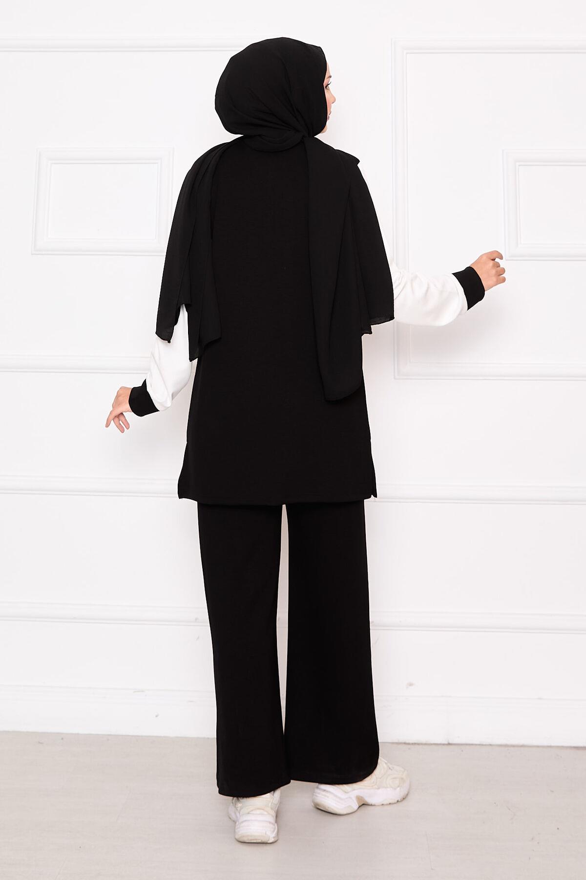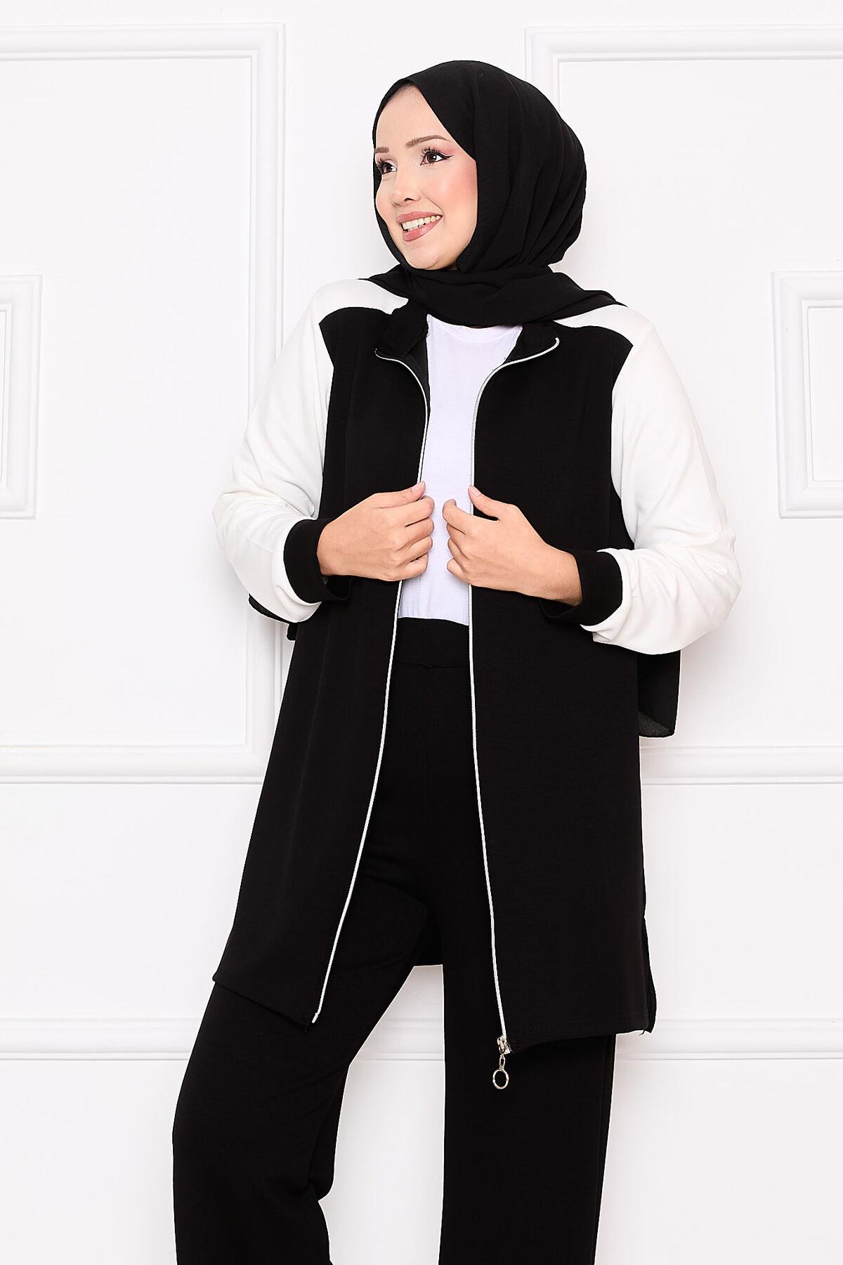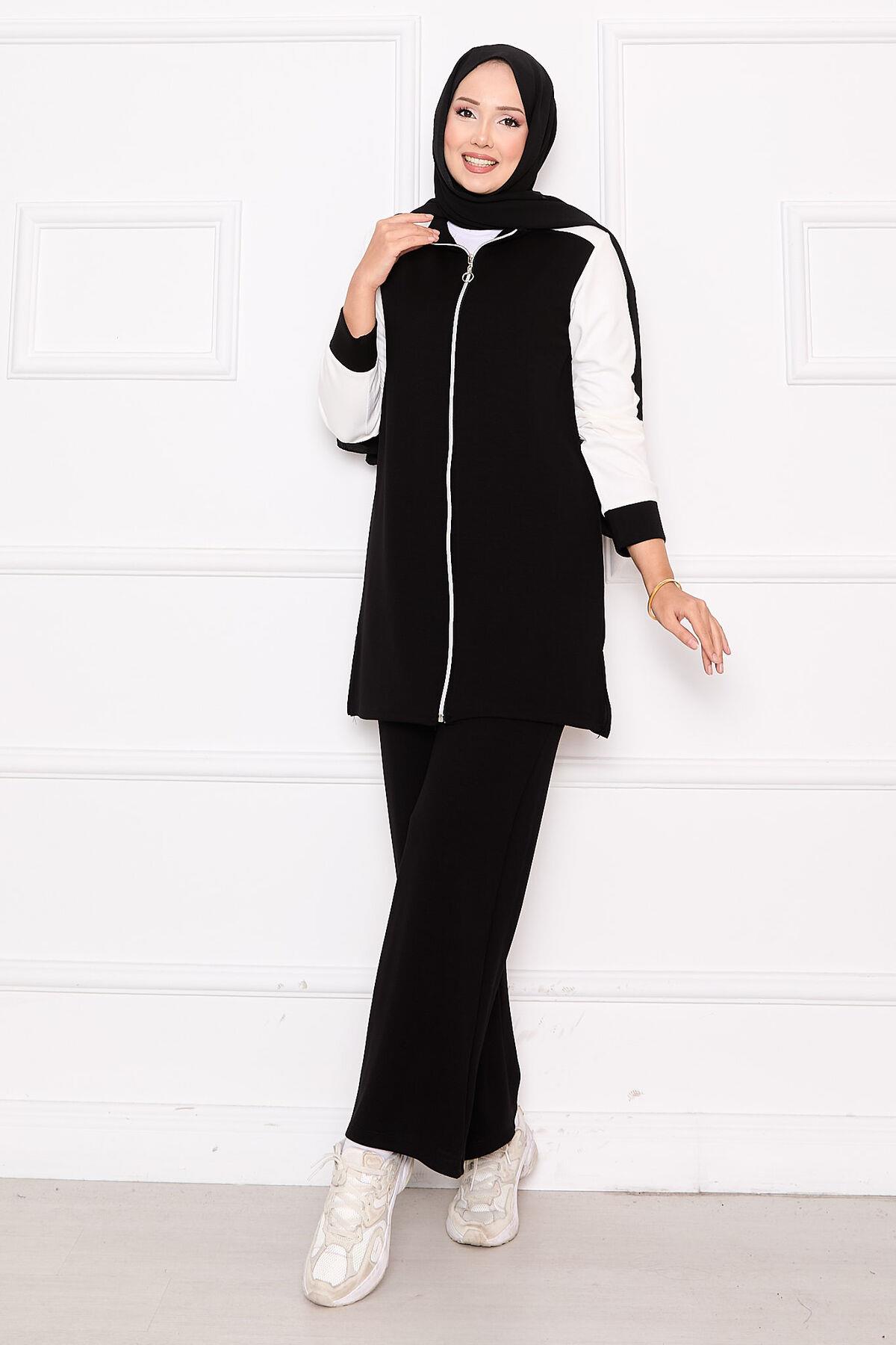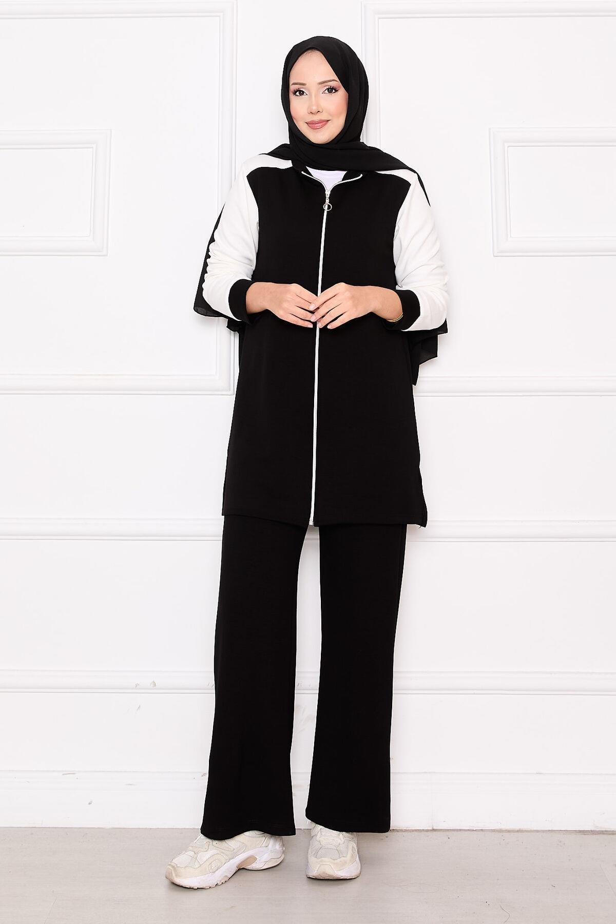Zippered & Garnished Sports 2 Piece Set Black (125M00618565R52L)