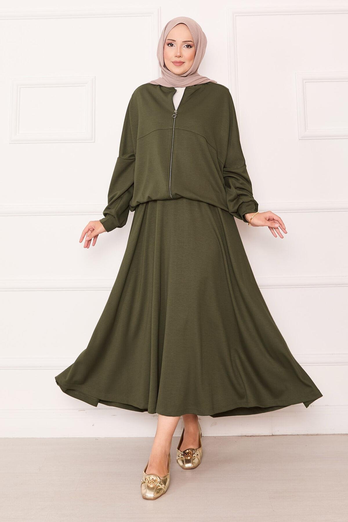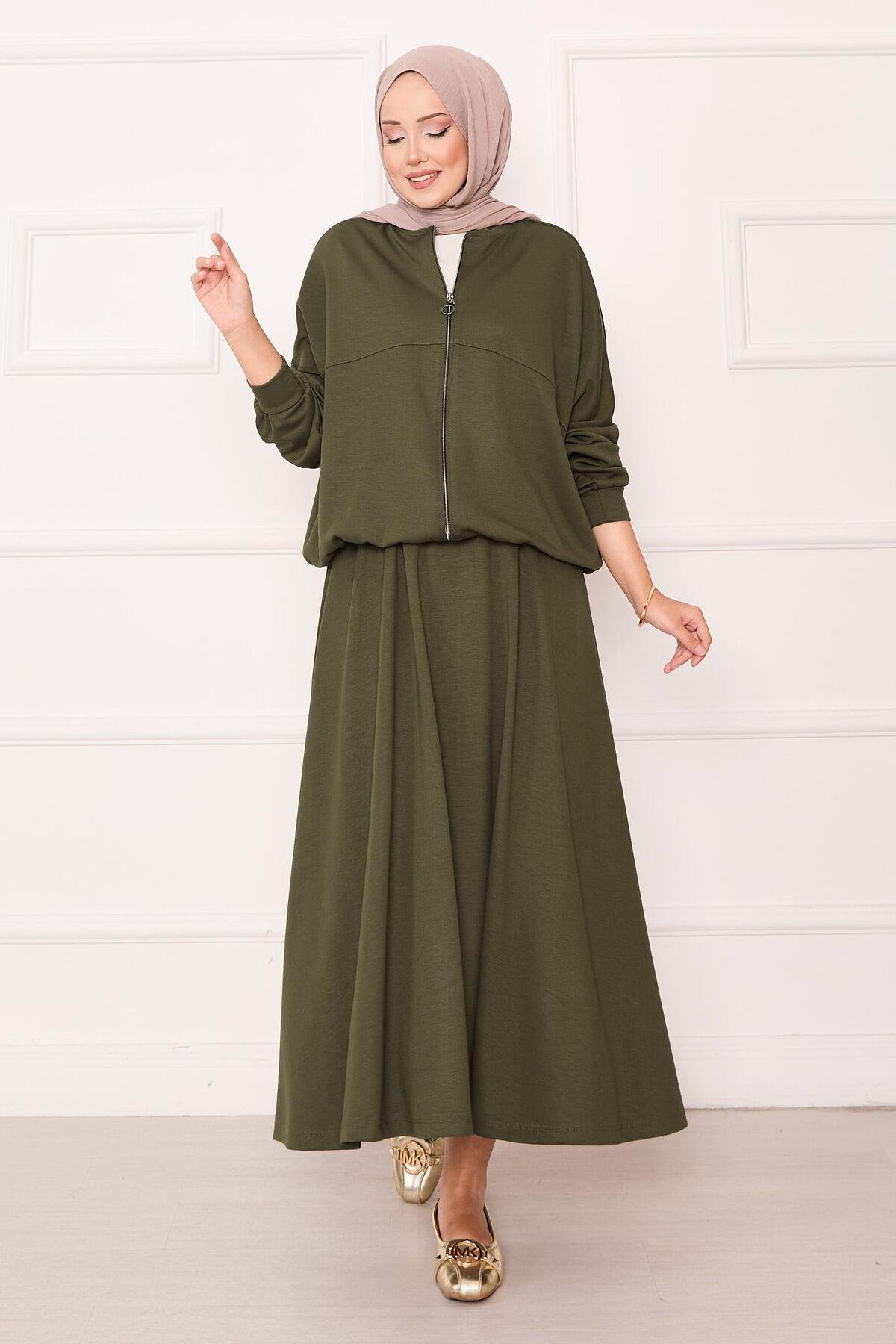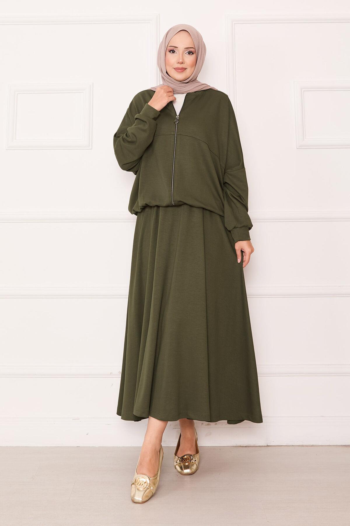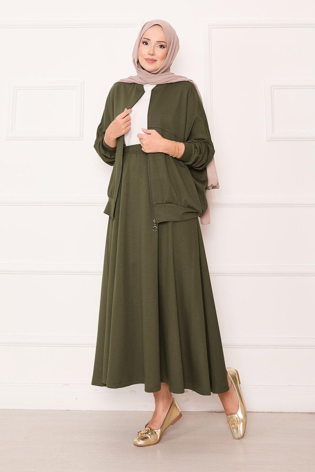 Zippered Bomber Jacket and Skirt Set Khaki (125M00623481R221)