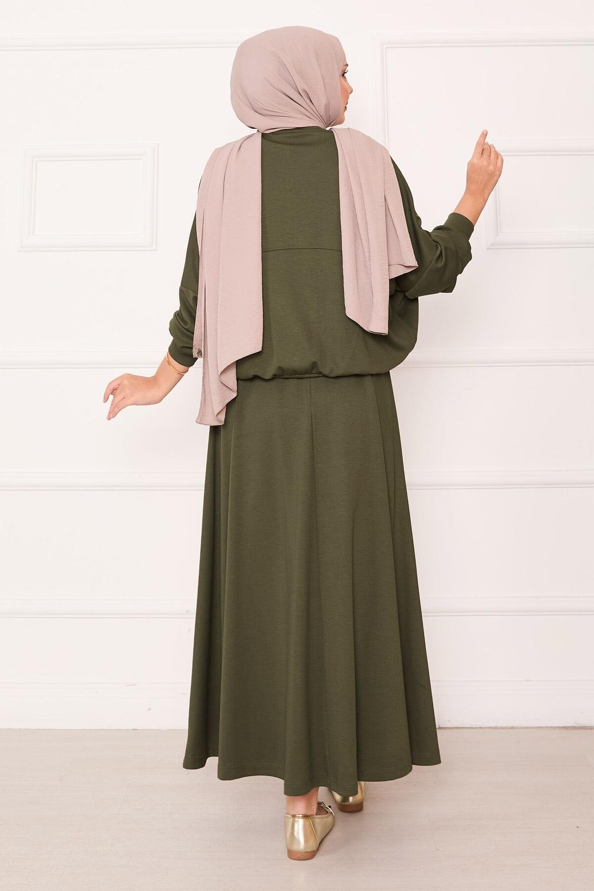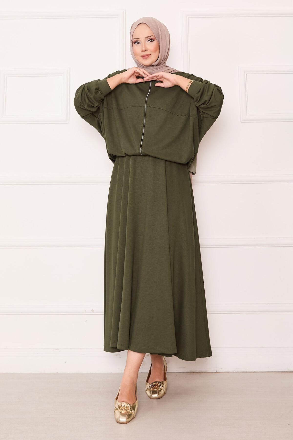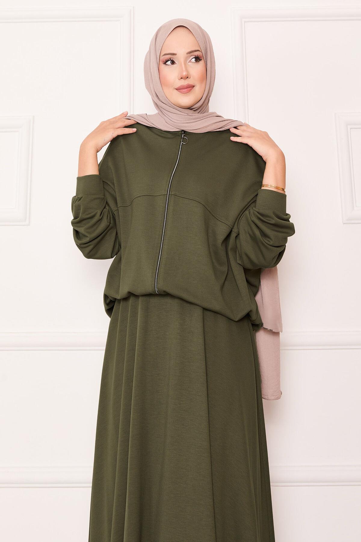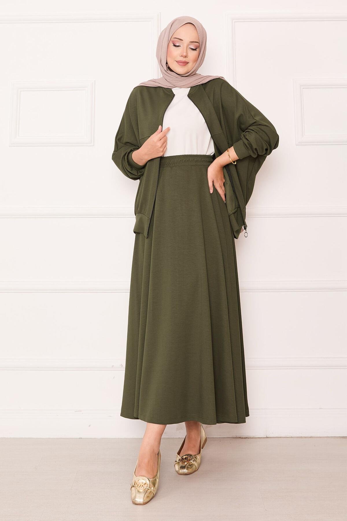 Zippered Bomber Jacket and Skirt Set Khaki (125M00623481R221)