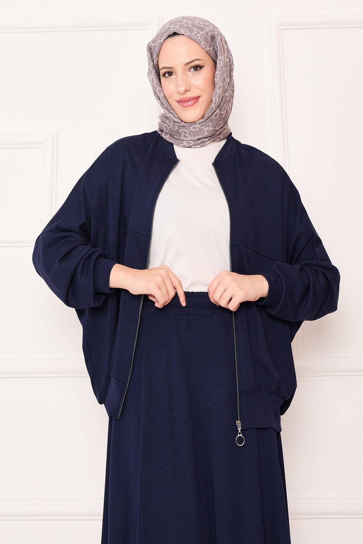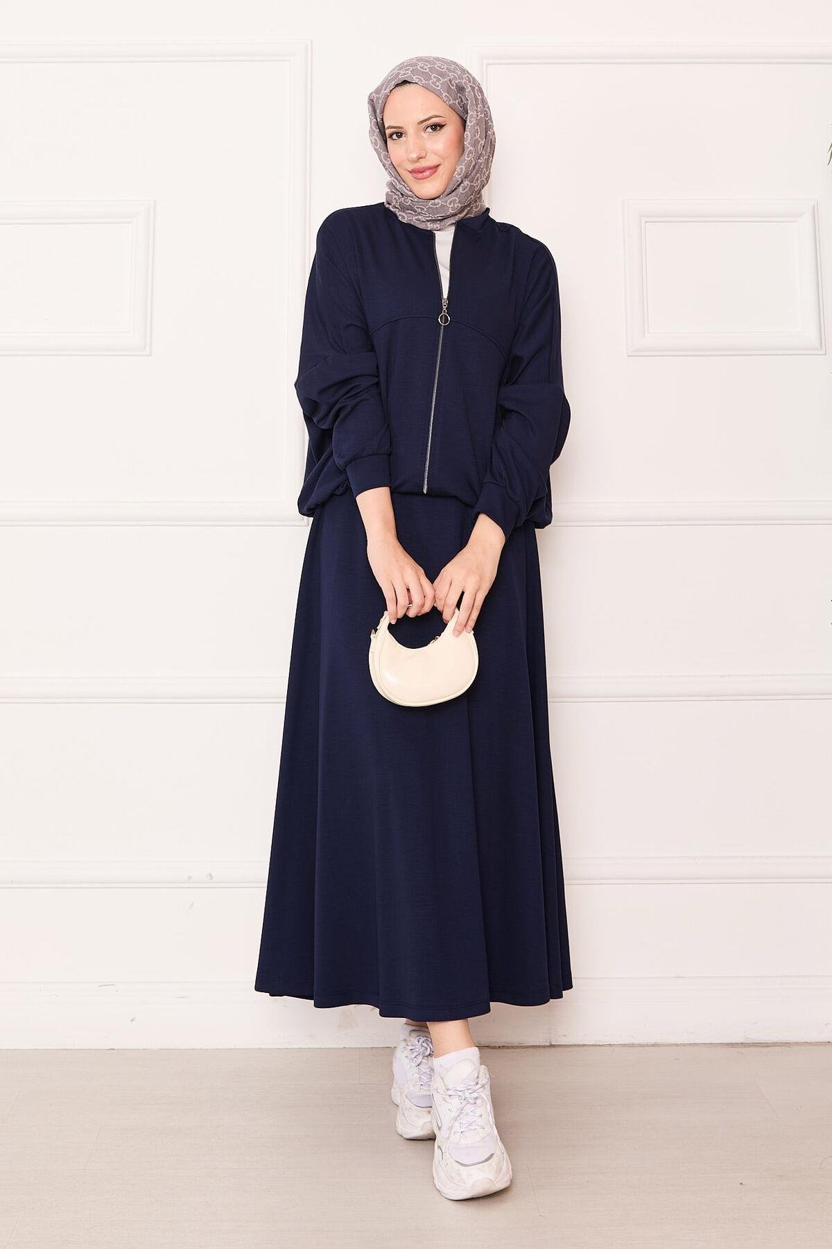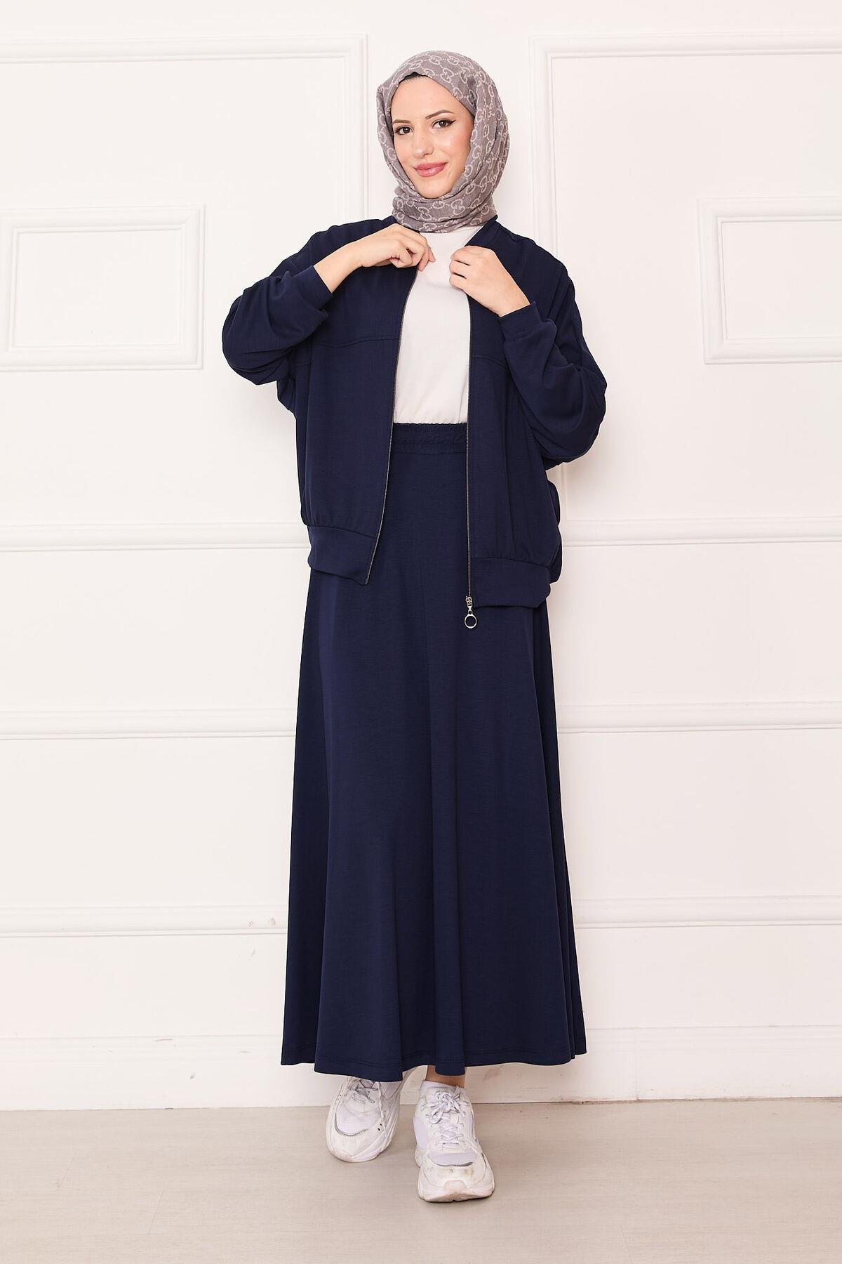 Zippered Bomber Jacket and Skirt Set Navy Blue (125M00623481R331)