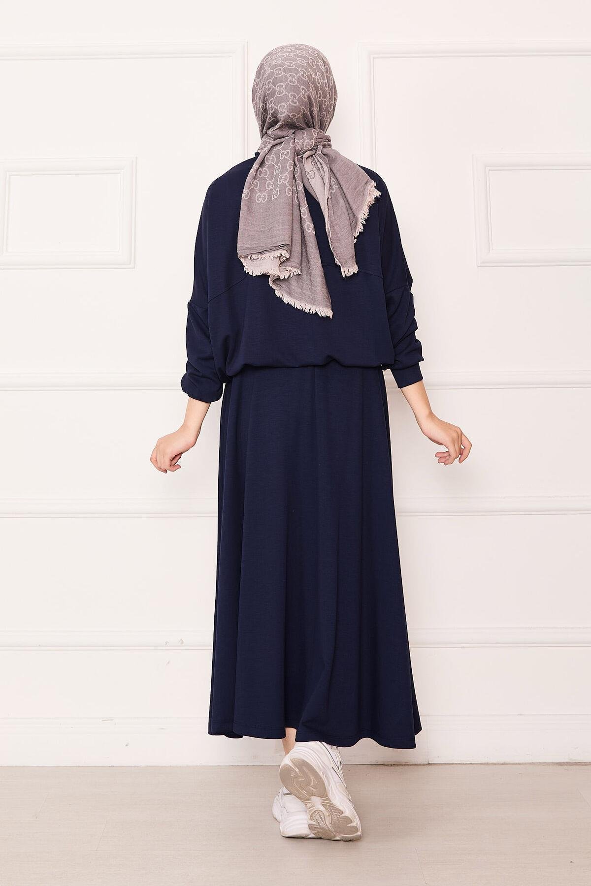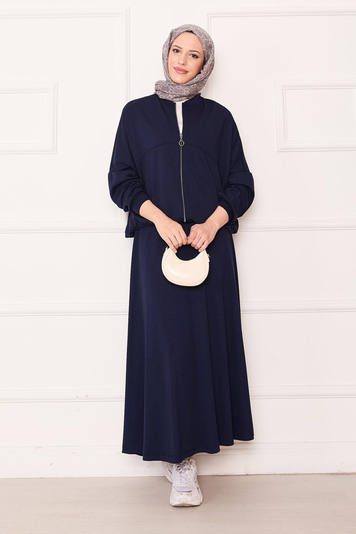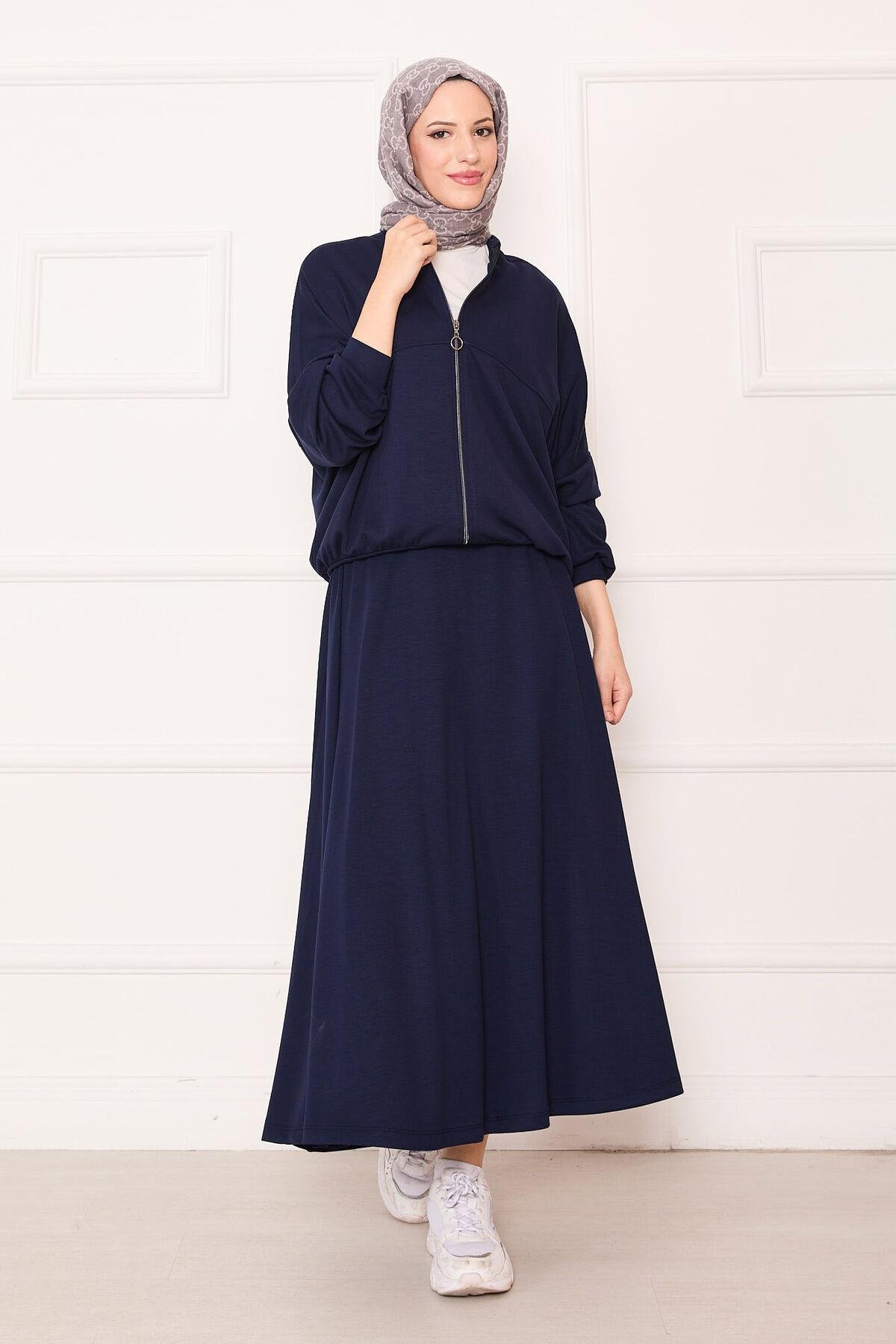 Zippered Bomber Jacket and Skirt Set Navy Blue (125M00623481R331)