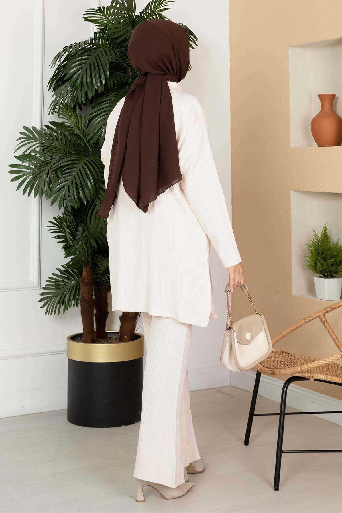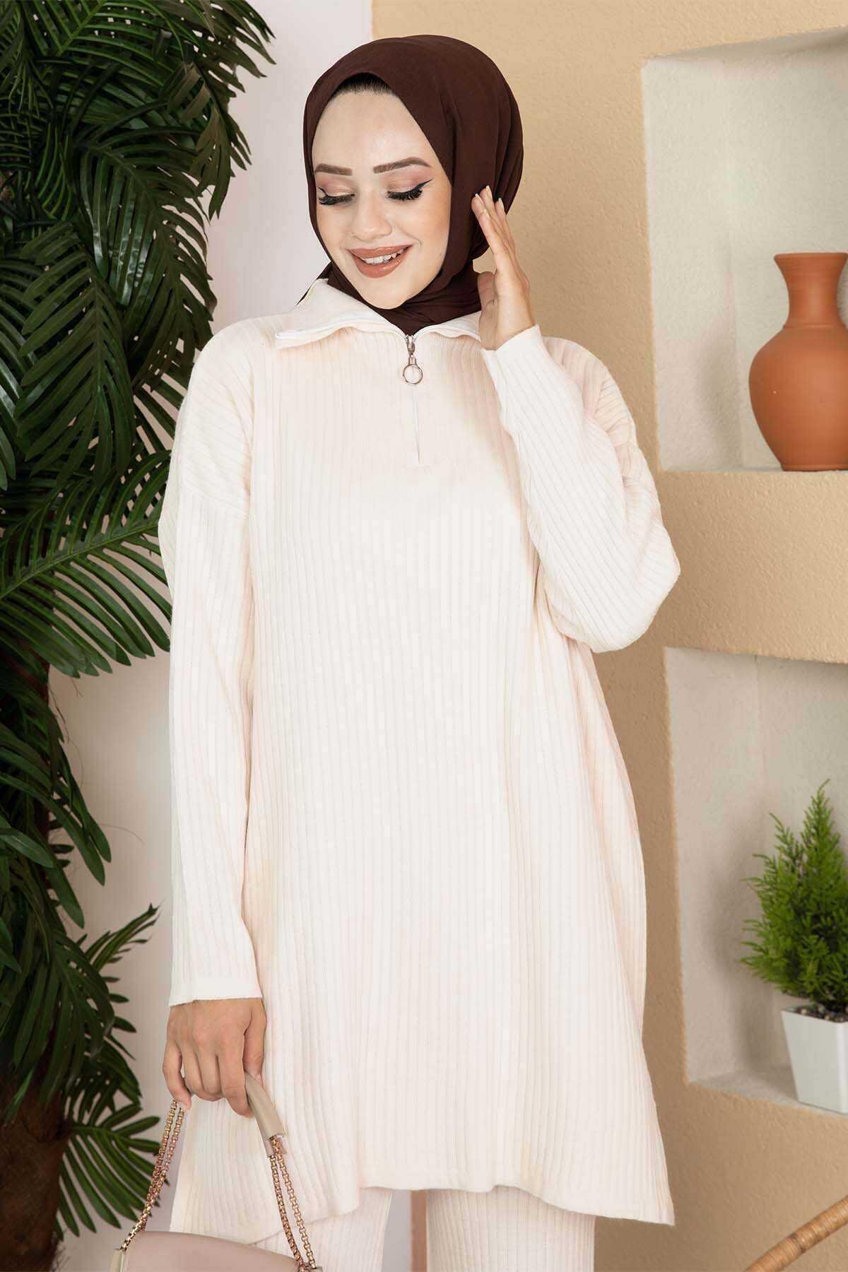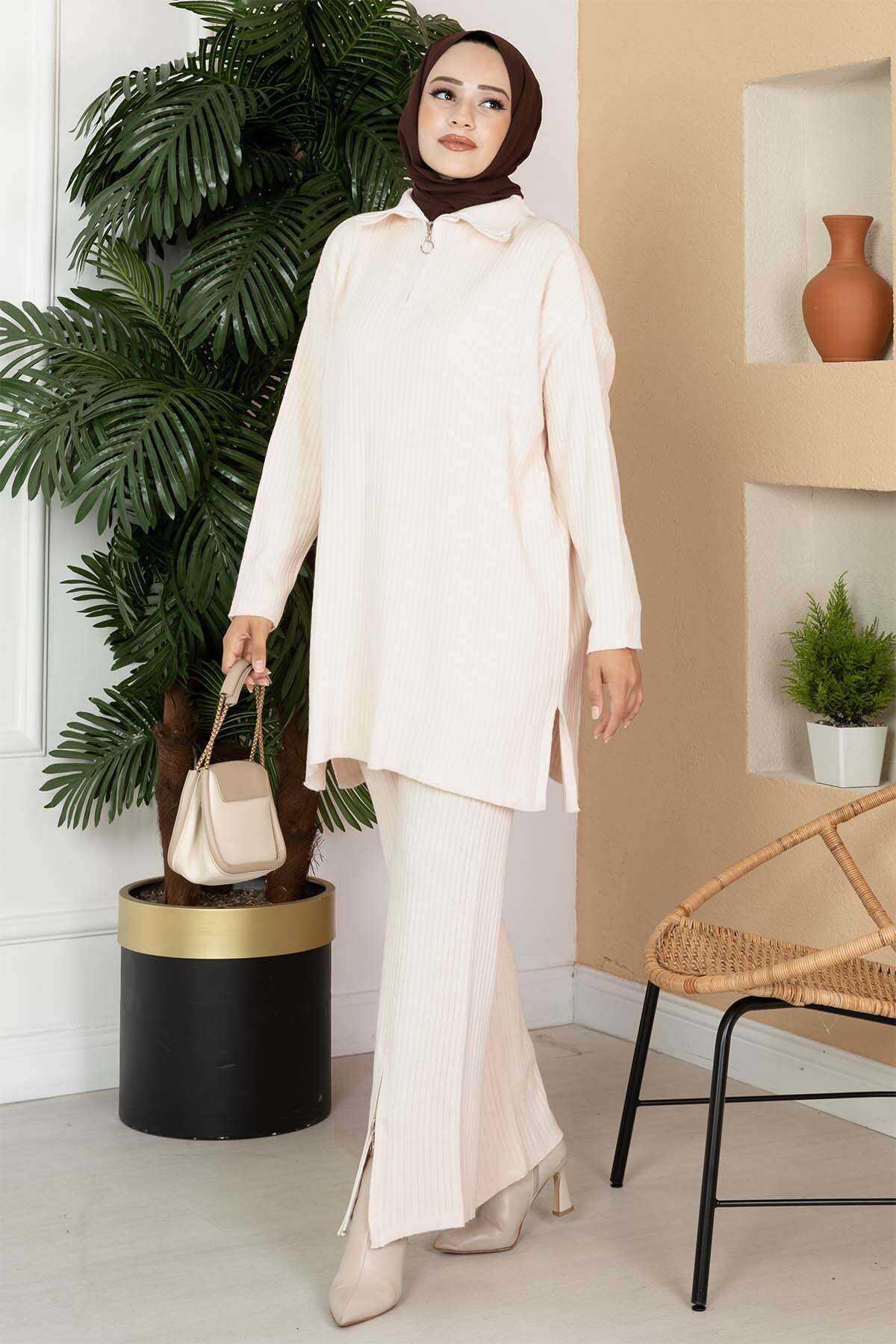 Zippered Two Piece Knitwear Set Cream (120M00633213R32STD)