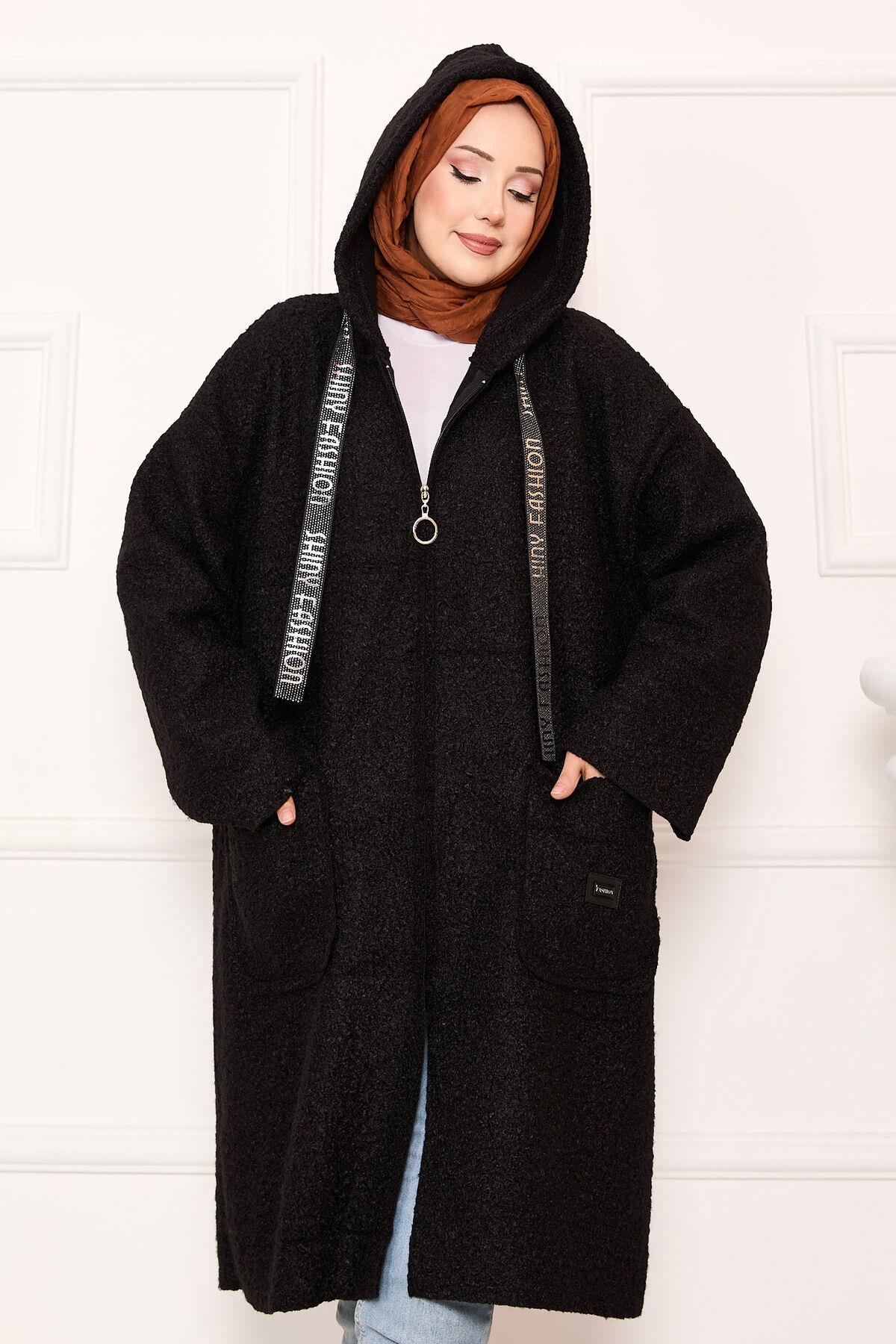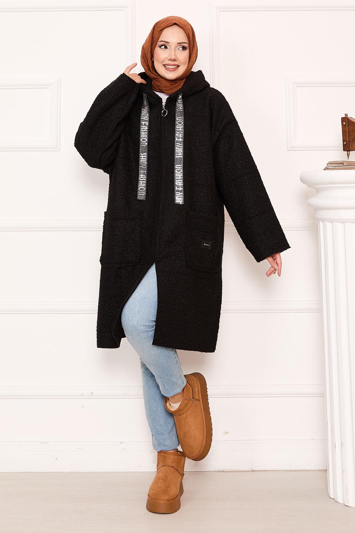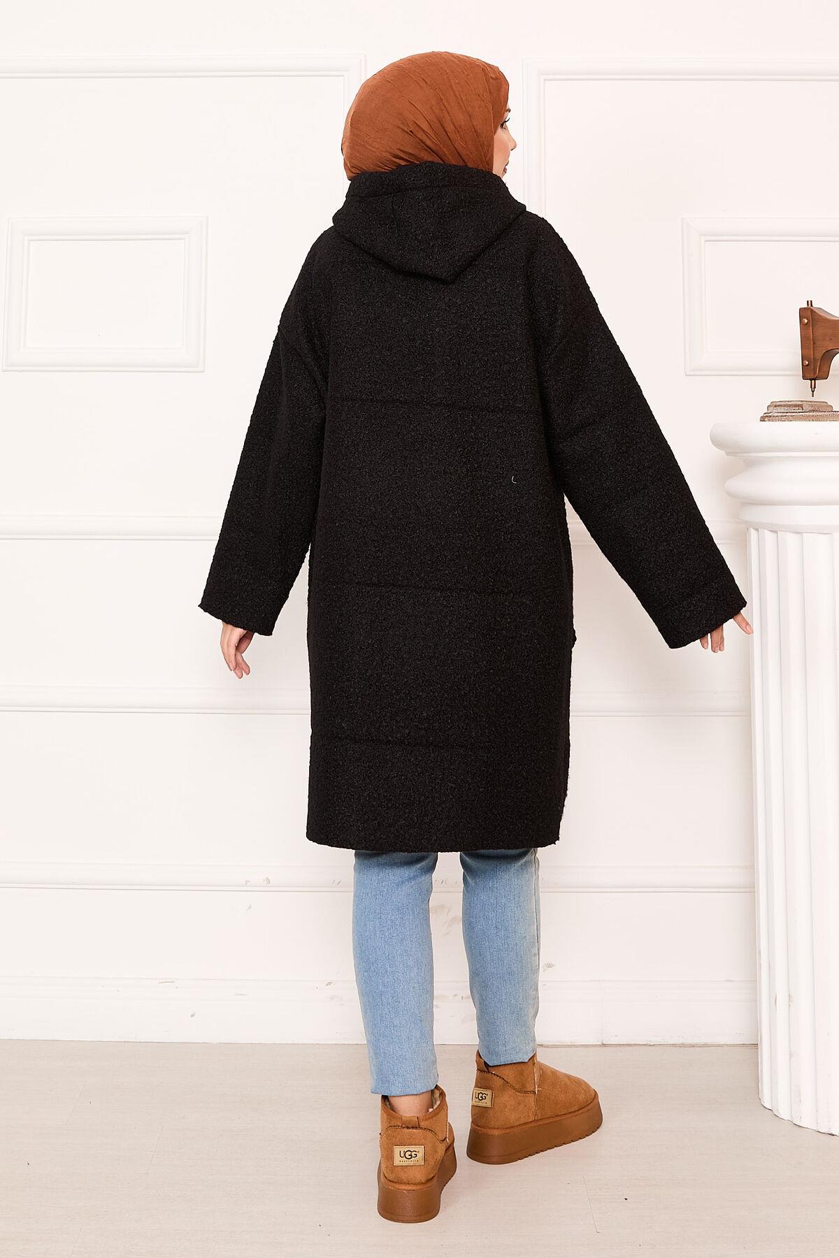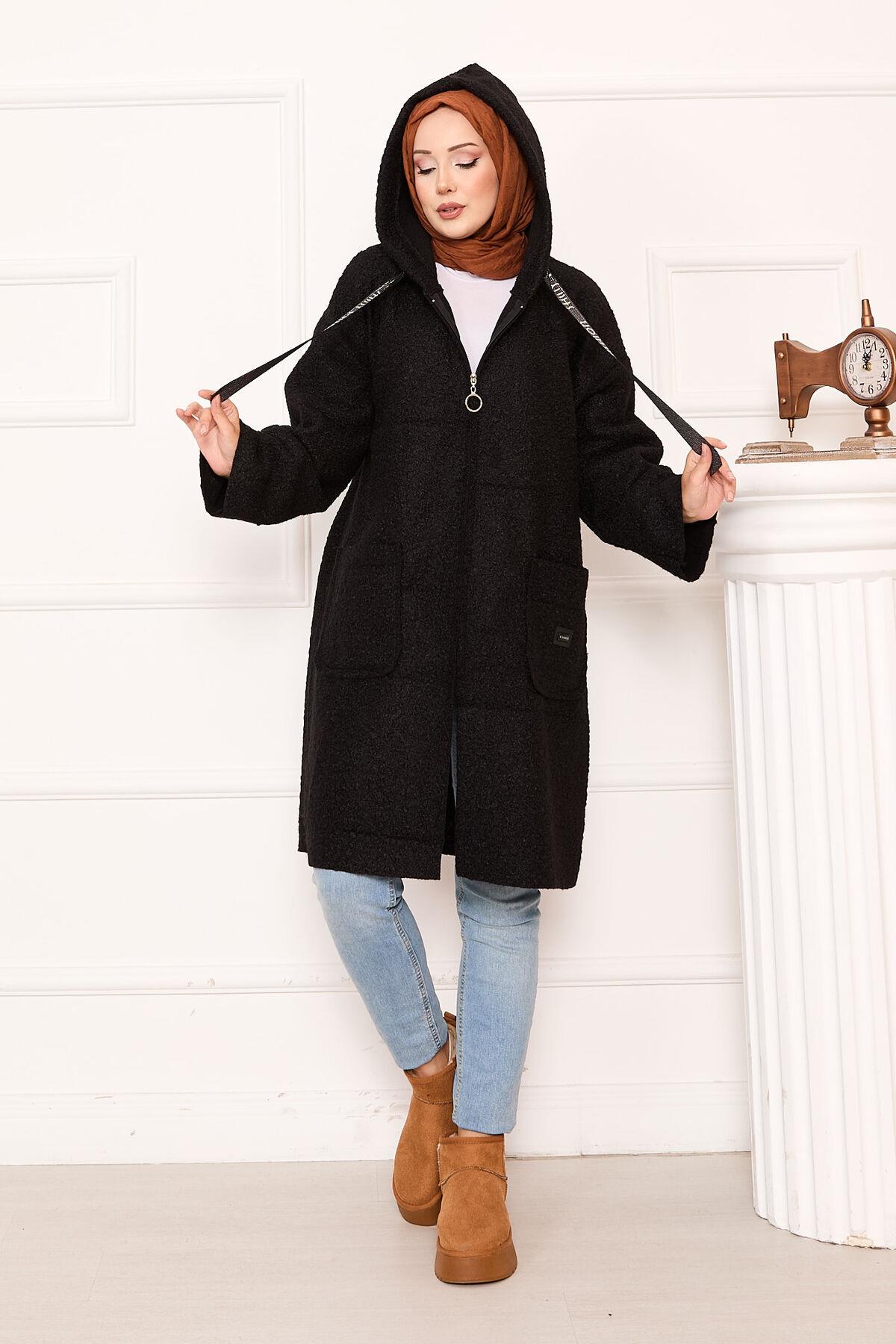 Zippered Hooded Boucle Cape Black (125M02316574R52STD)