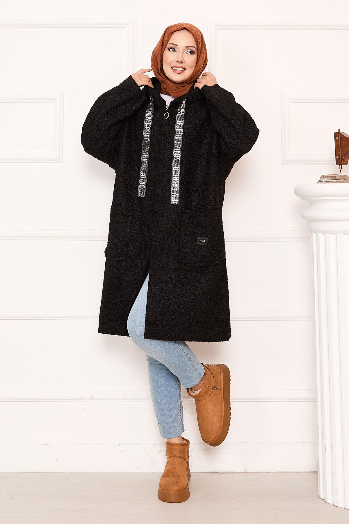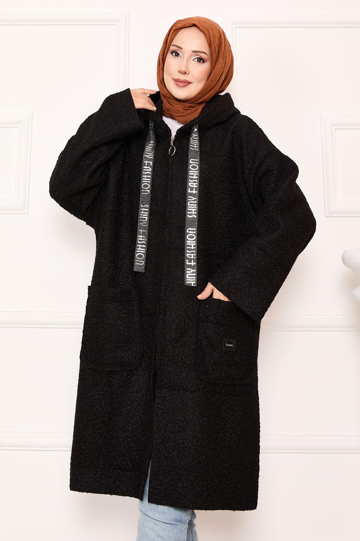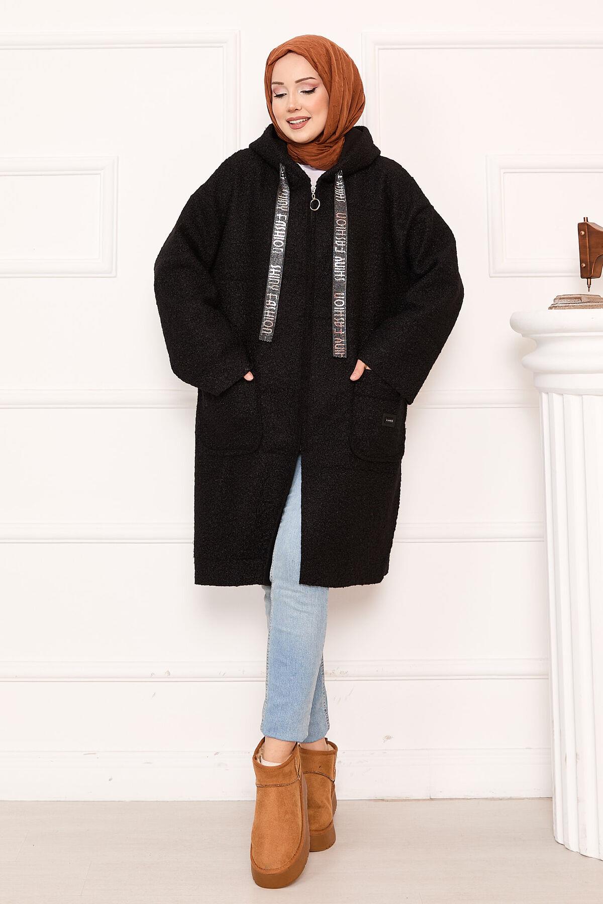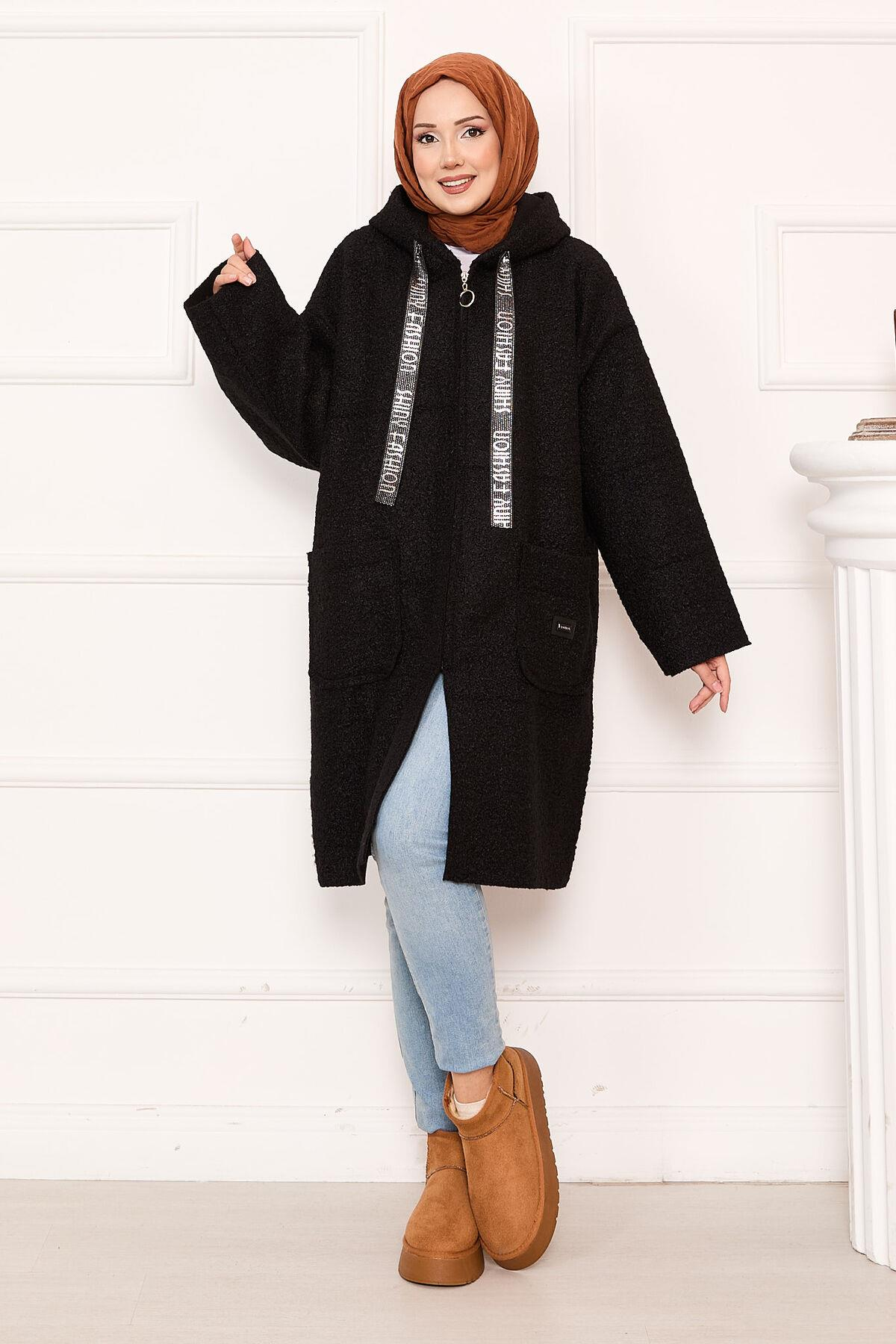 Zippered Hooded Boucle Cape Black (125M02316574R52STD)