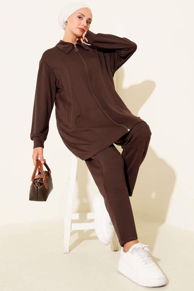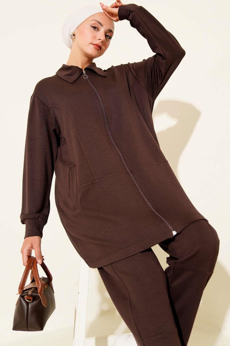 Zippered Loysha Pocketed 2 Piece Set Bitter Brown (0350-26117-666789)