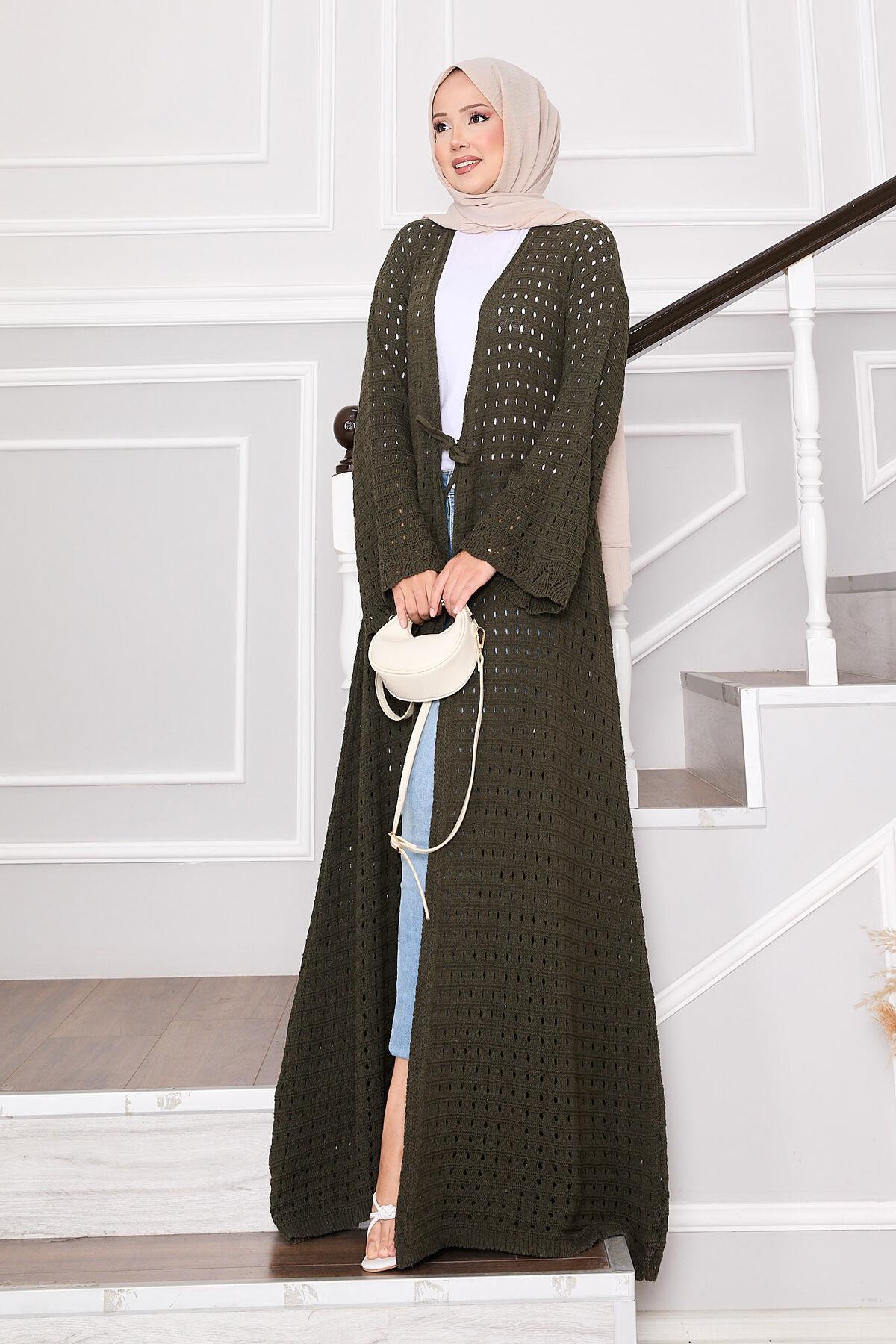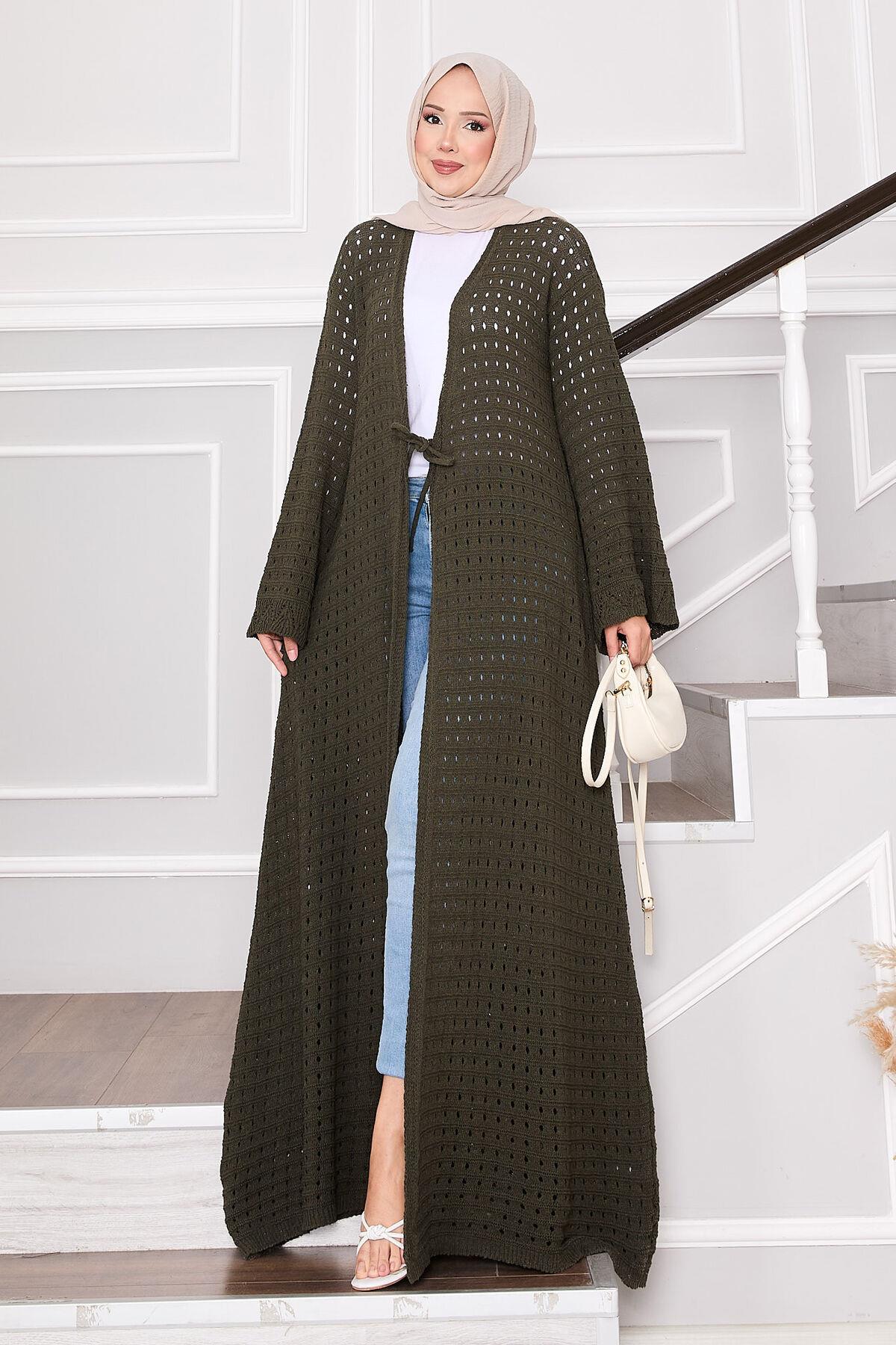 Mesh Detailed Front Tie Knit Cardigan Khaki (125M00919630R22STD)