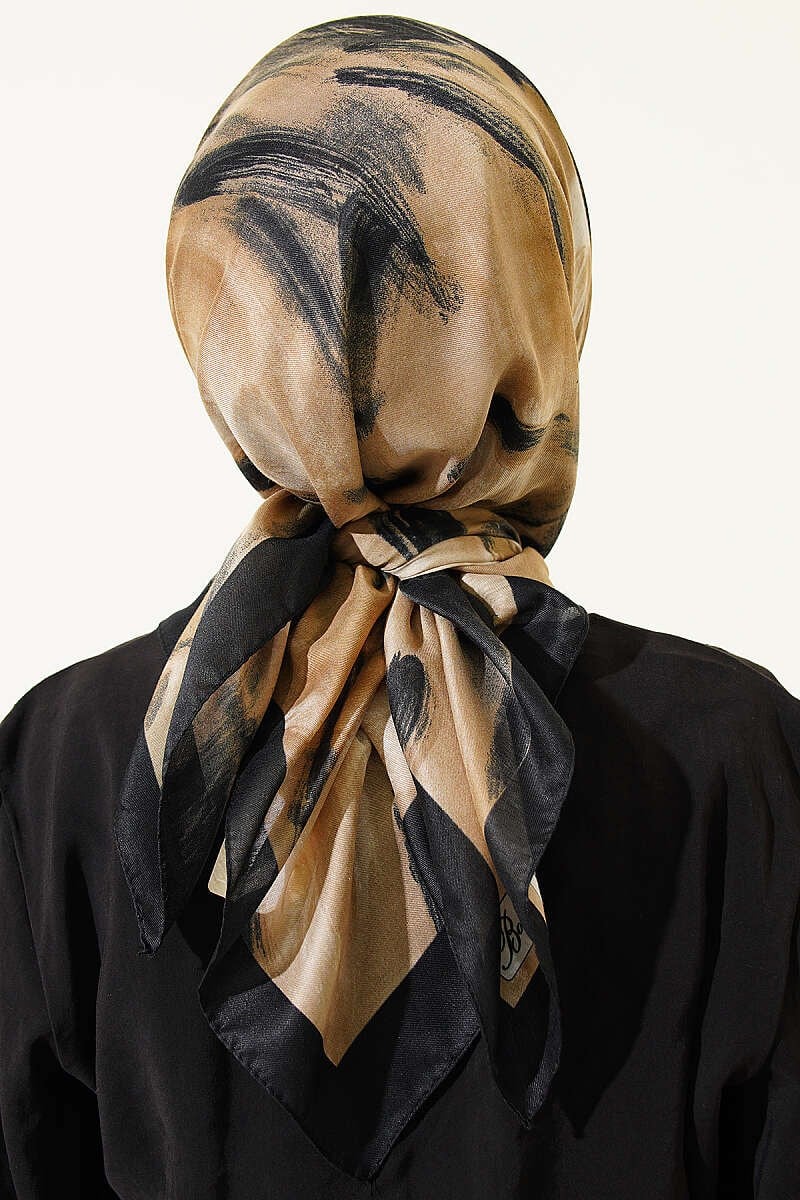 Brush Pattern Scarf Black Beige (0948-6207-753627)