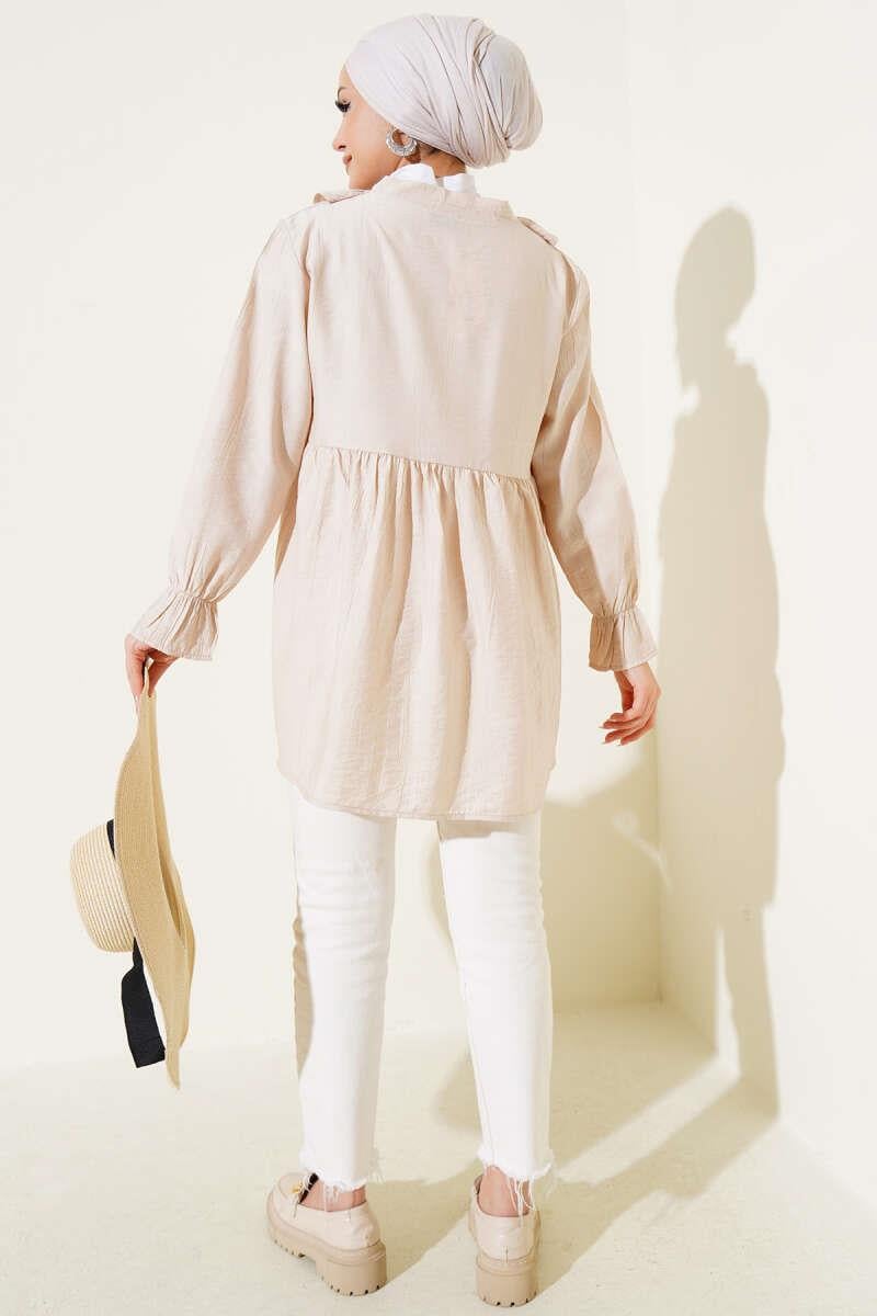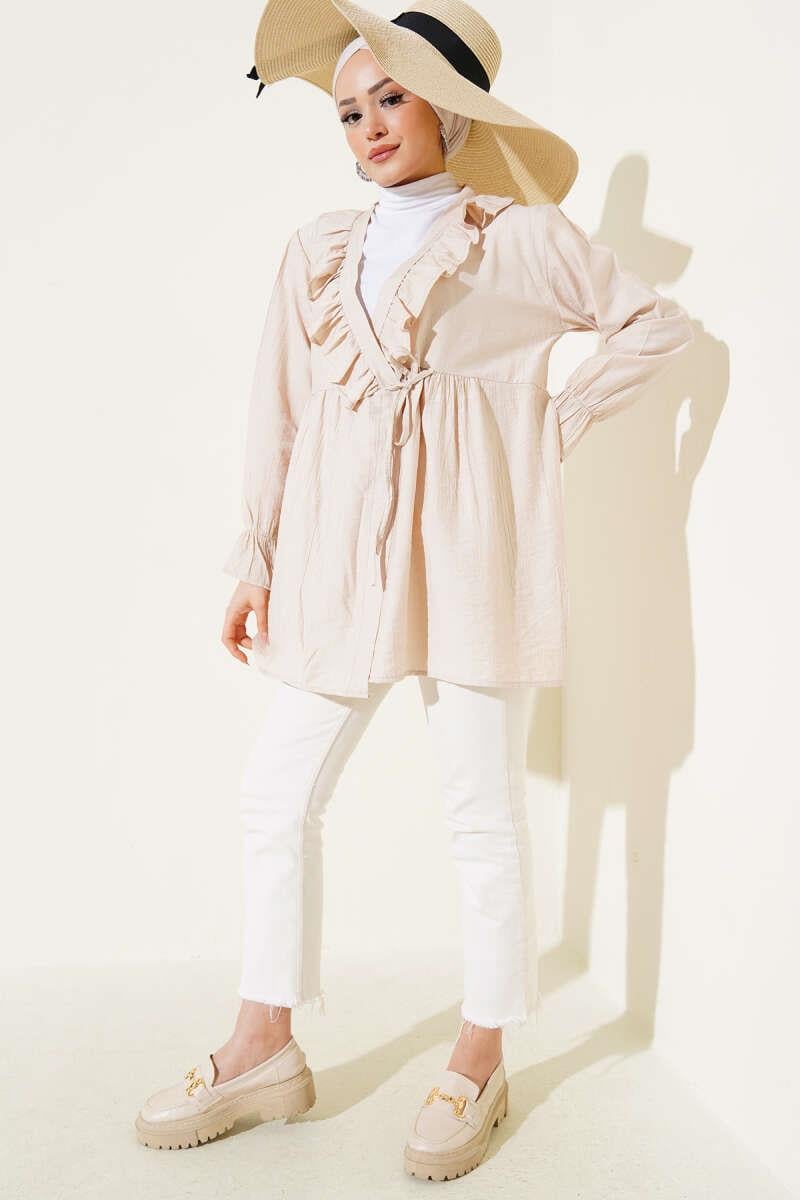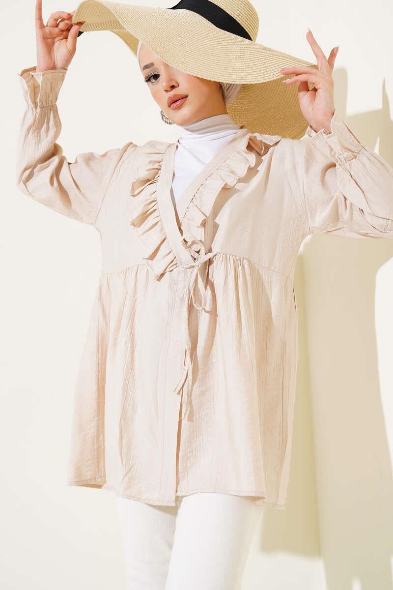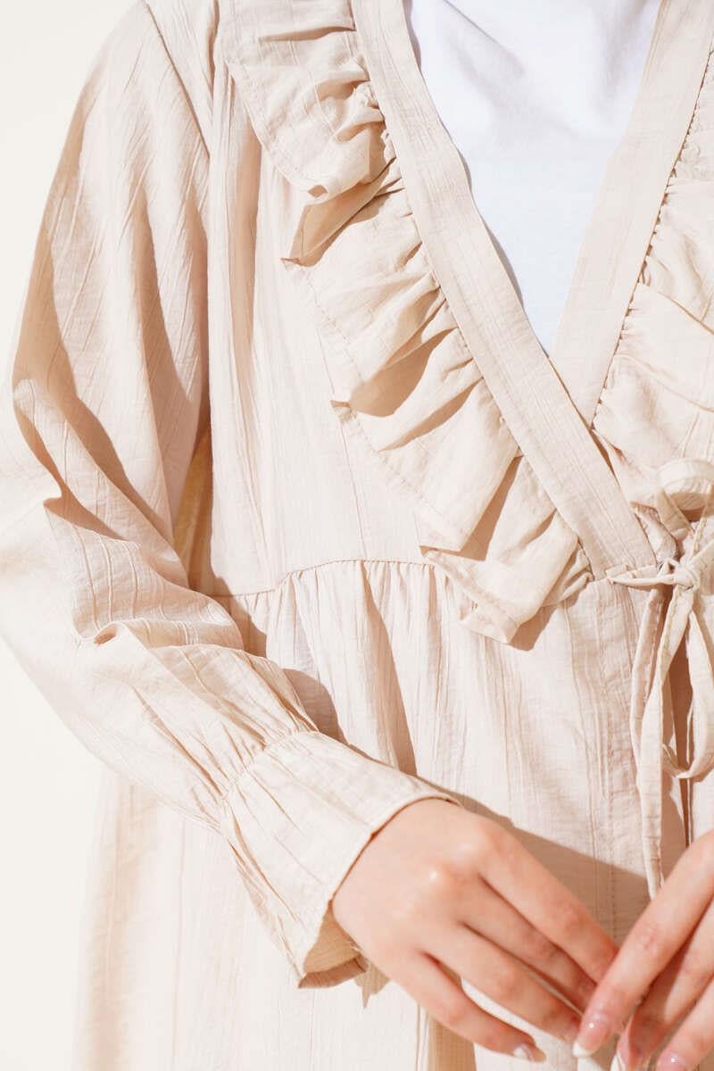 Ruffled Elastic Wrist Kimono Beige (0674-768-604688)