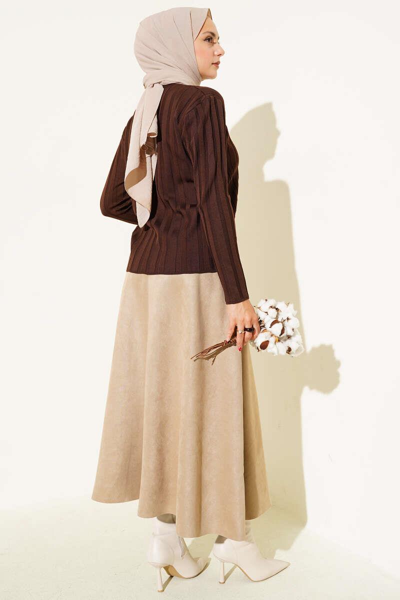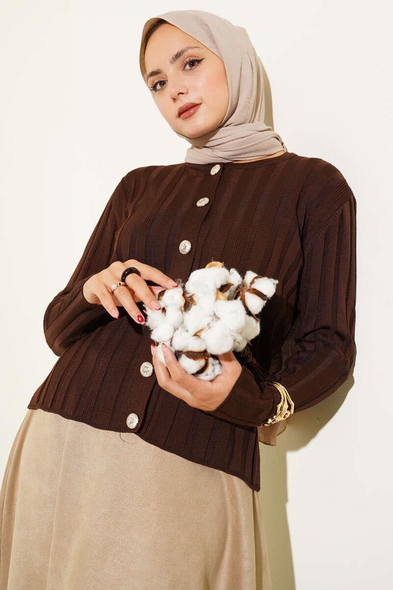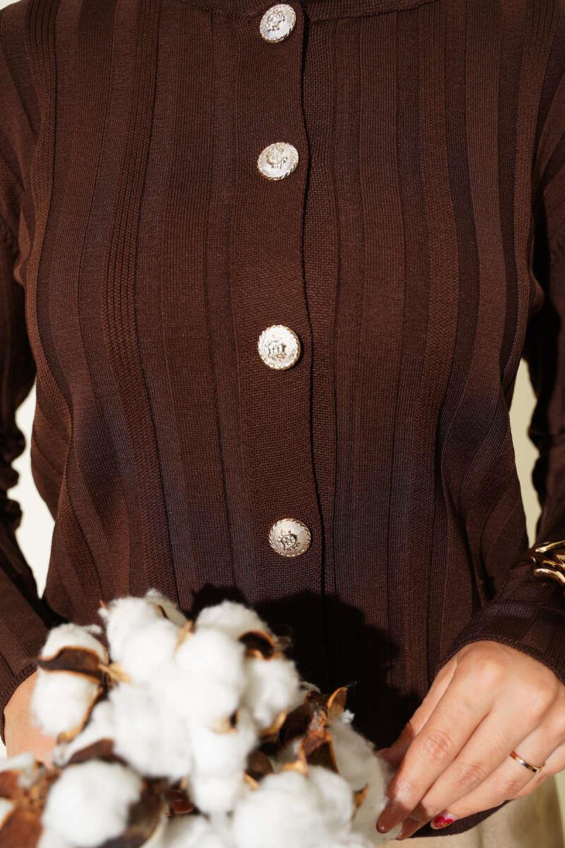 Ribbed Buttoned Knit Cardigan Brown (6999-3204-677011)