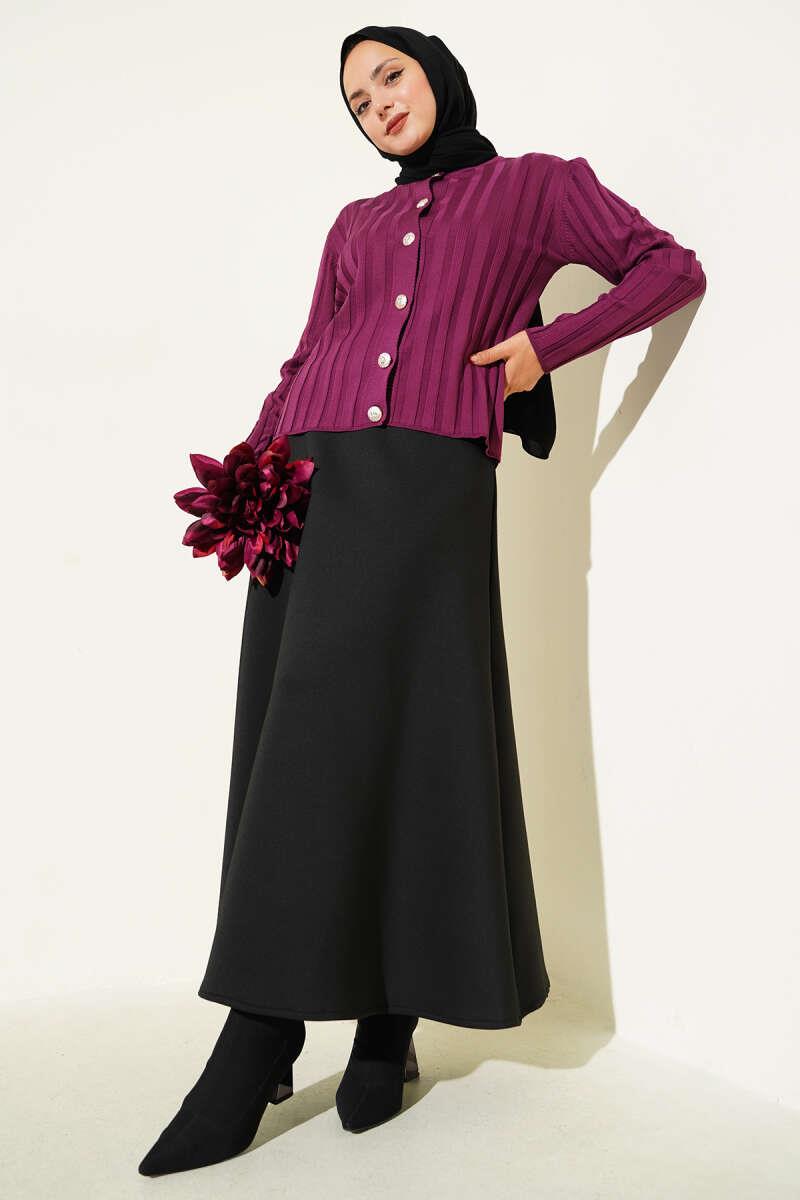 Corduroy Buttoned Knit Cardigan in Plum (6999-3204-677013)