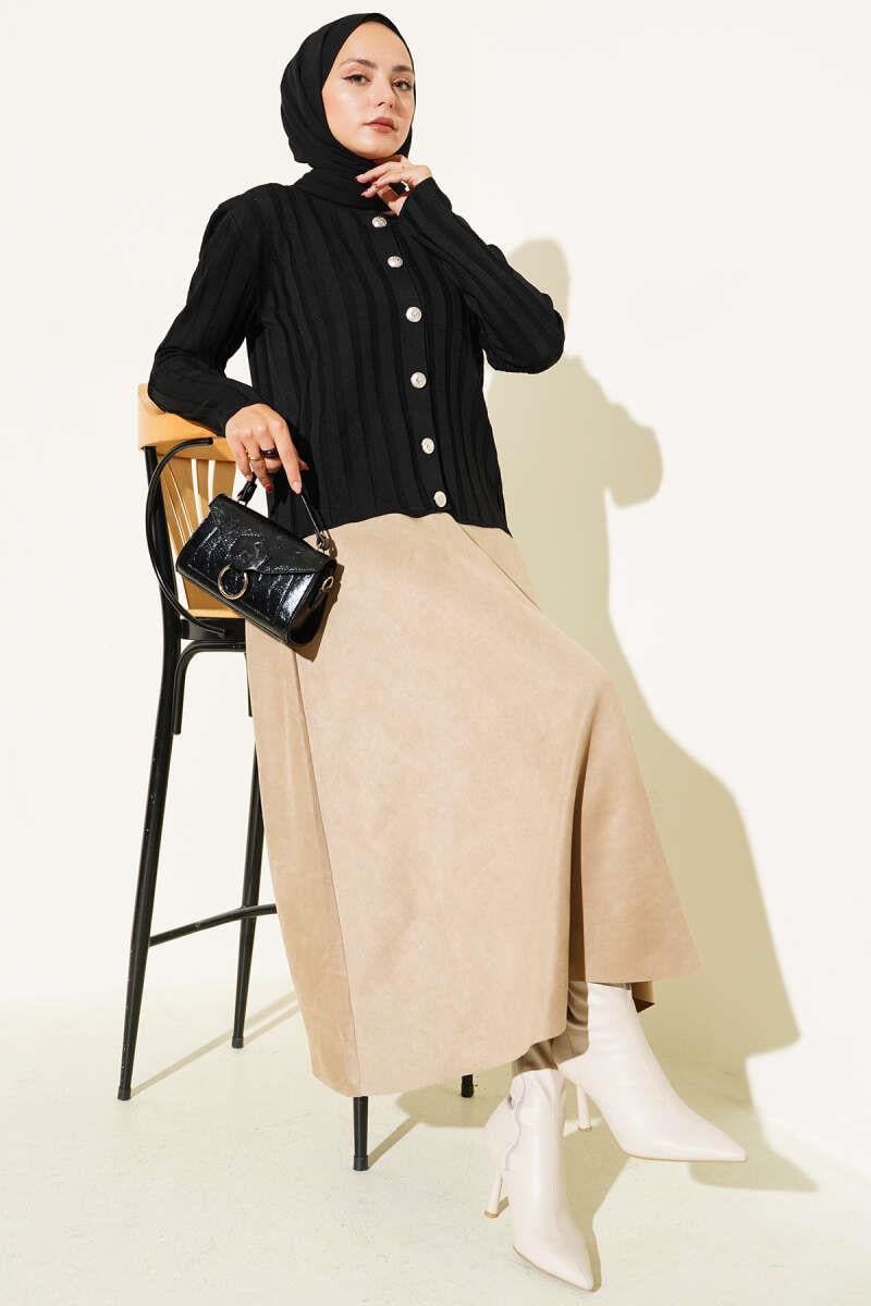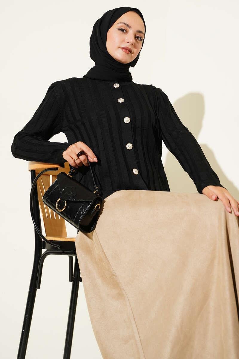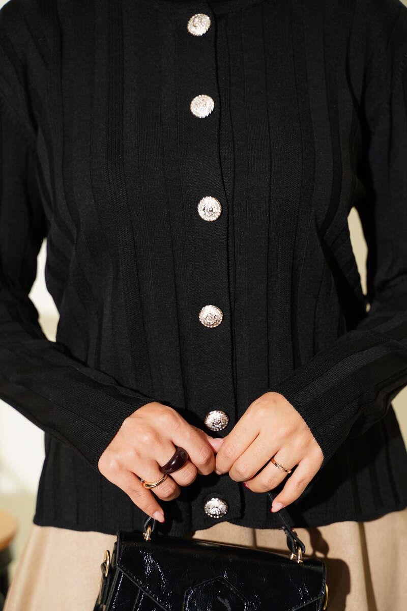 Ribbed Buttoned Knit Cardigan Black (6999-3204-677015)