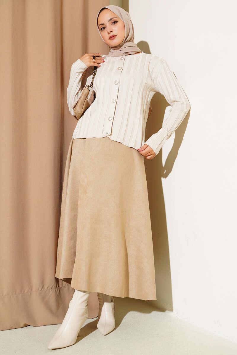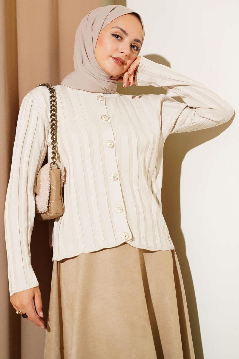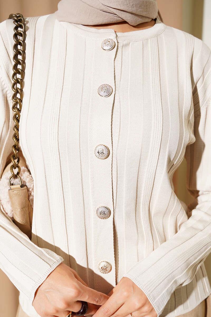 Ribbed Buttoned Knit Cardigan Stone (6999-3204-677016)