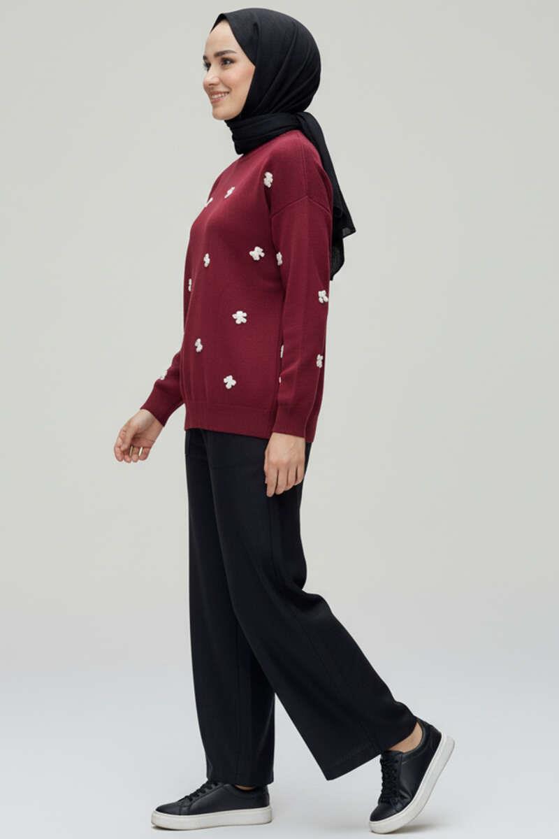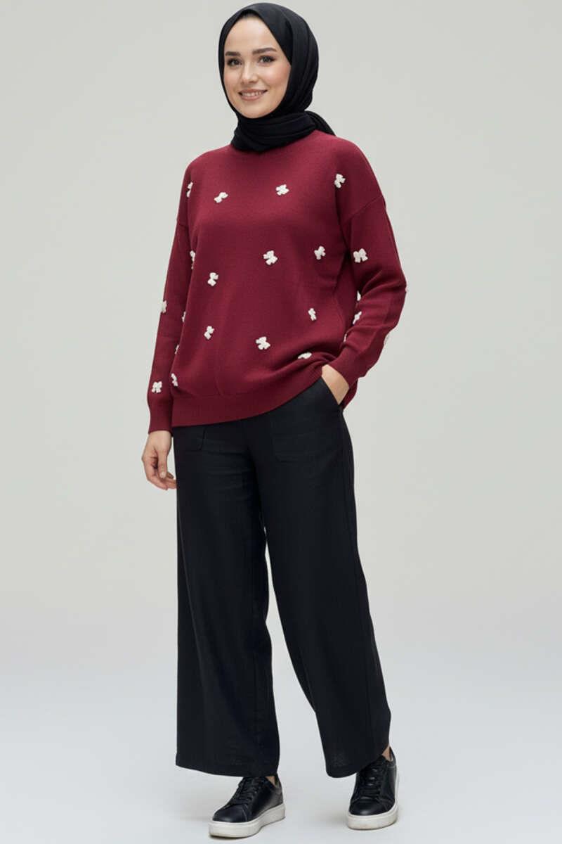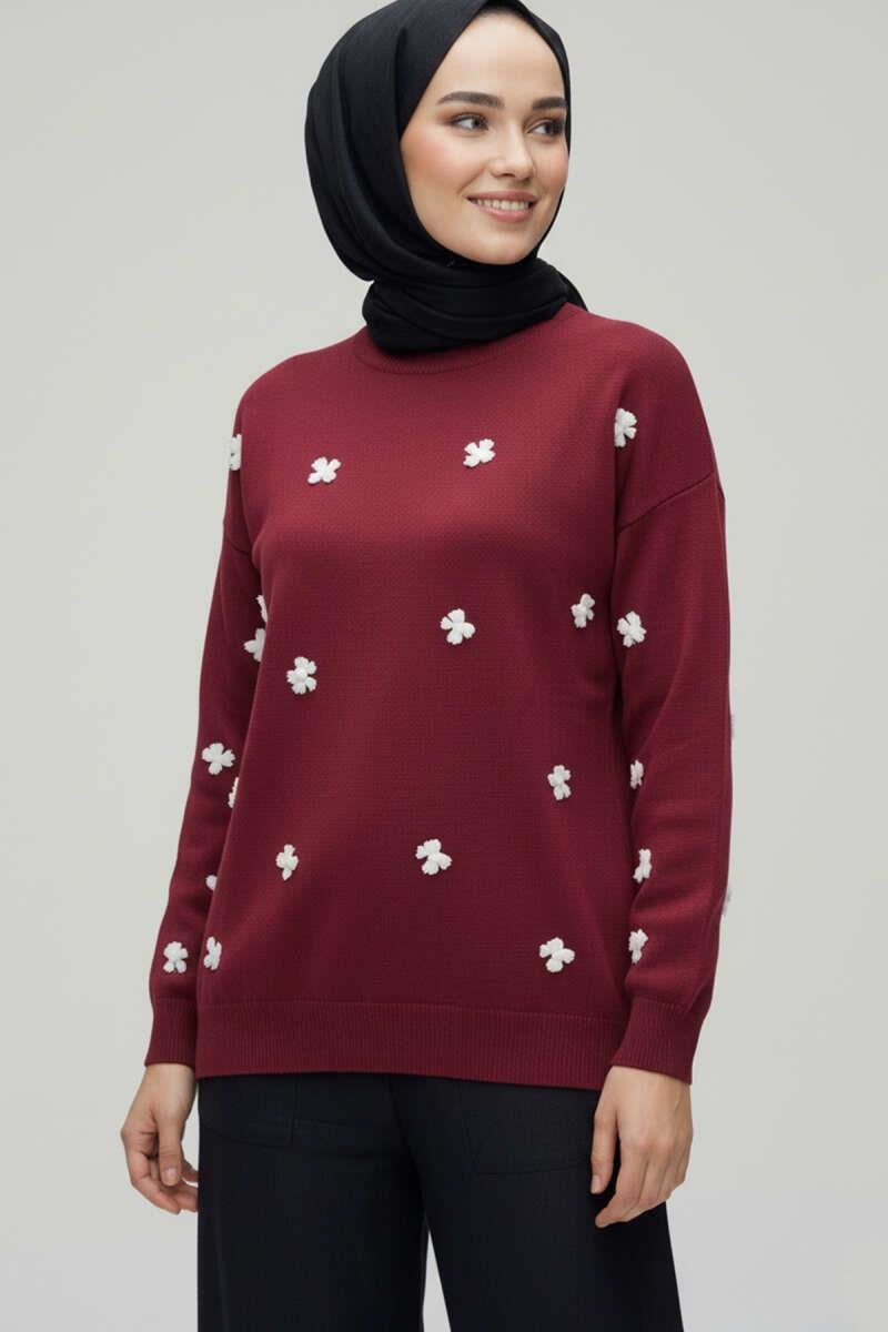 Bow Embroidered Knitted Sweater Burgundy (6999-3252-676985)