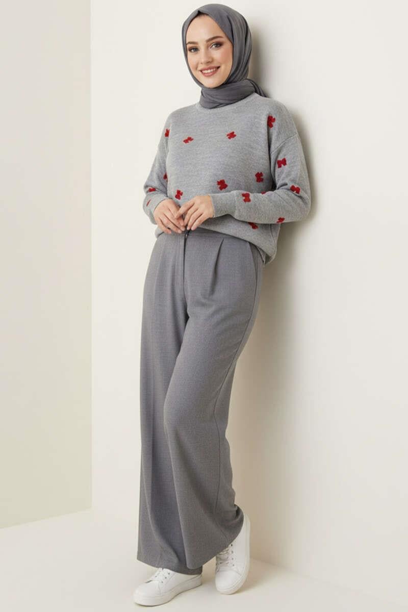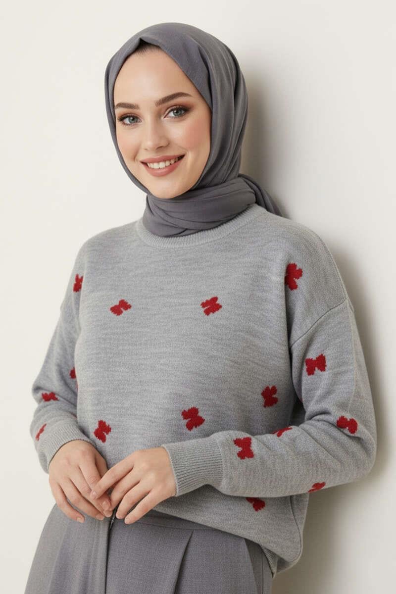 Bow Embroidered Knitted Sweater Gray (6999-3252-676986)
